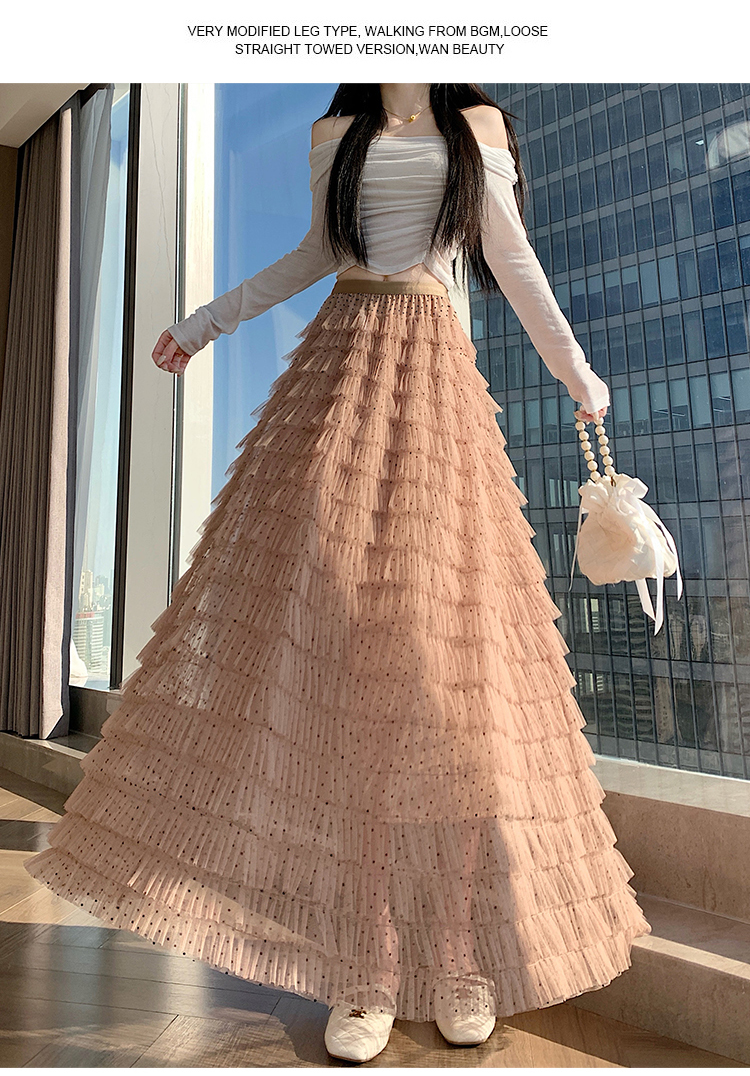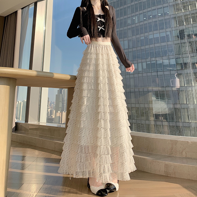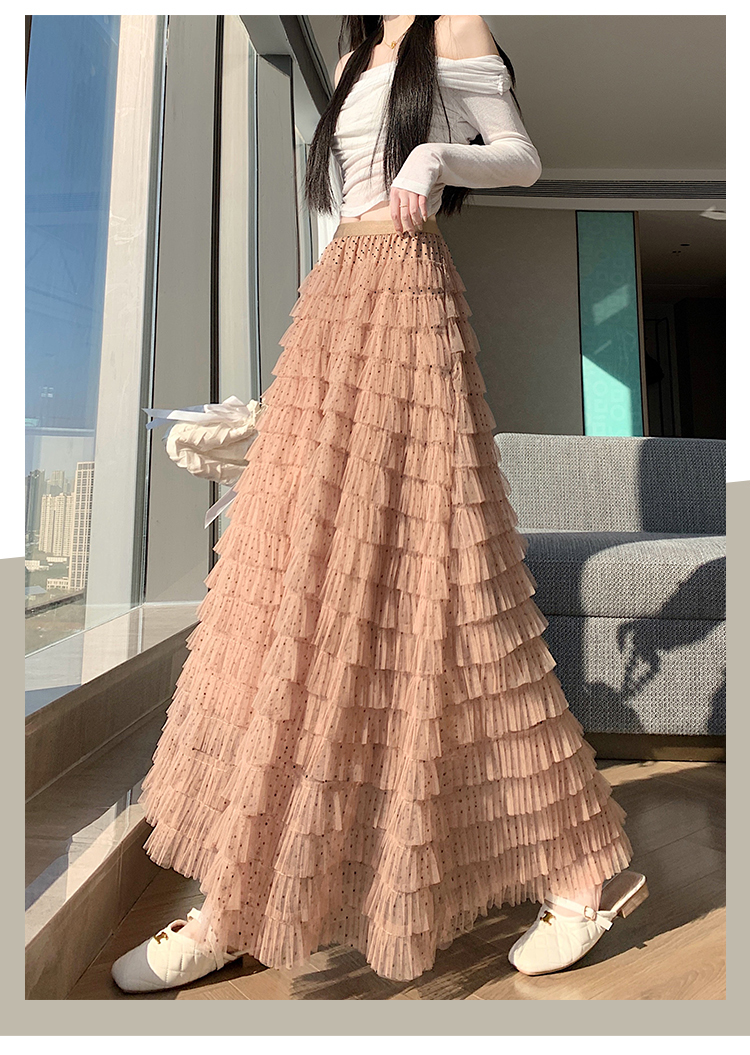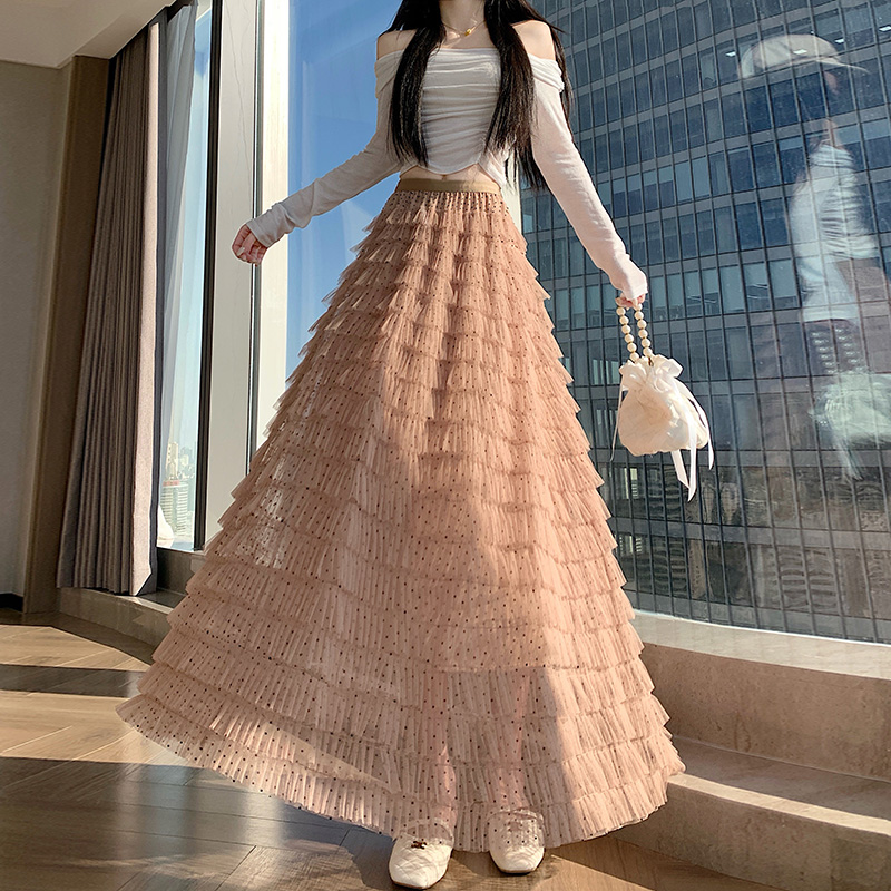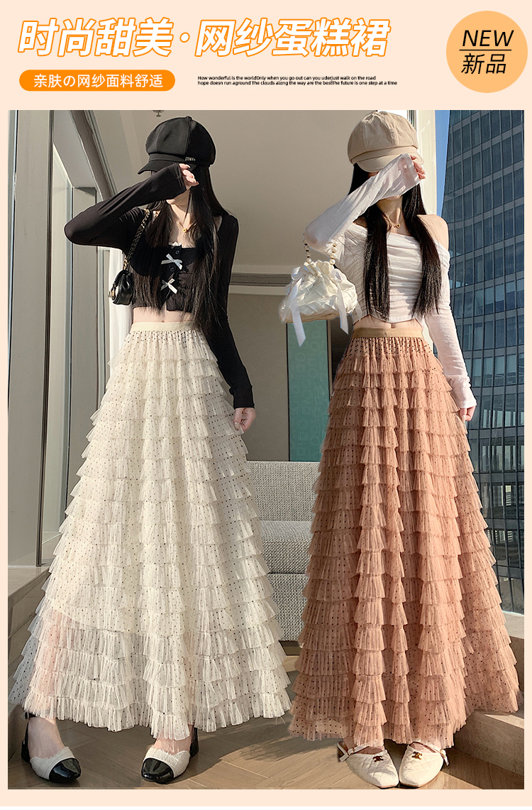 MY17147# 仙气重工网纱蛋糕裙半身裙女春夏长款设计感小众显瘦大摆长裙女裝貨源服裝批發