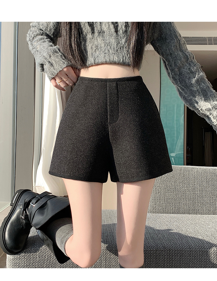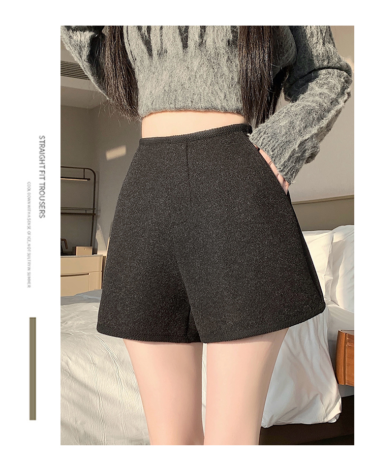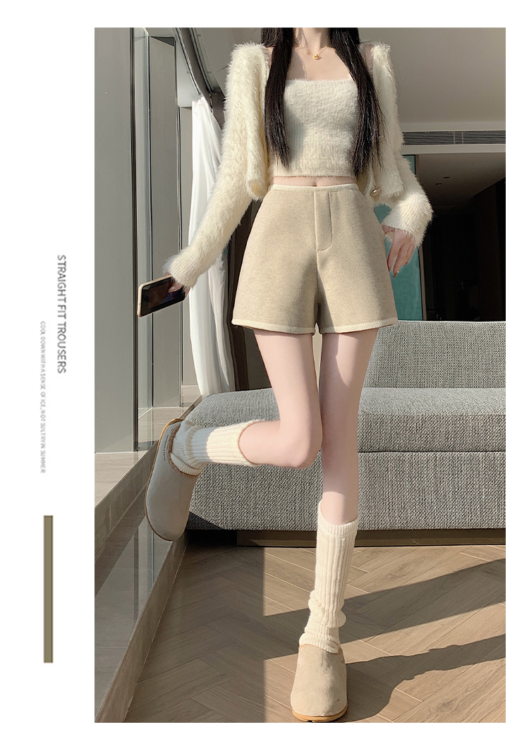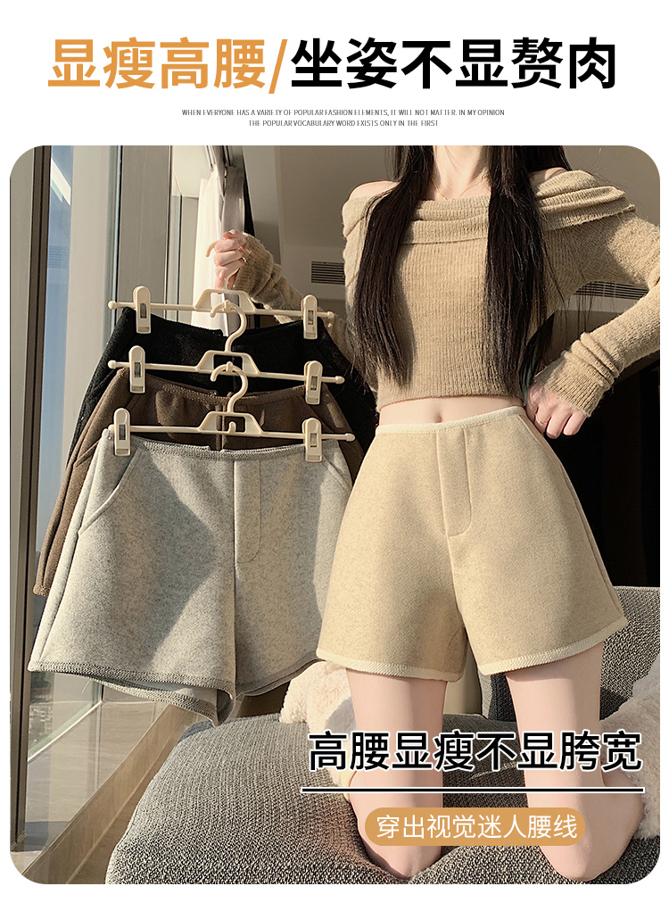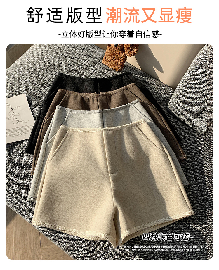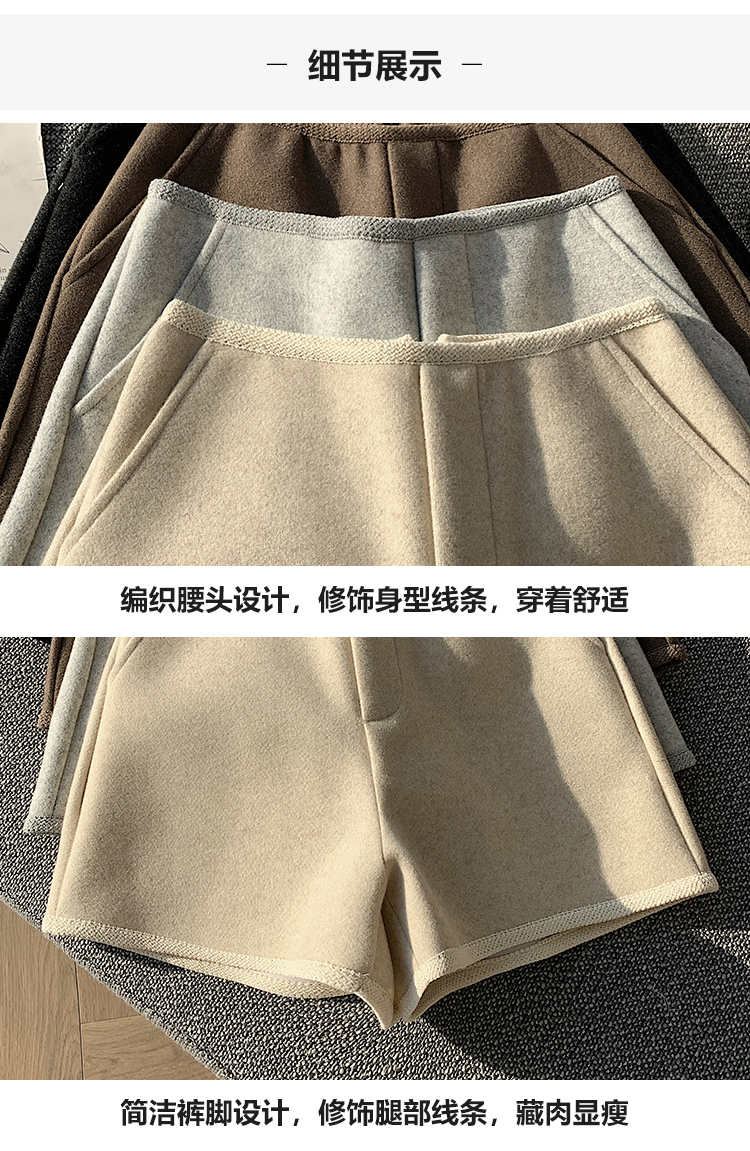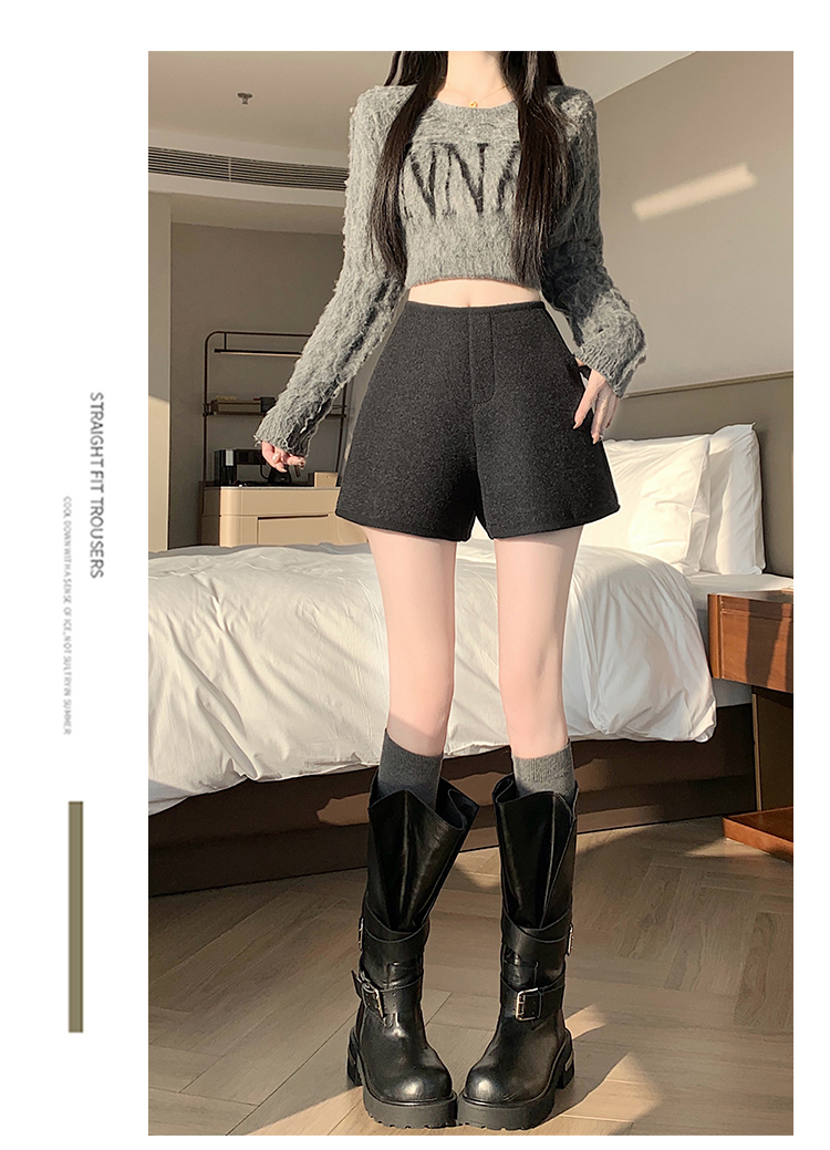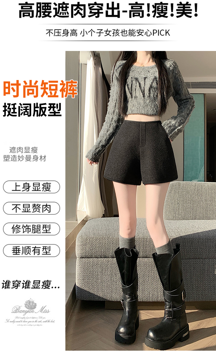 MY17148# 高级毛呢短裤新款韩版高腰百搭直筒靴裤外穿休闲裤女裝貨源服裝批發