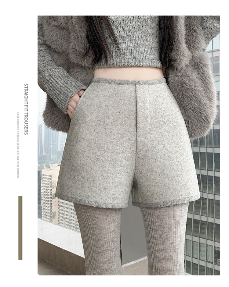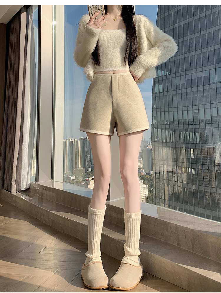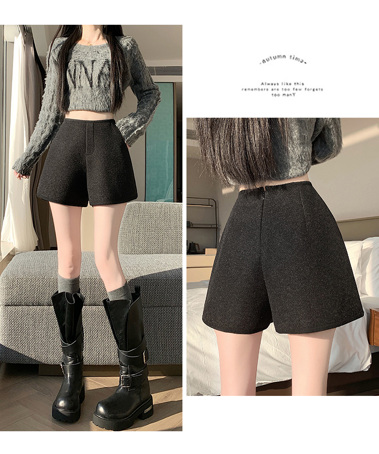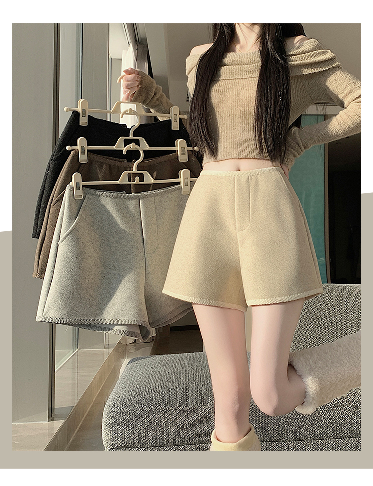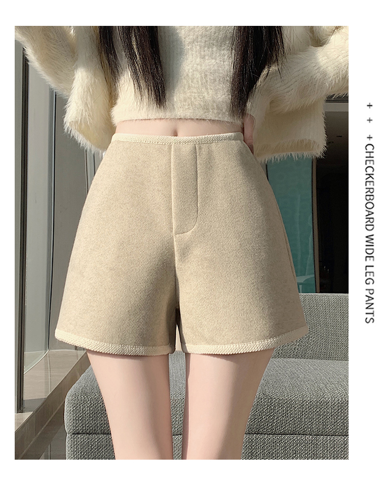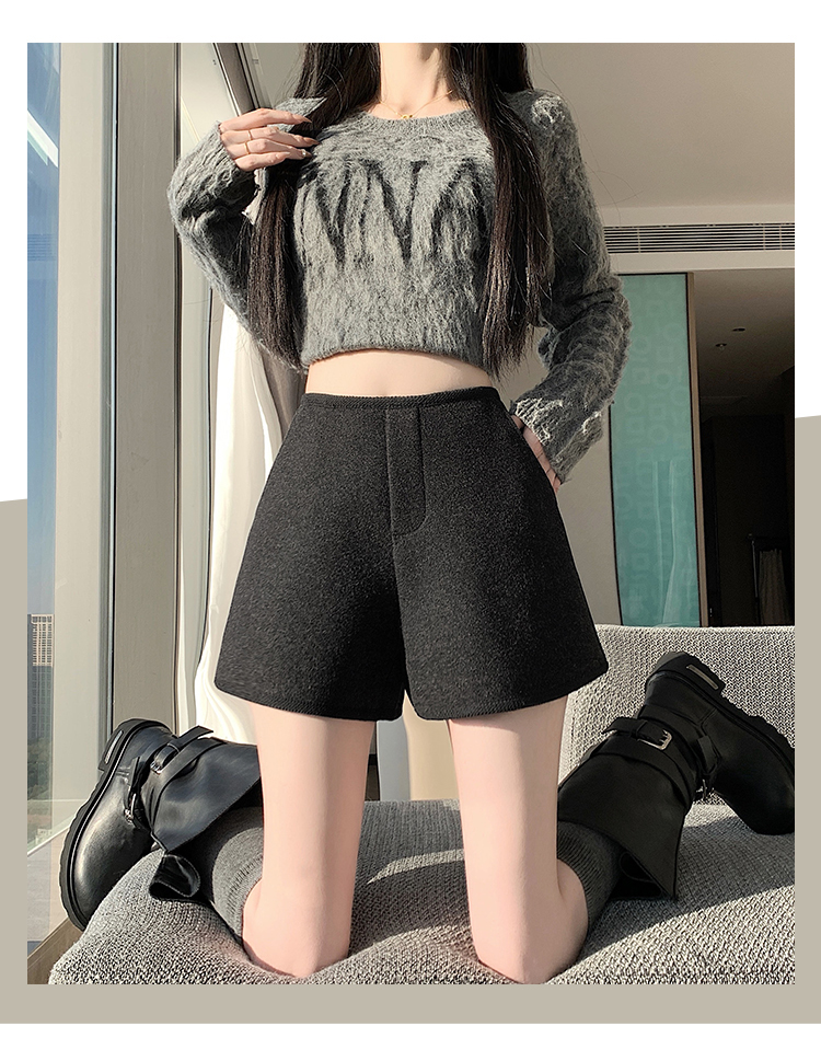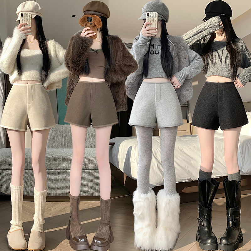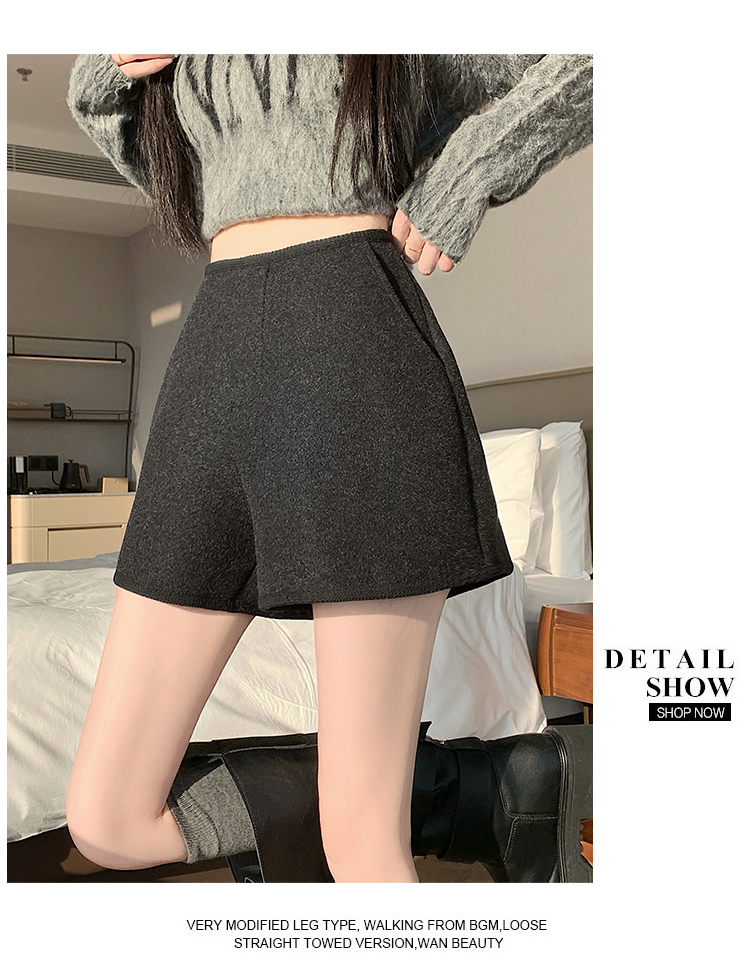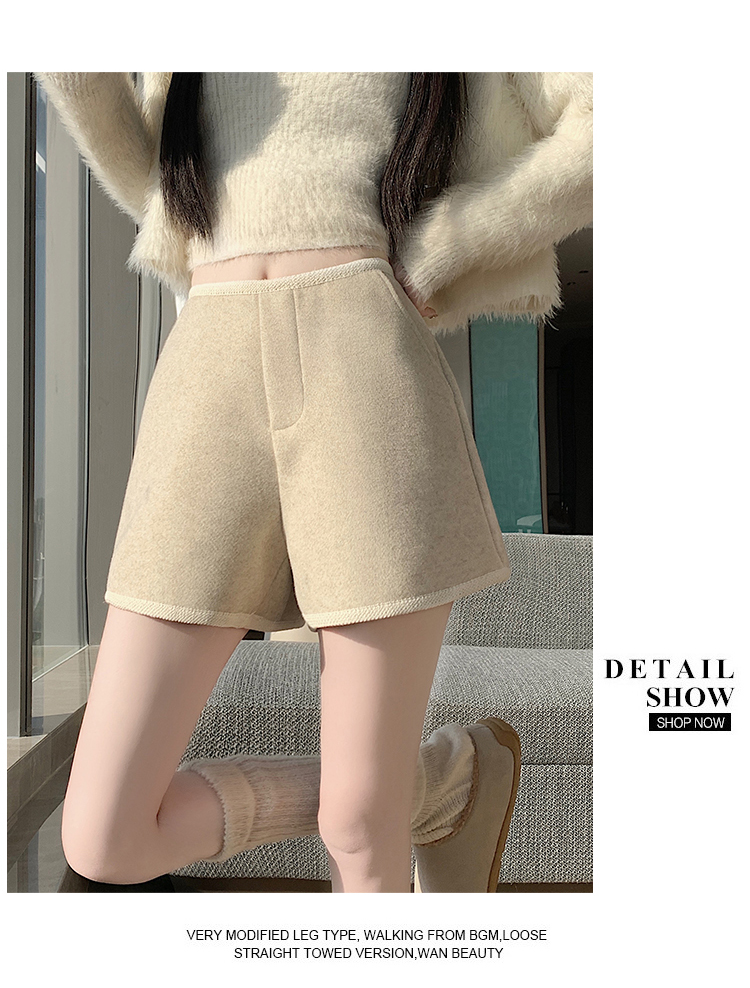 MY17148# 高级毛呢短裤新款韩版高腰百搭直筒靴裤外穿休闲裤女裝貨源服裝批發