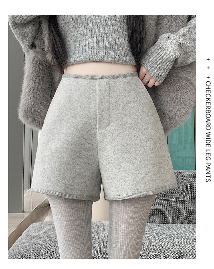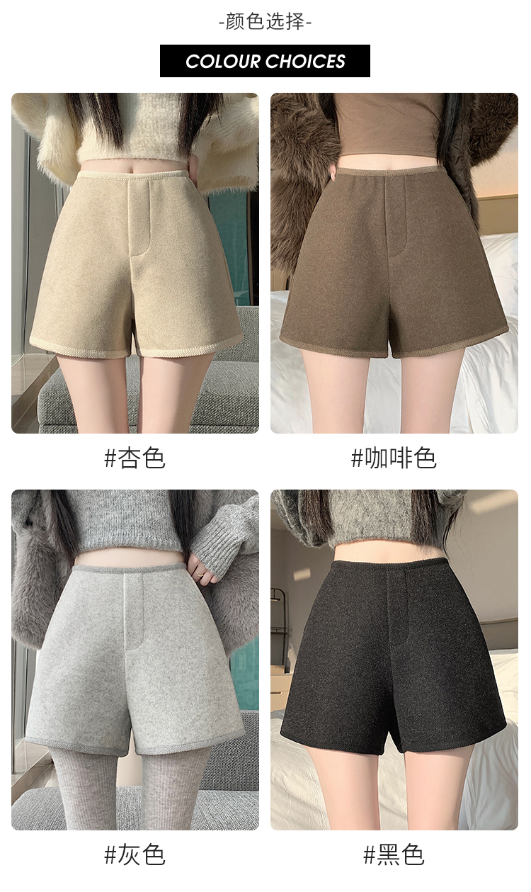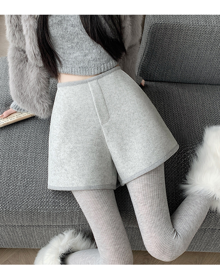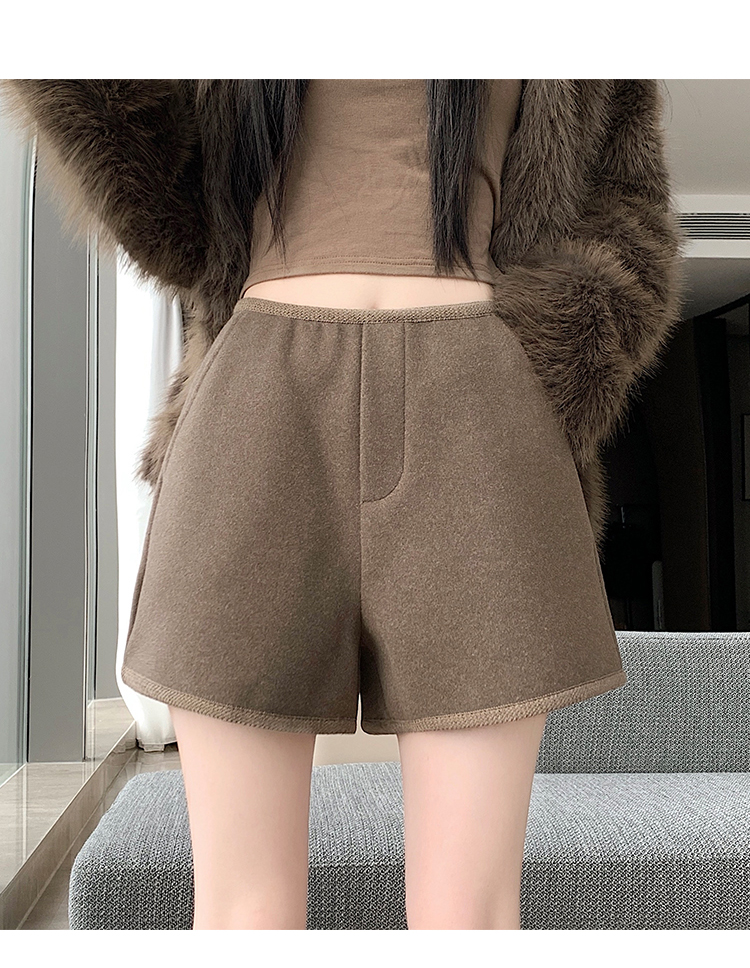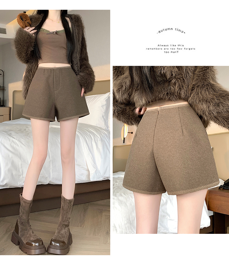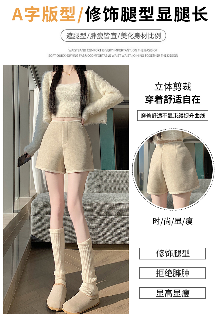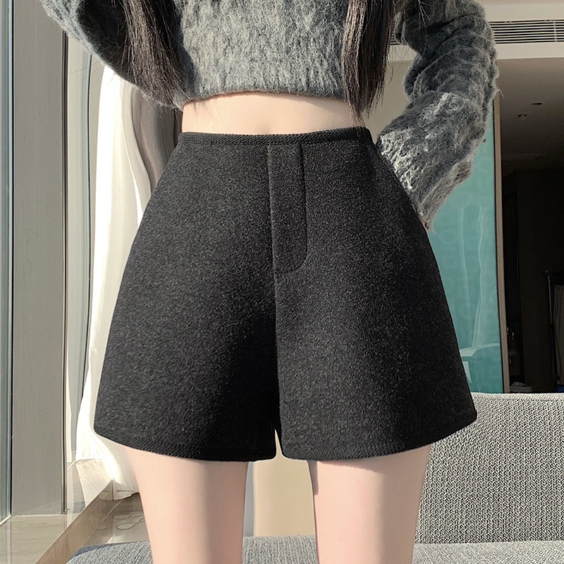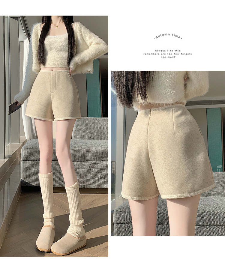 MY17148# 高级毛呢短裤新款韩版高腰百搭直筒靴裤外穿休闲裤女裝貨源服裝批發