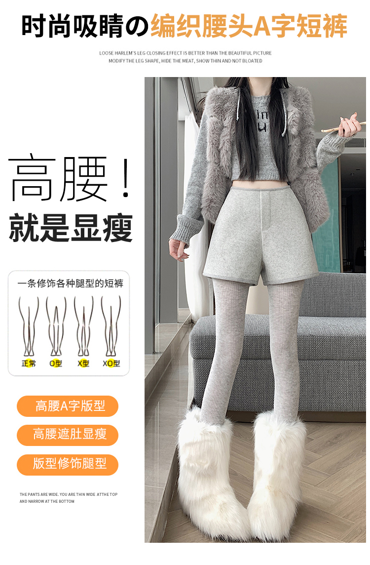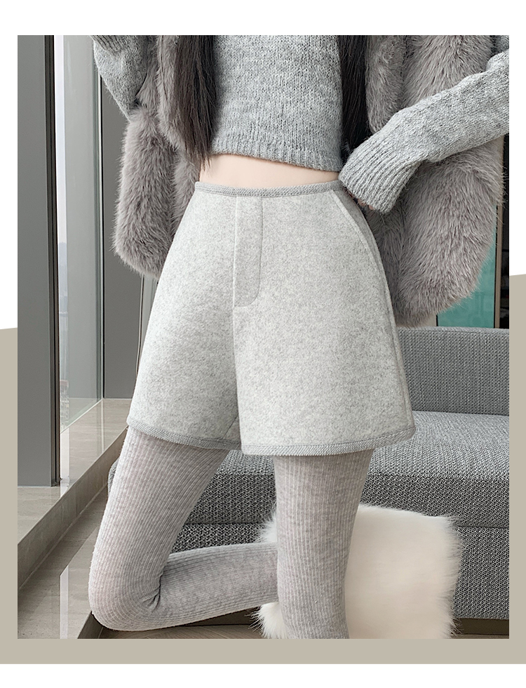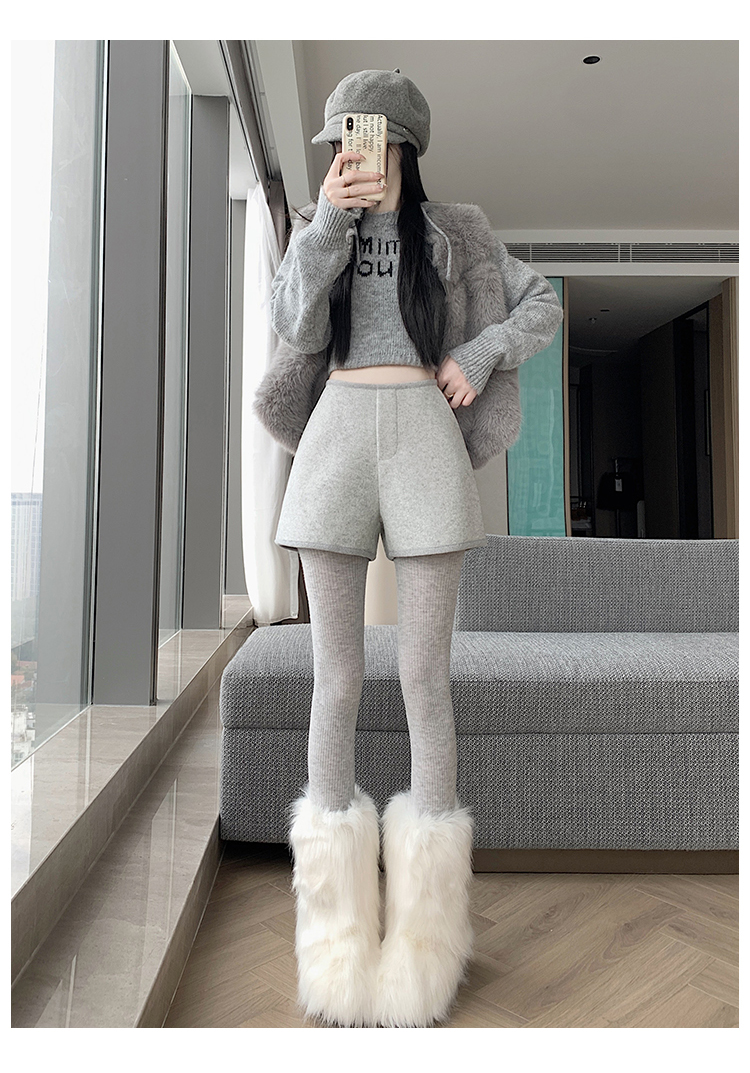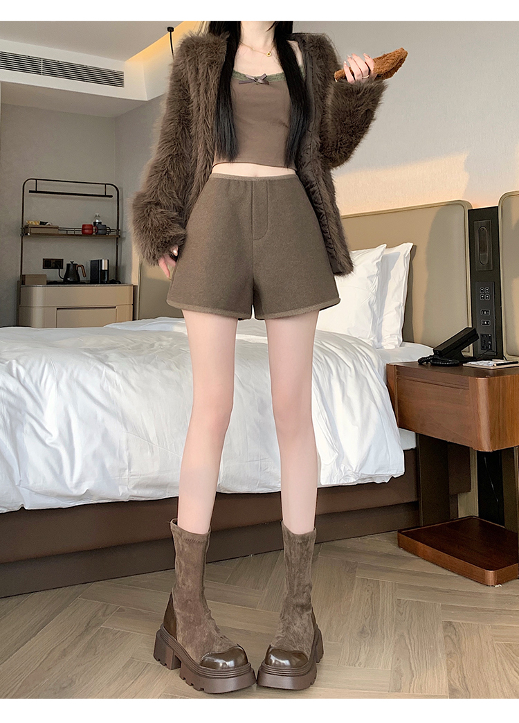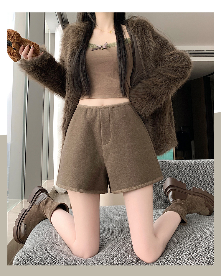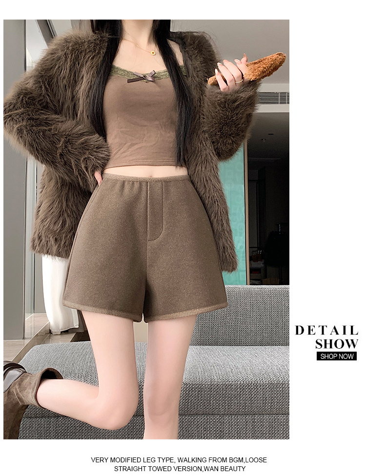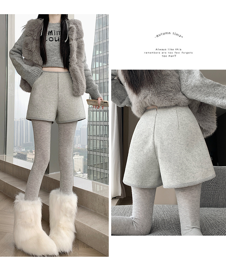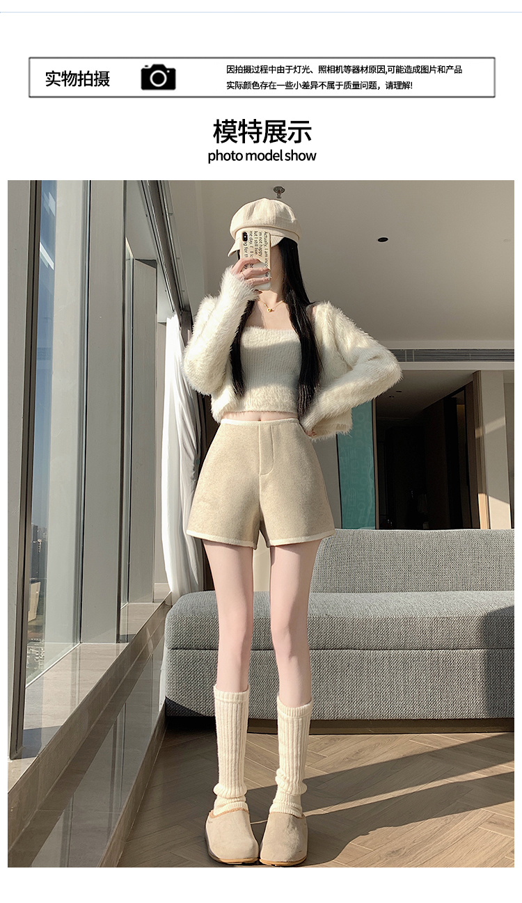 MY17148# 高级毛呢短裤新款韩版高腰百搭直筒靴裤外穿休闲裤女裝貨源服裝批發
