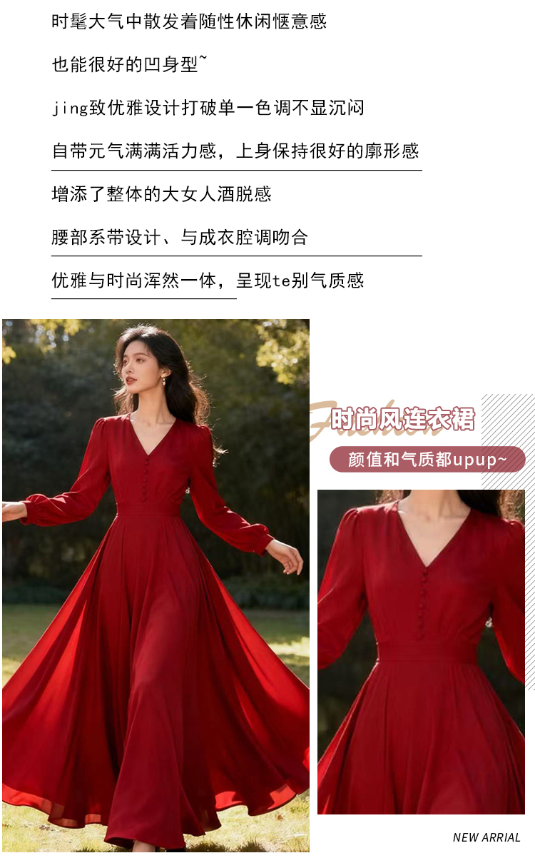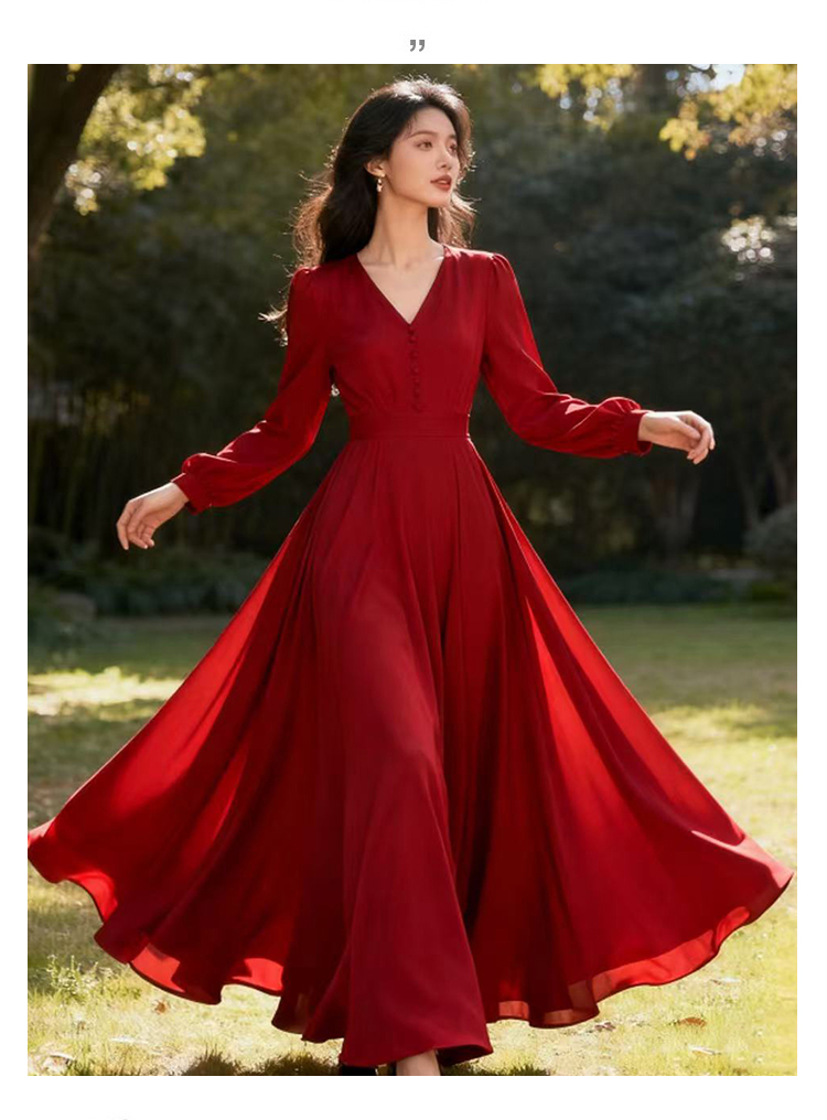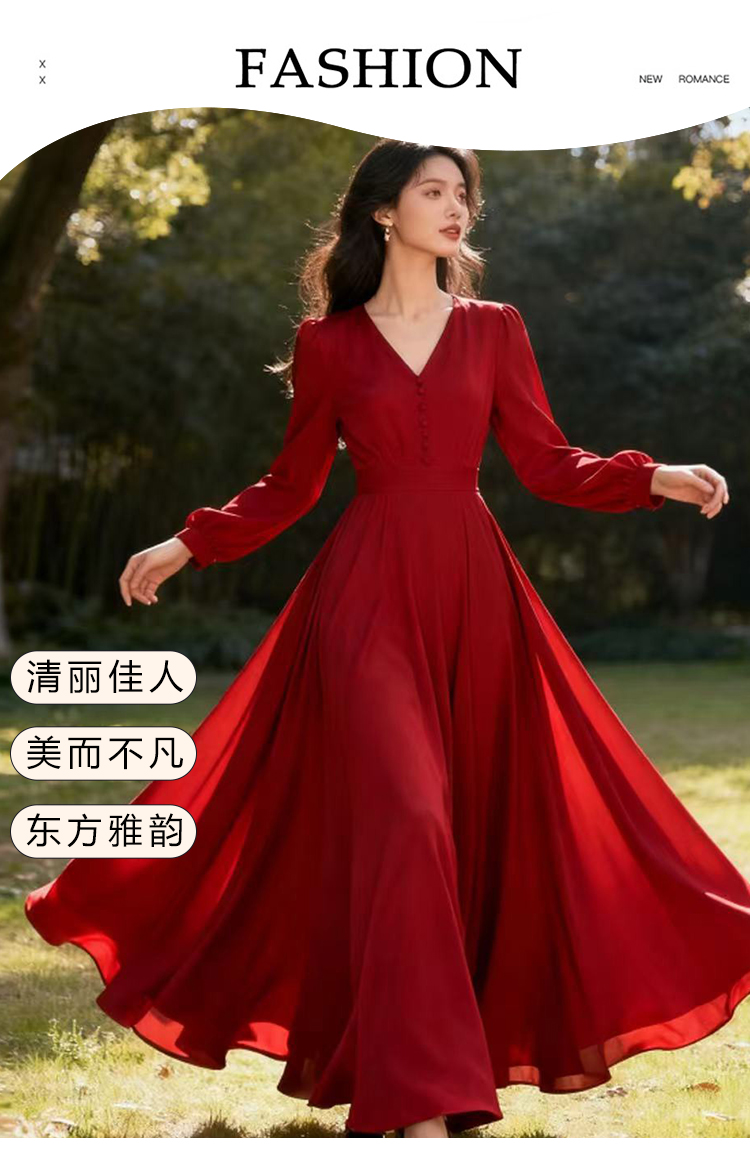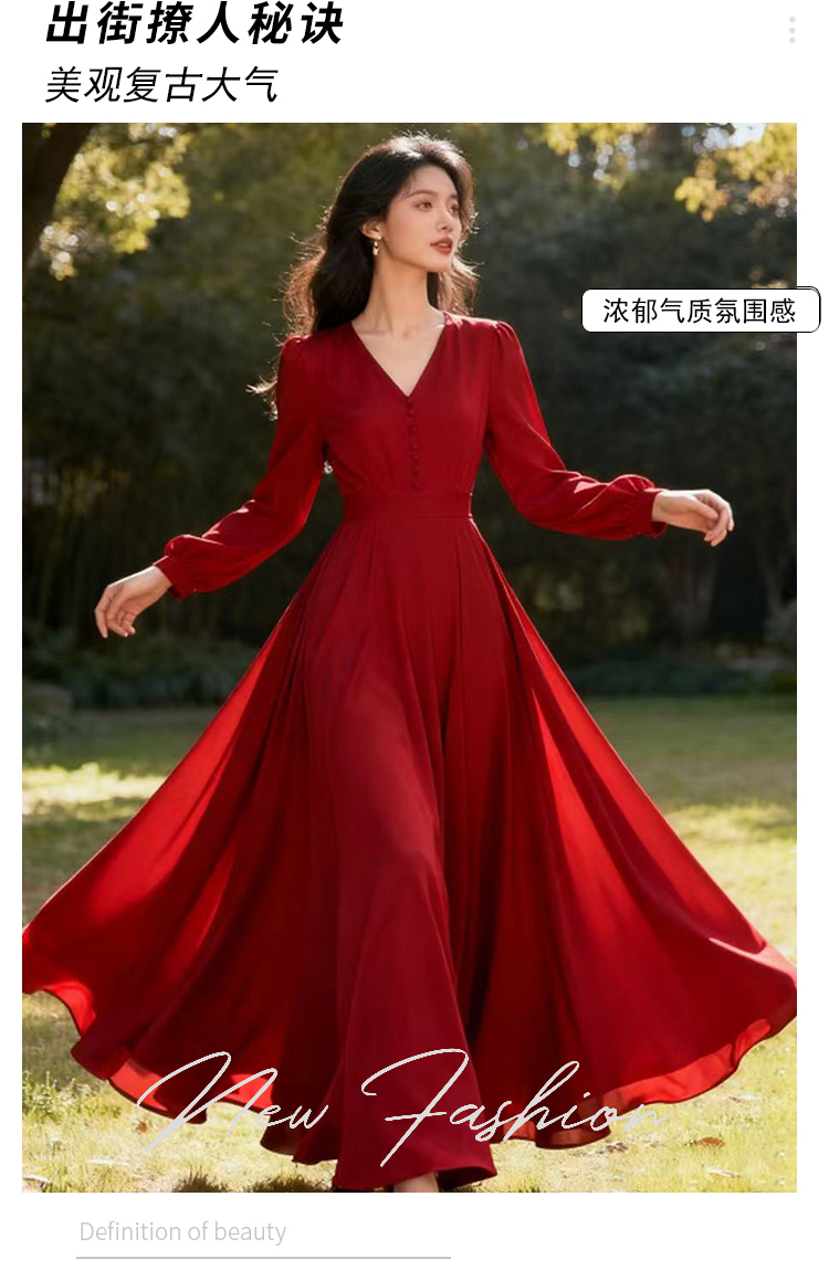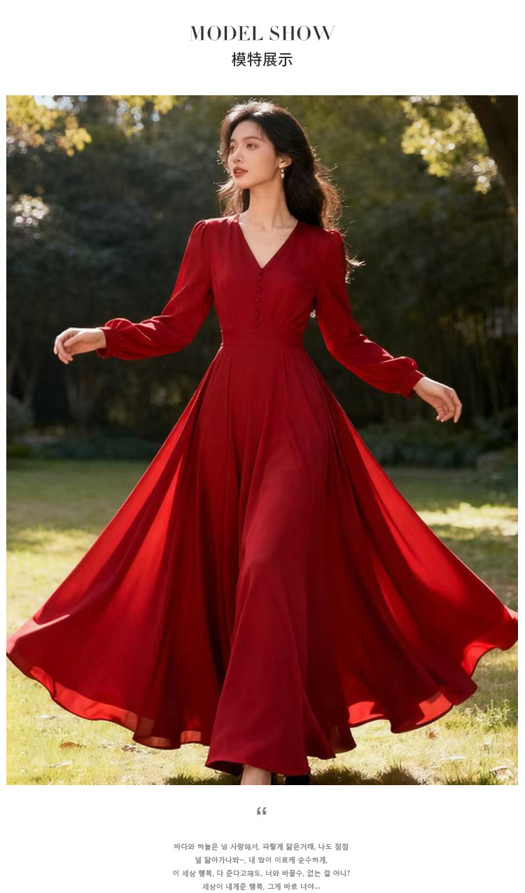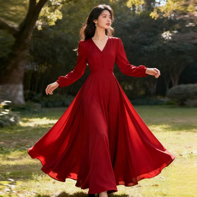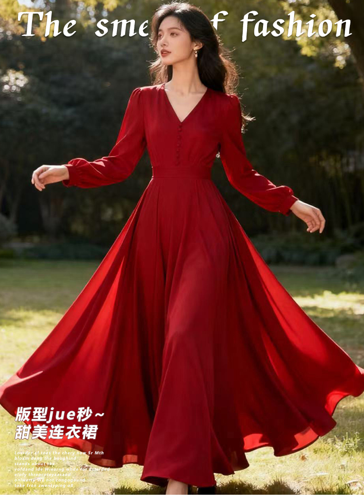 MY17151# 多巴胺超仙气质长款连衣裙女2025秋季新款海边度假红色沙滩长裙子女裝貨源服裝批發