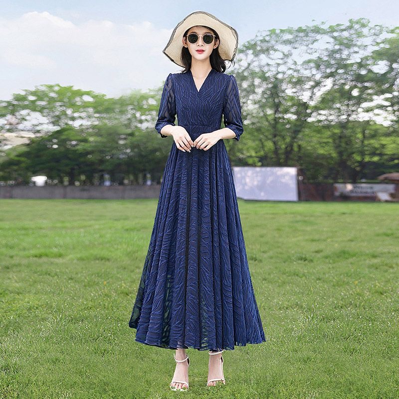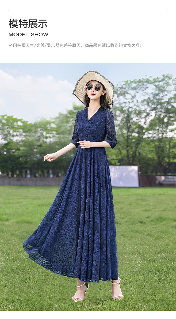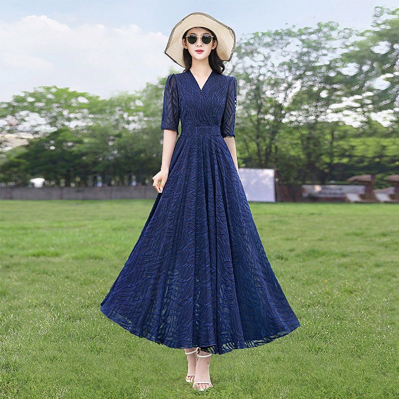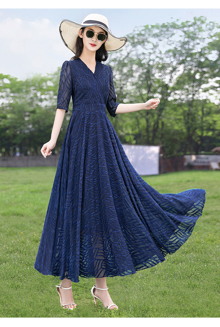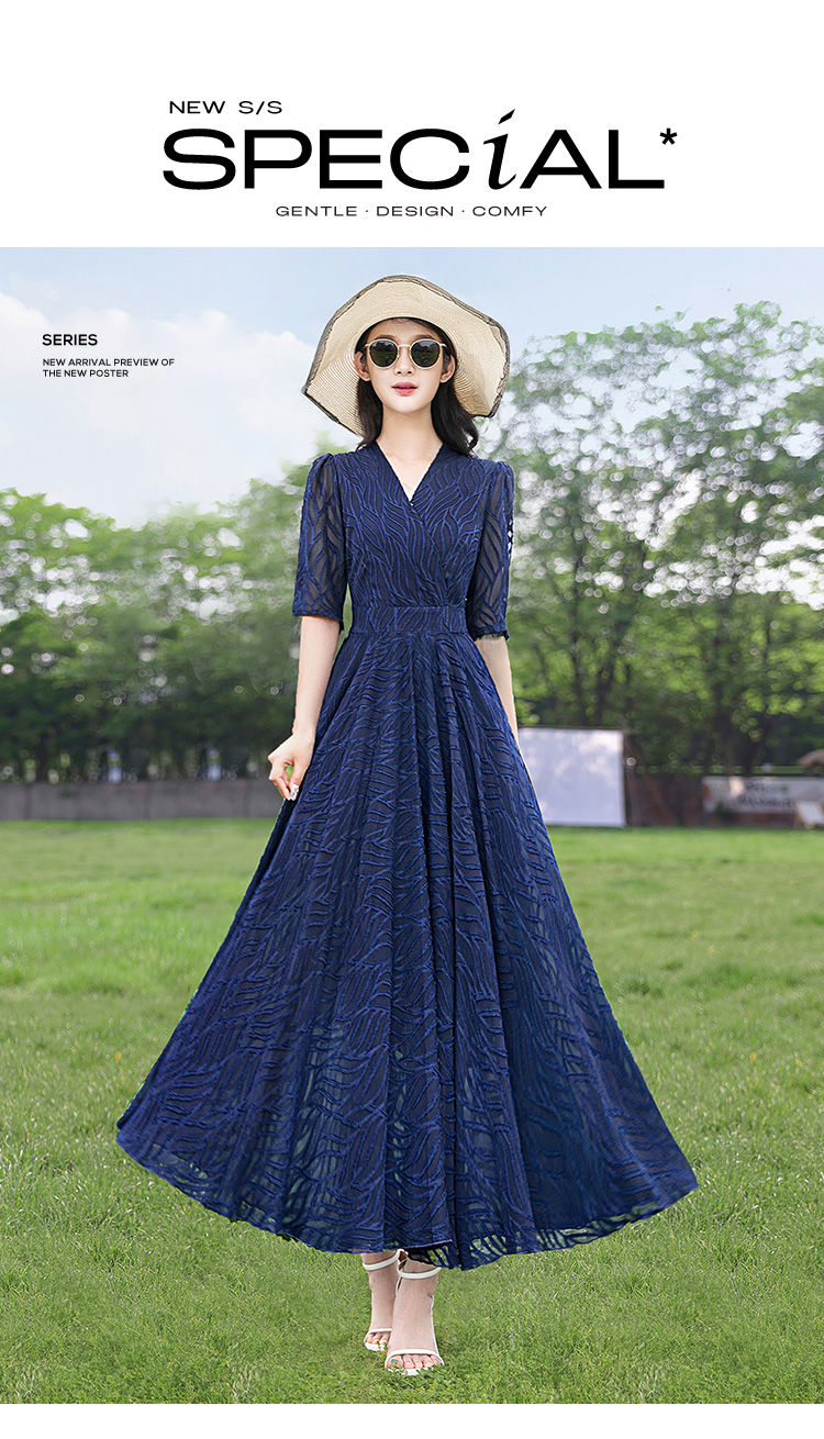 MY4207# 十三行品质 夏季法式气质v领泡泡袖连衣裙女温柔收腰显瘦长裙...