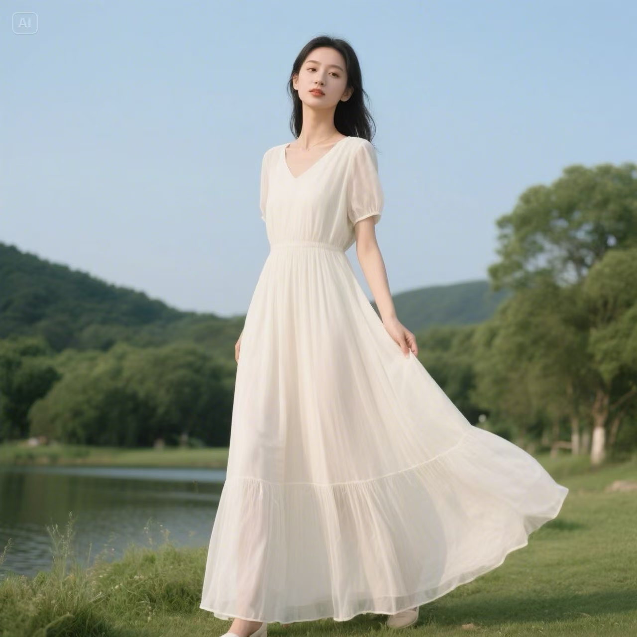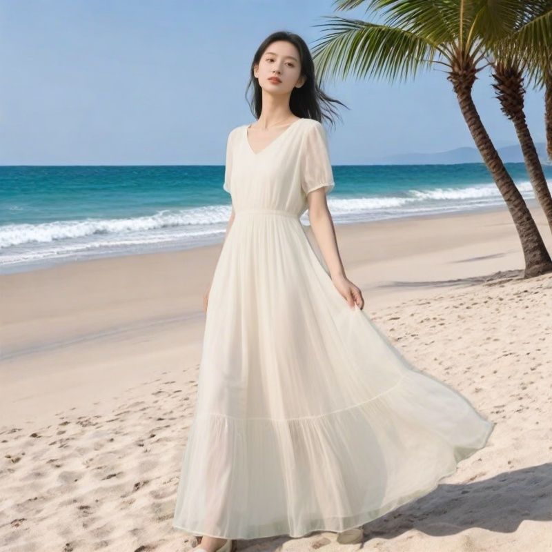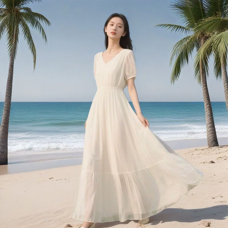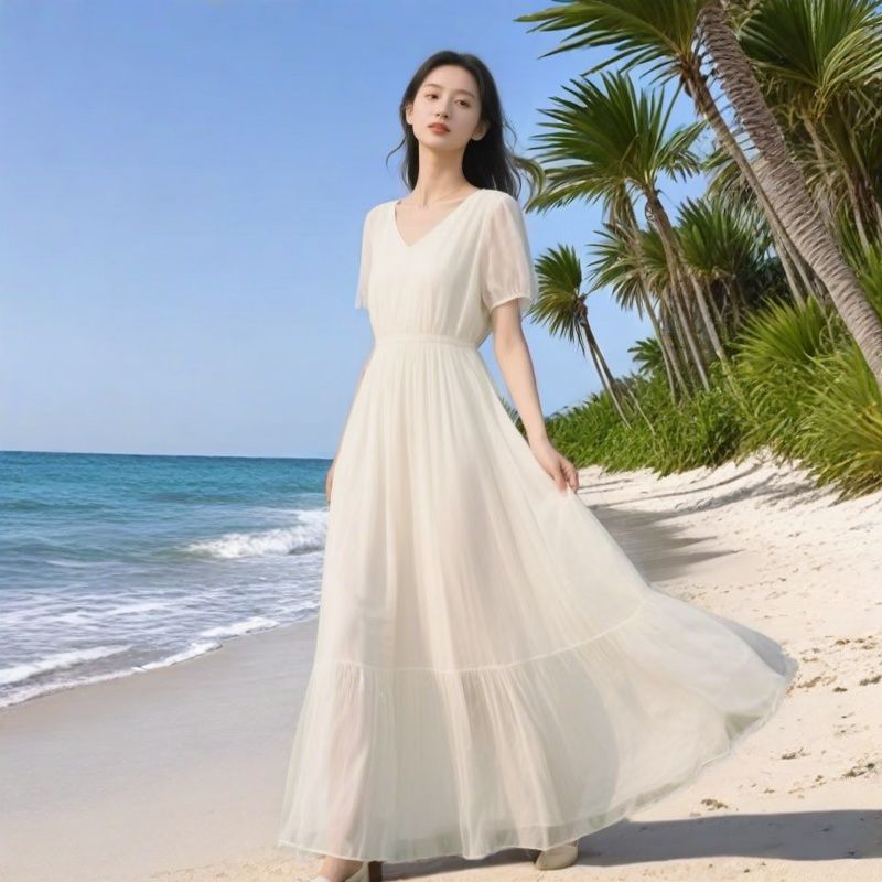 MY17170# 时尚超仙夏季白色法式新款气质连衣裙高级清新度假显瘦雪纺长裙女裝貨源服裝批發