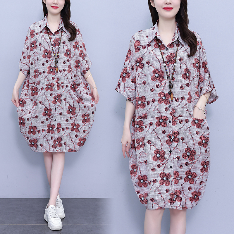 MY17173# 夏季新款时尚连衣裙胖mm中长款宽松遮肚显瘦时尚大码女女裝貨源服裝批發