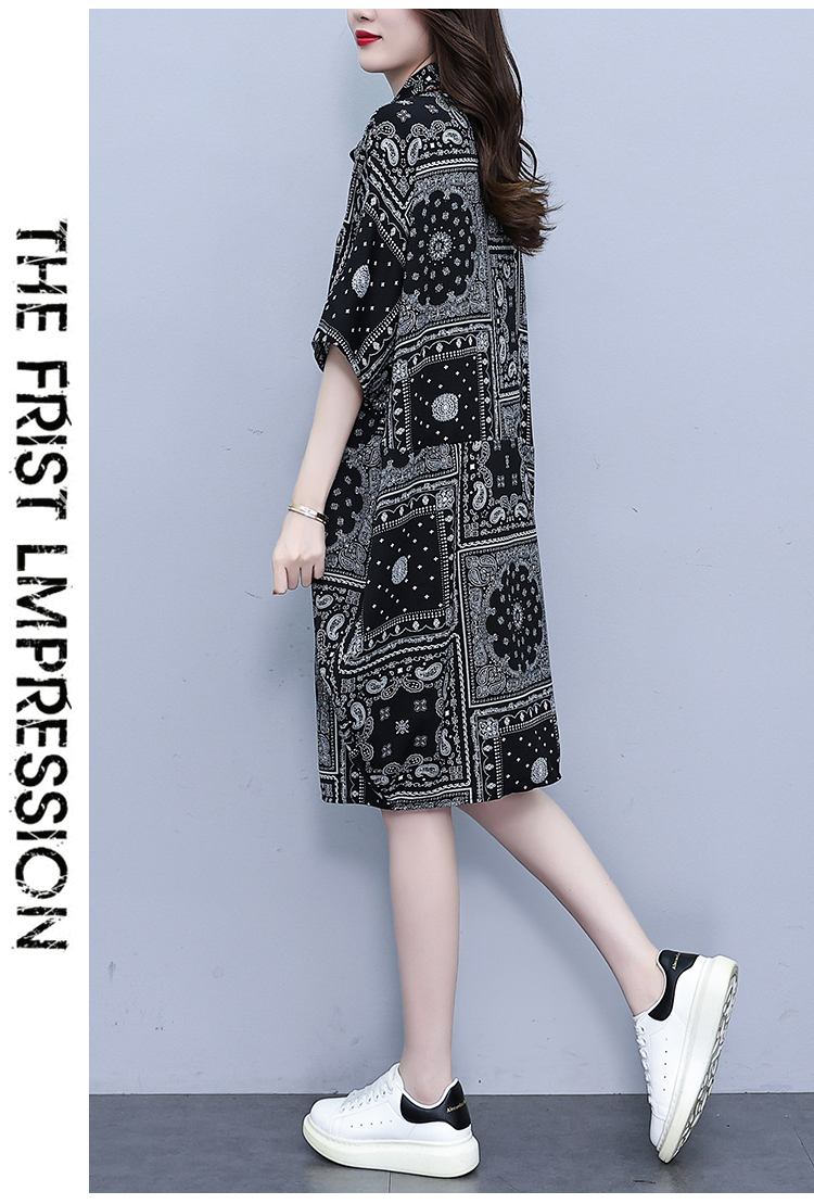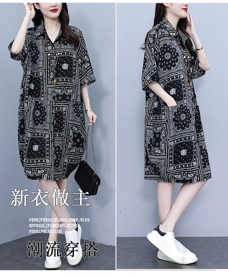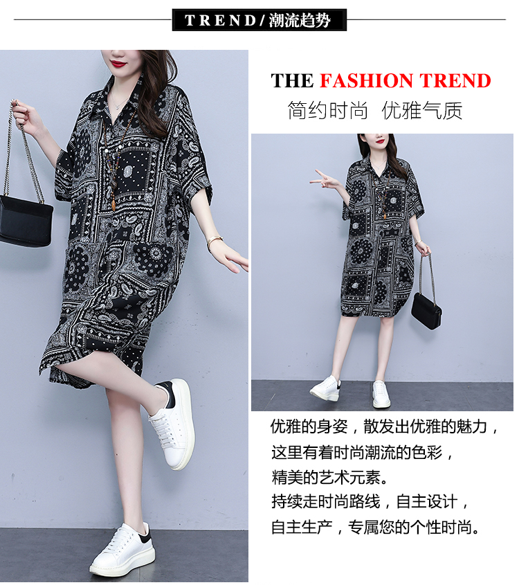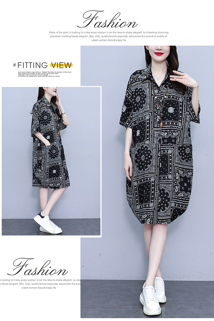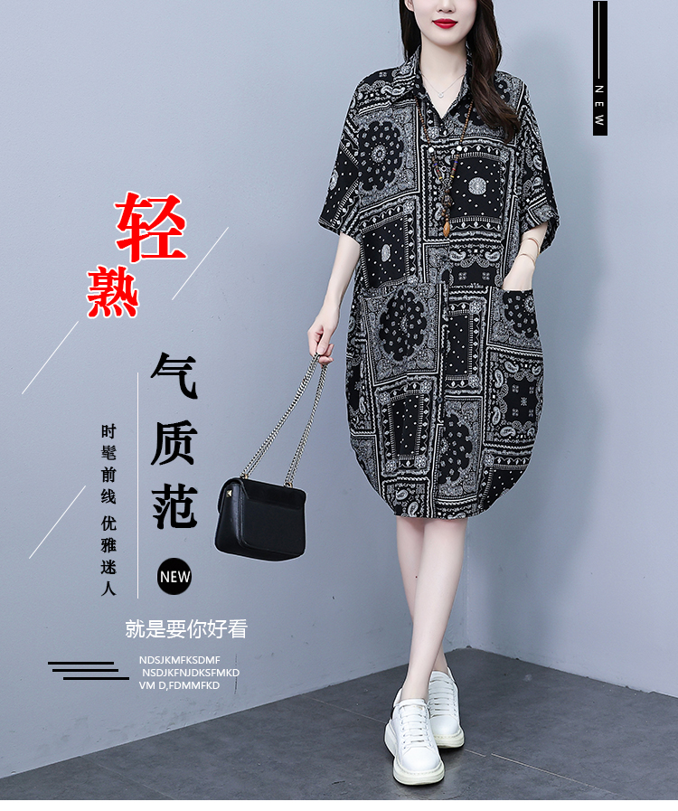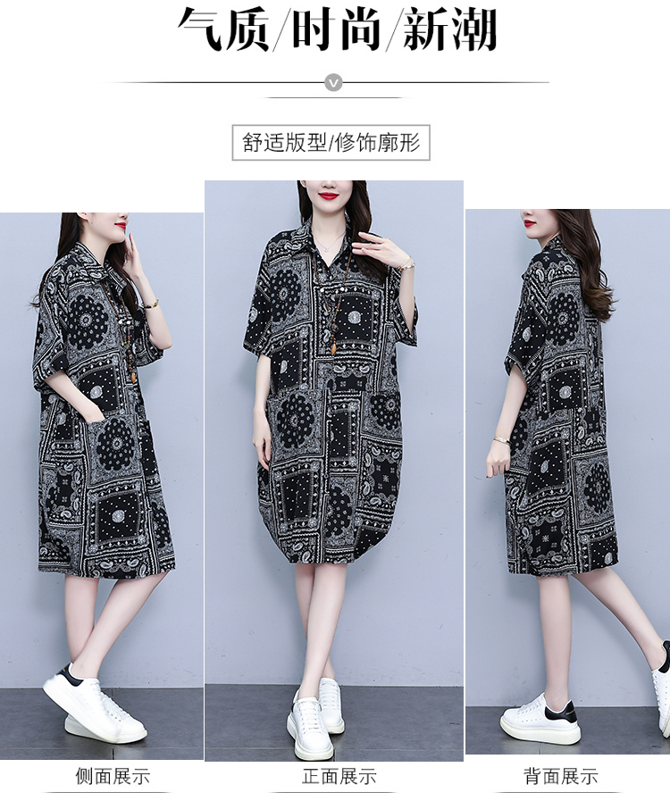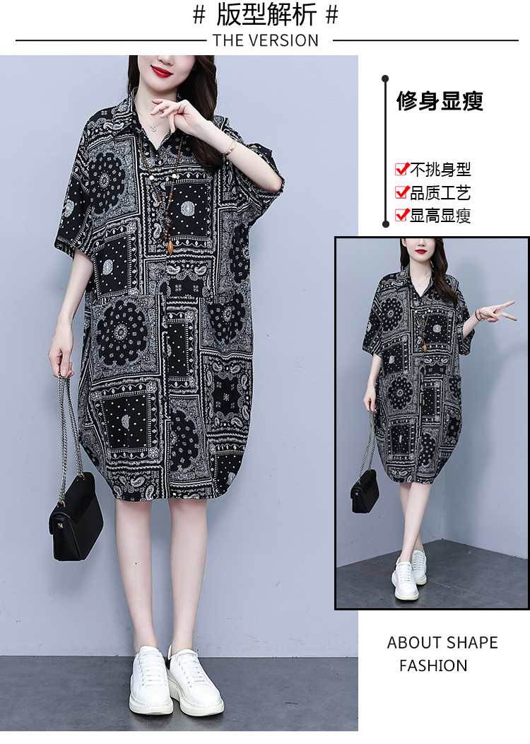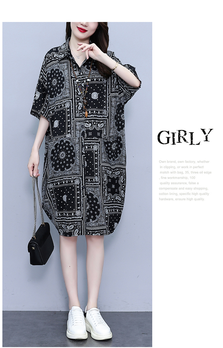 MY17181# 休闲宽松型大码女装连衣裙印花衬衣中长款连衣裙女裝貨源服裝批發