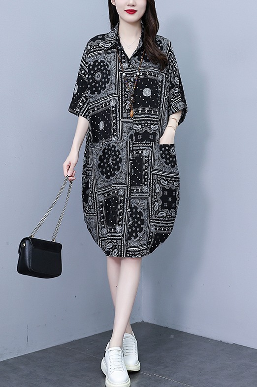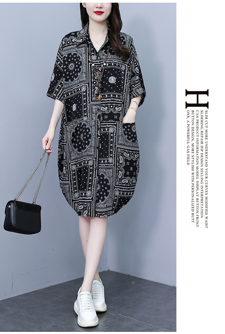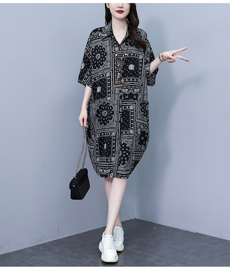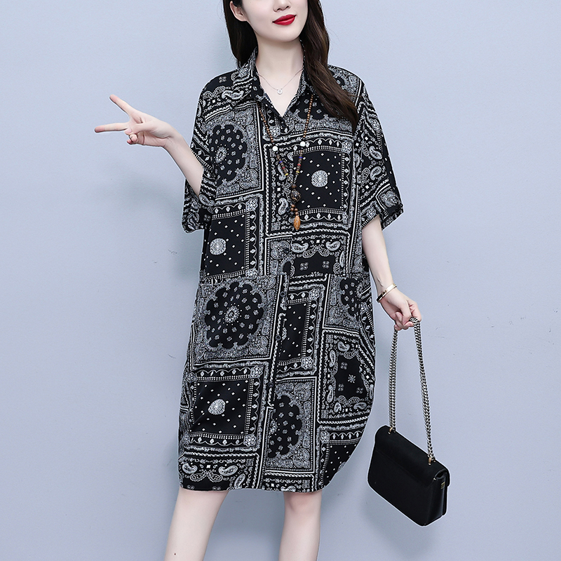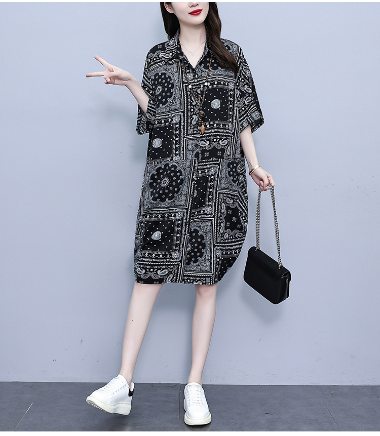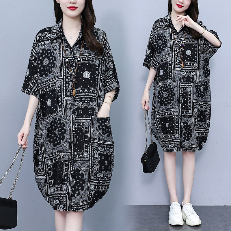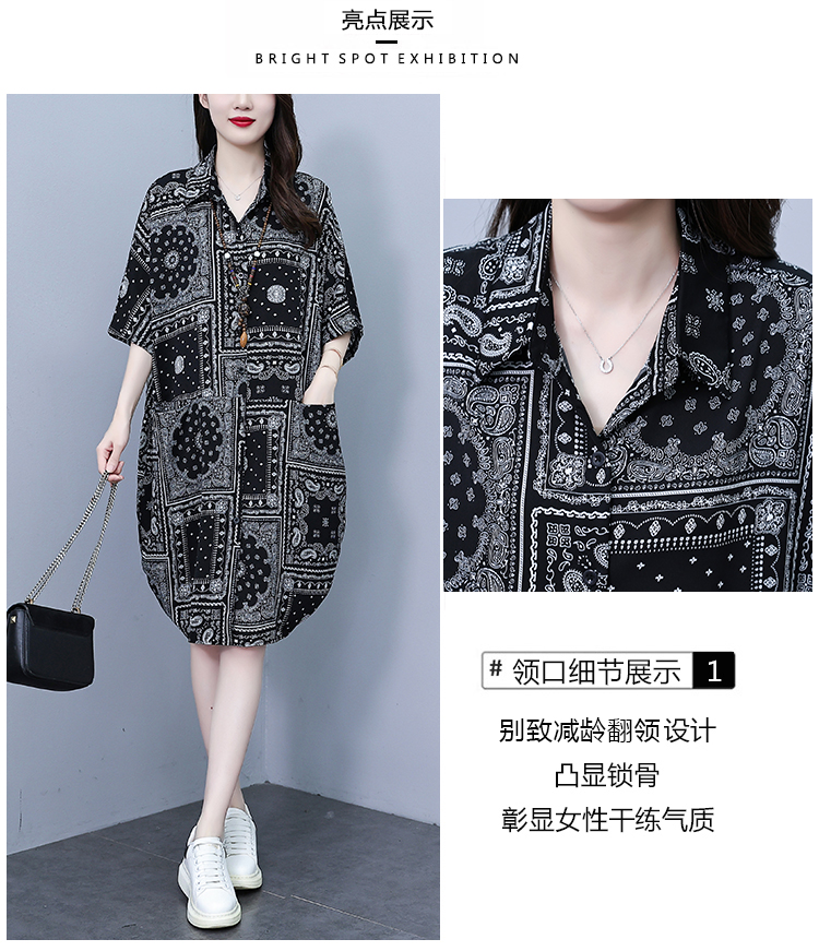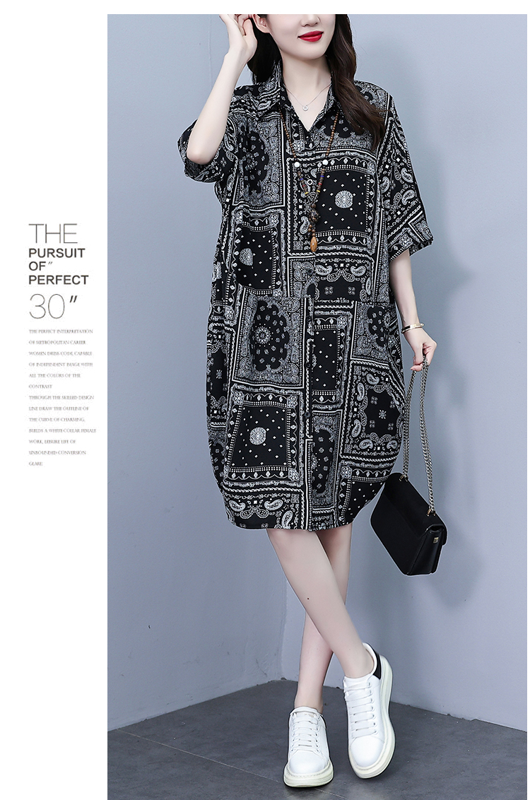 MY17181# 休闲宽松型大码女装连衣裙印花衬衣中长款连衣裙女裝貨源服裝批發