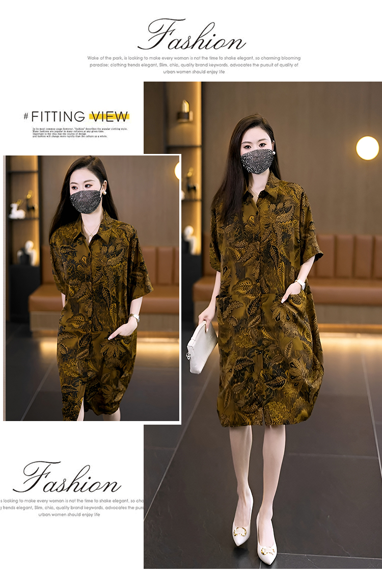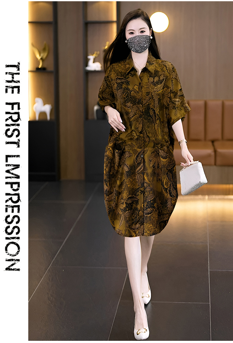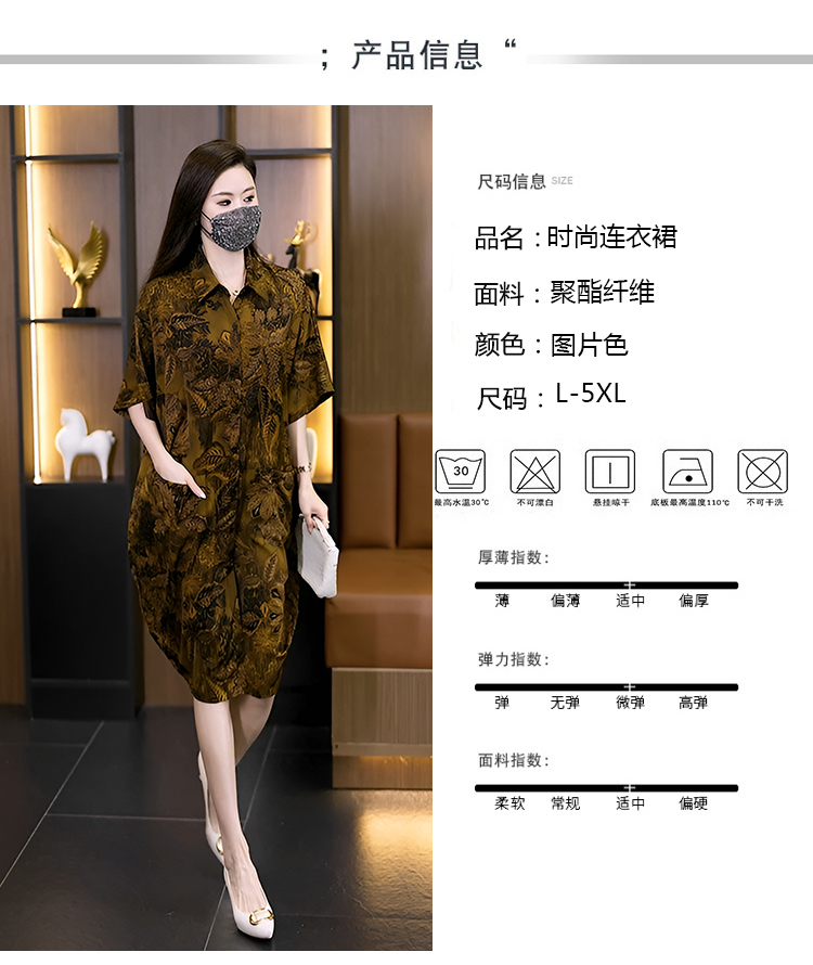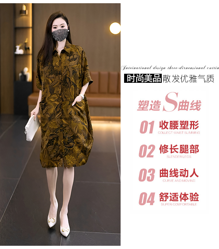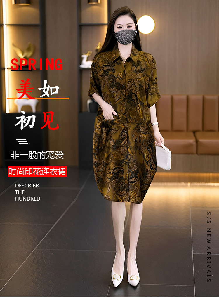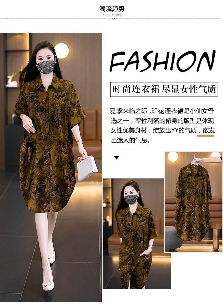 MY17184# 休闲宽松型大码女装连衣裙印花衬衣中长款连衣裙女裝貨源服裝批發