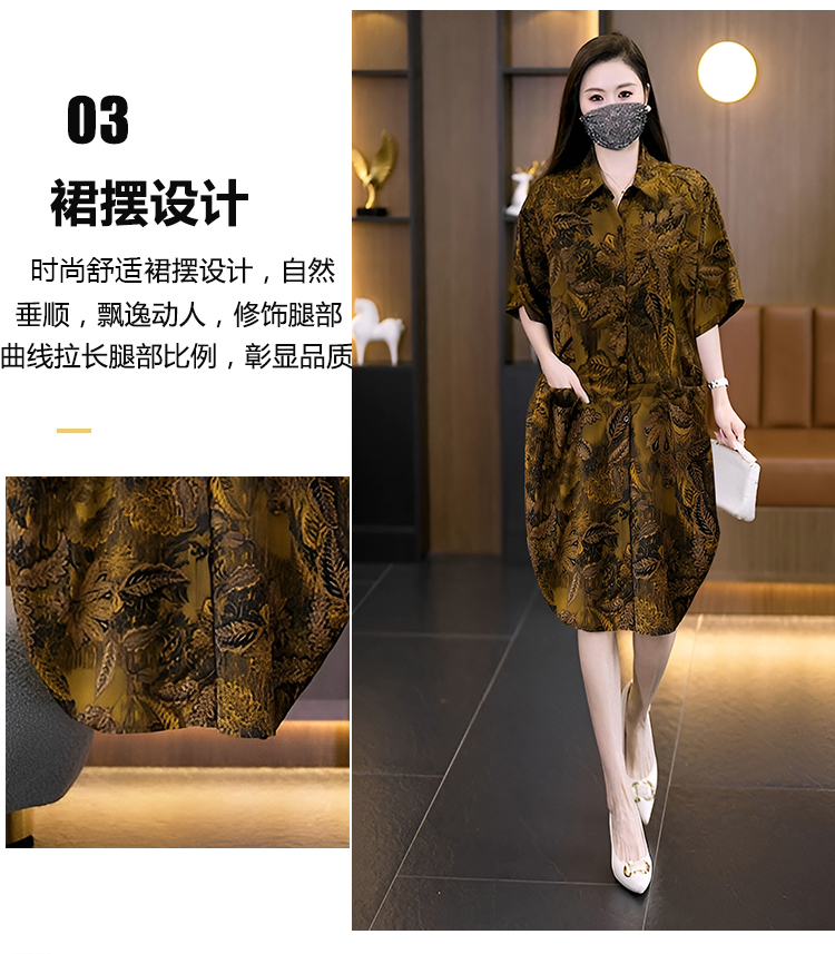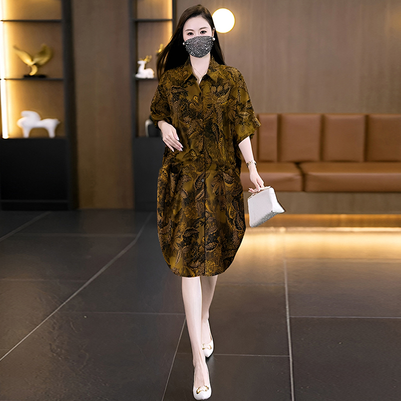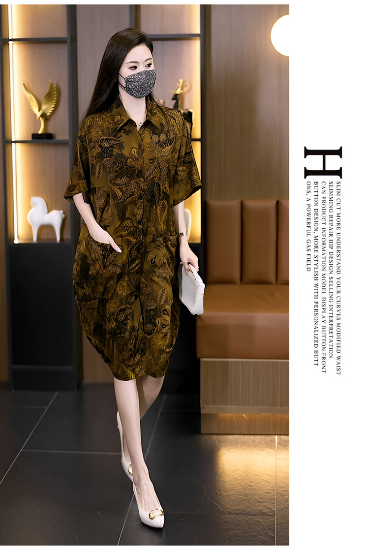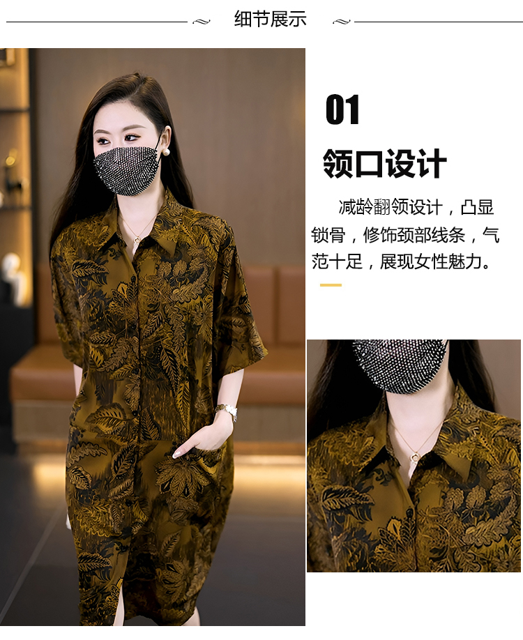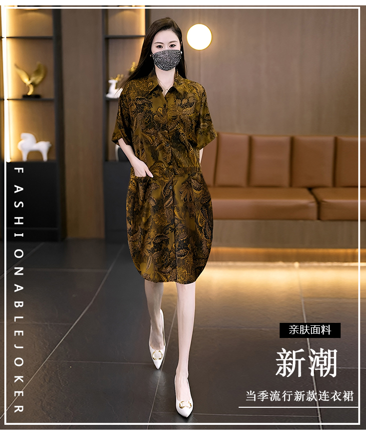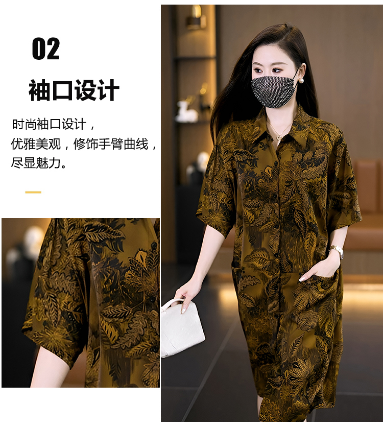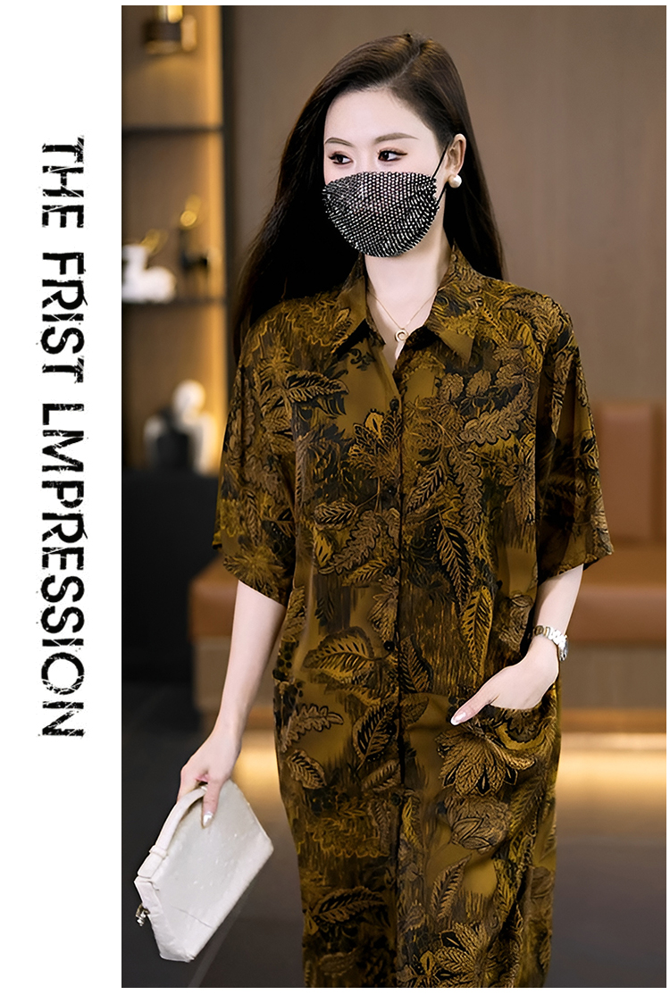 MY17184# 休闲宽松型大码女装连衣裙印花衬衣中长款连衣裙女裝貨源服裝批發