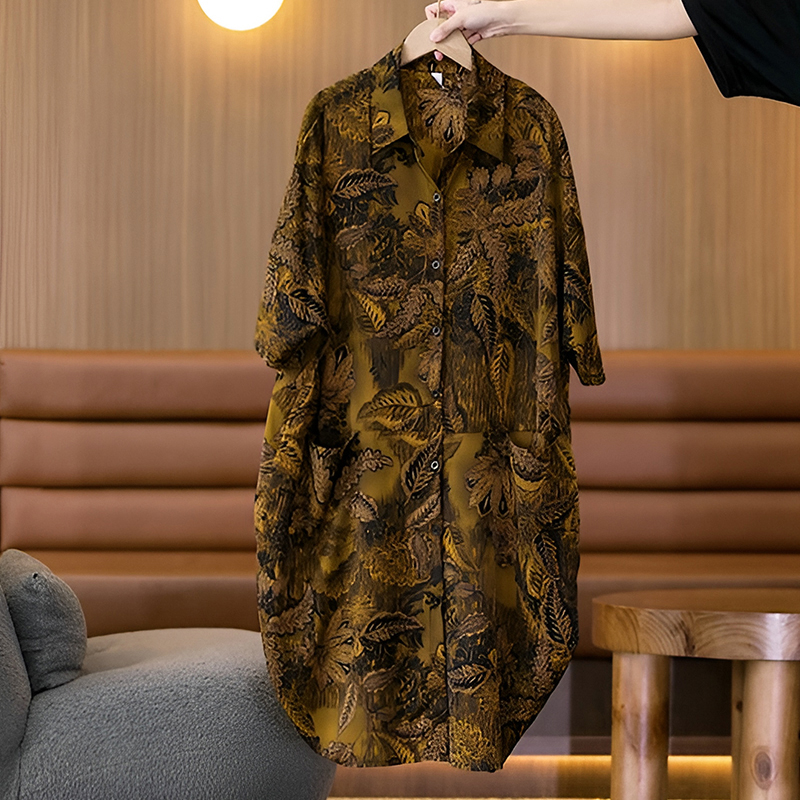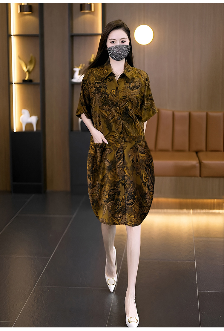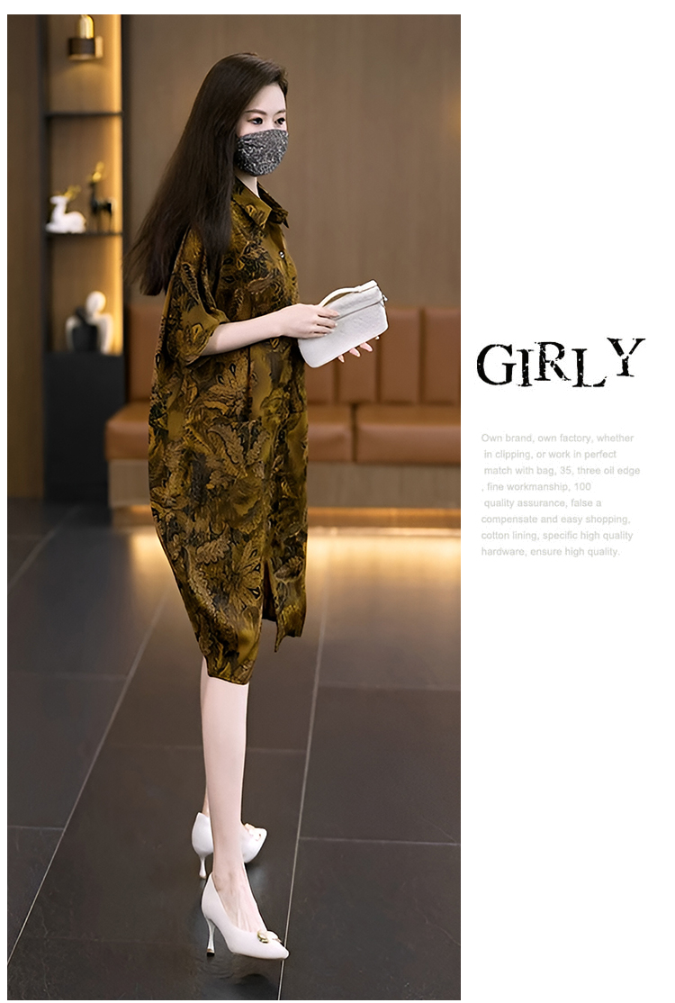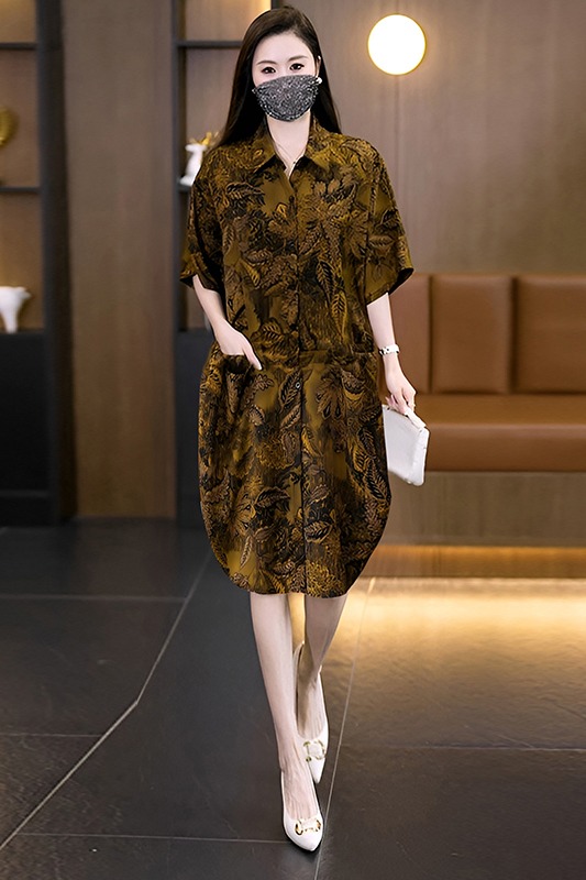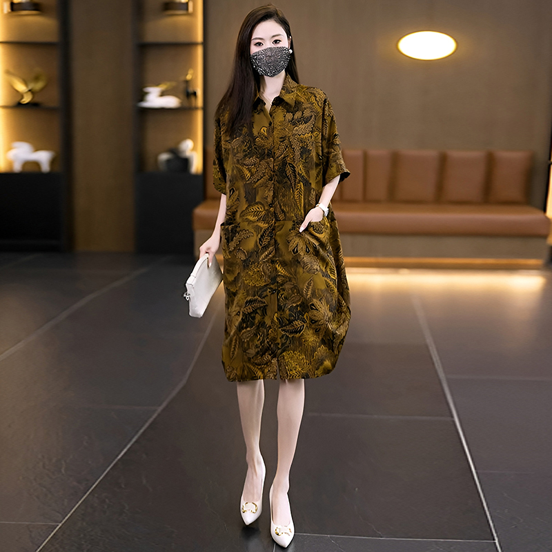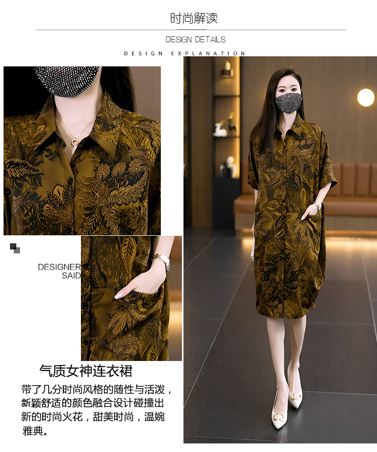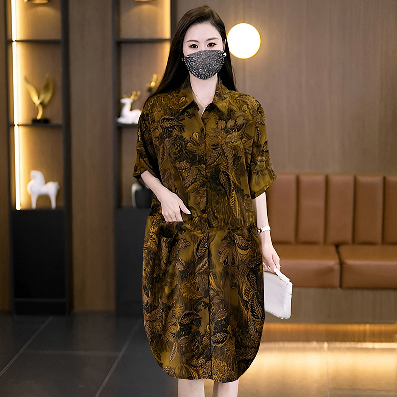 MY17184# 休闲宽松型大码女装连衣裙印花衬衣中长款连衣裙女裝貨源服裝批發