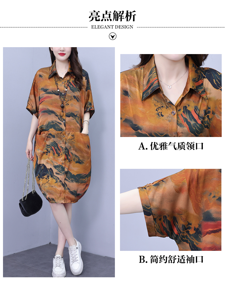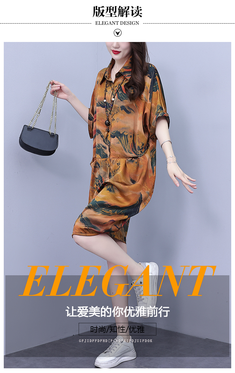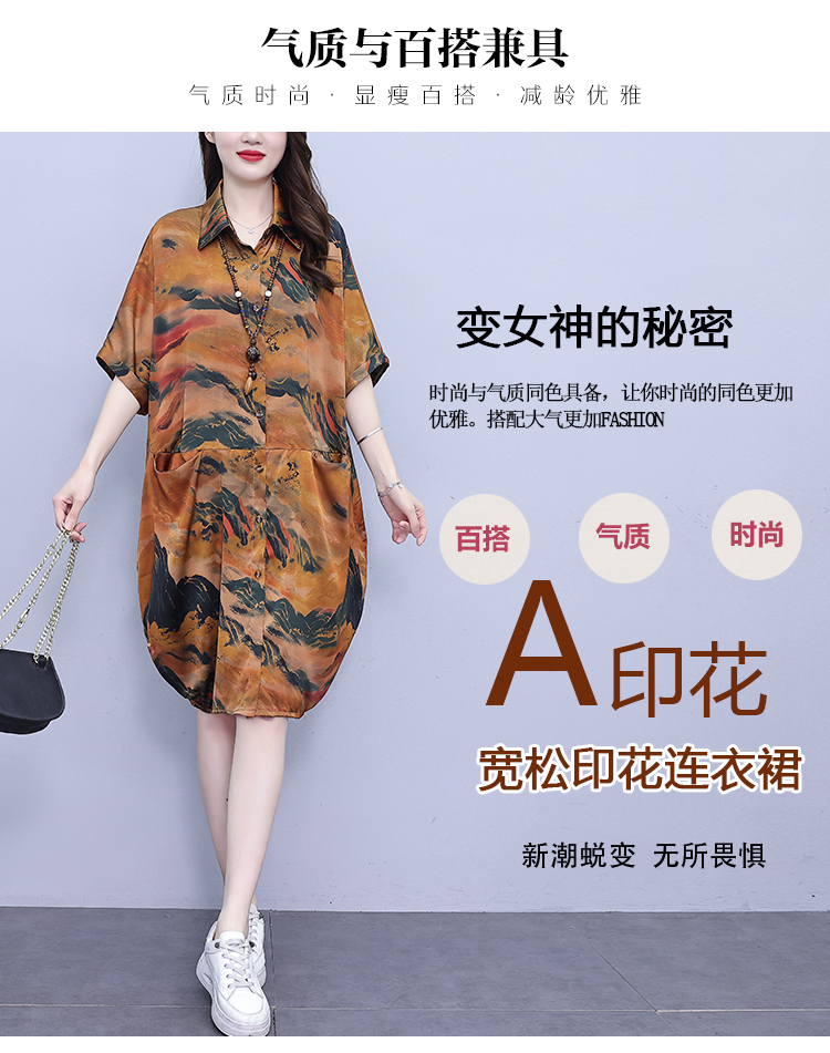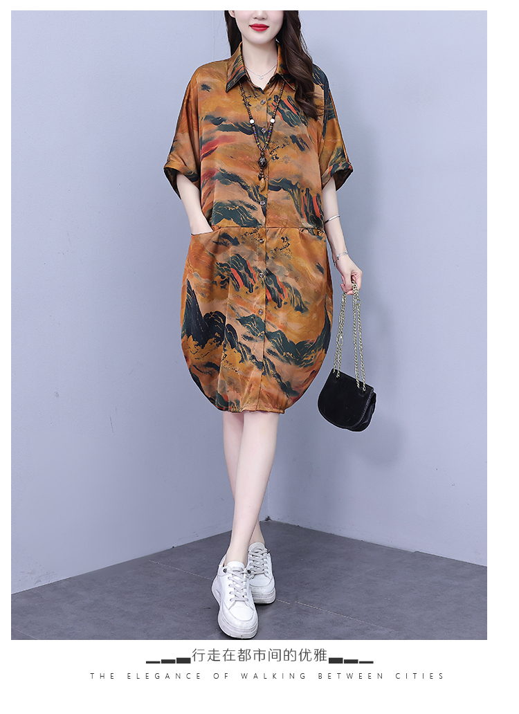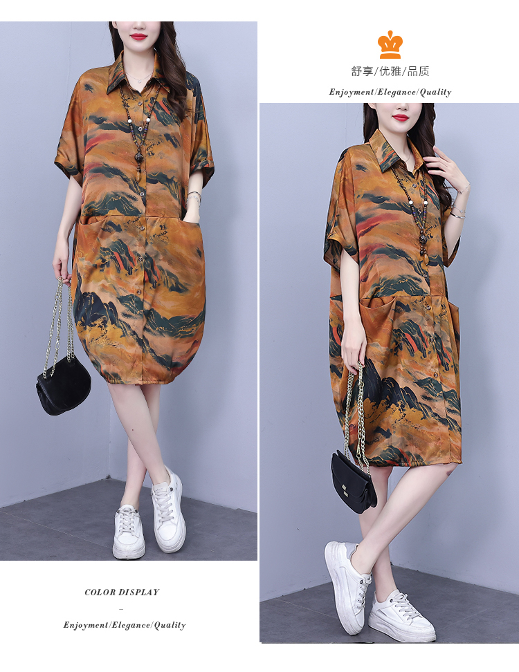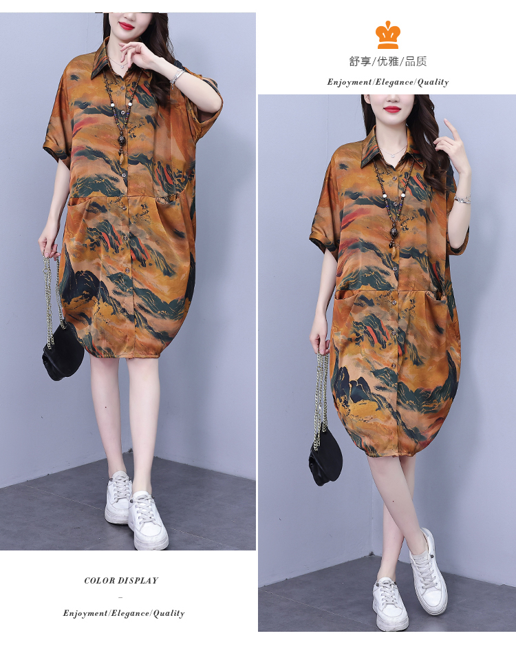 MY17185# 休闲宽松型大码女装连衣裙印花衬衣中长款女裝貨源服裝批發