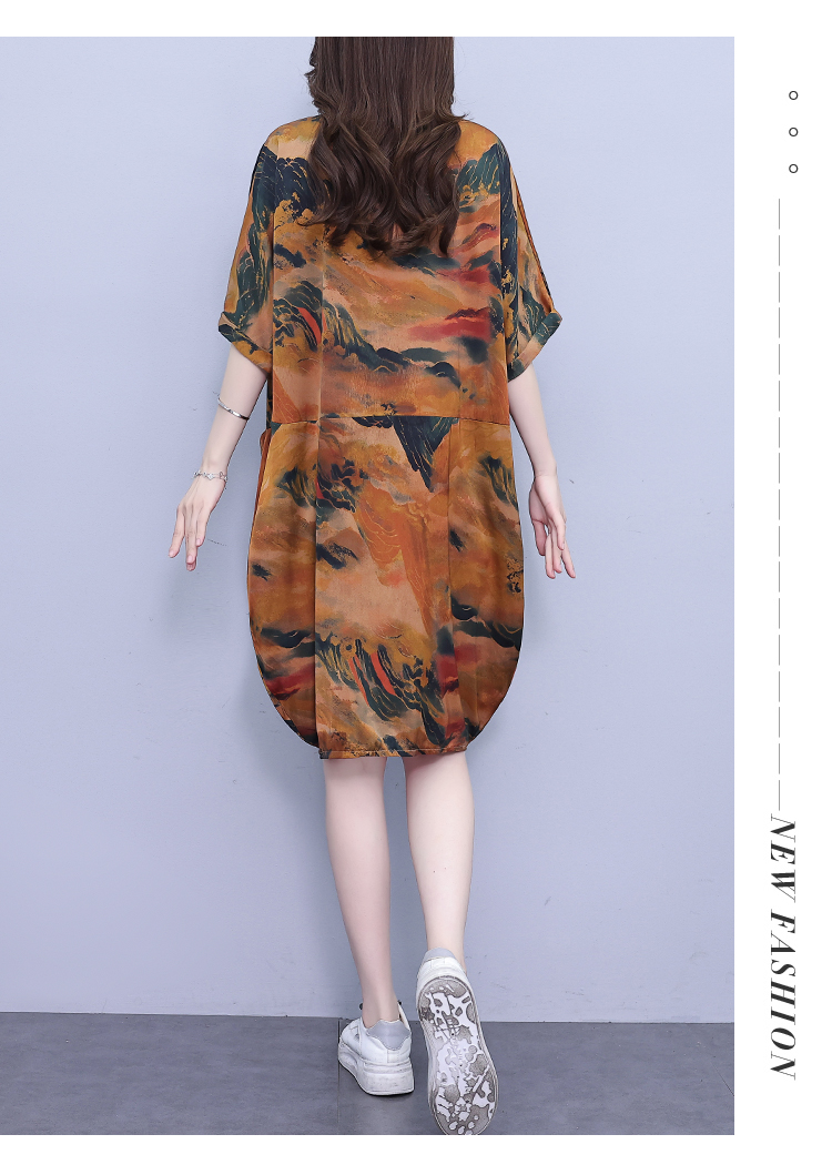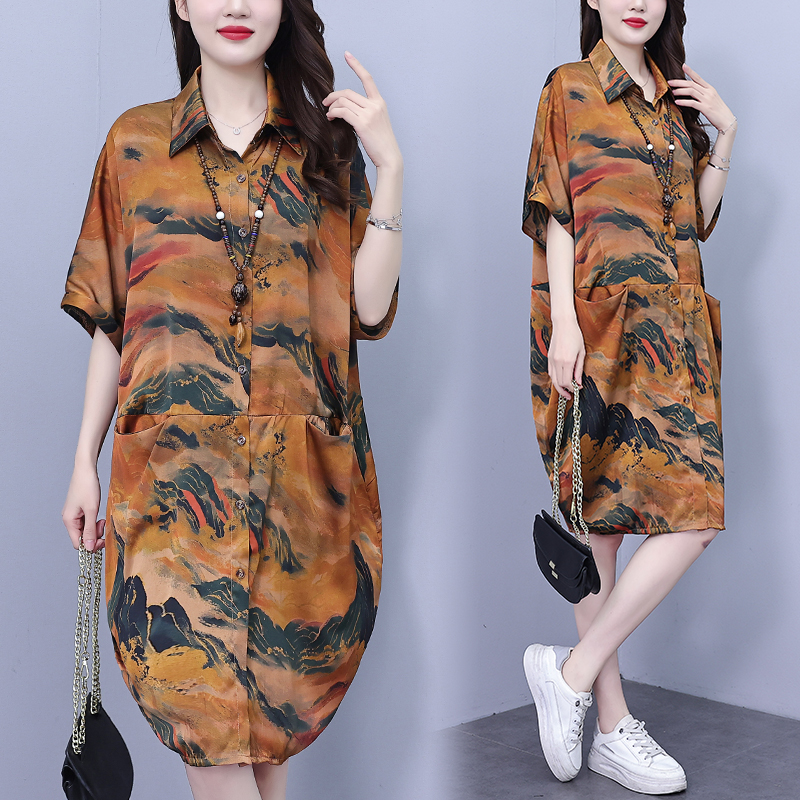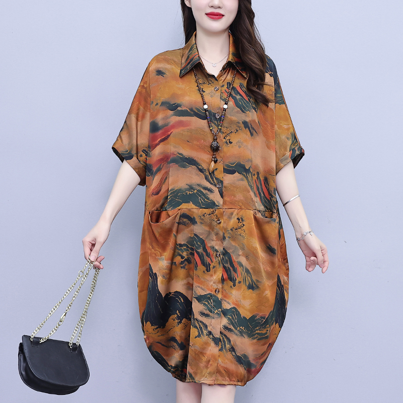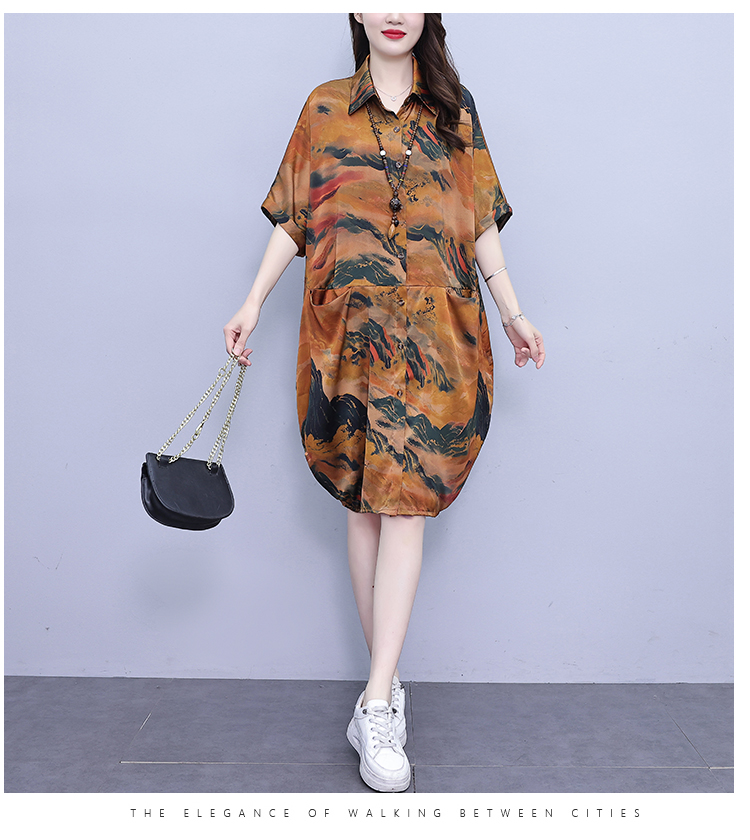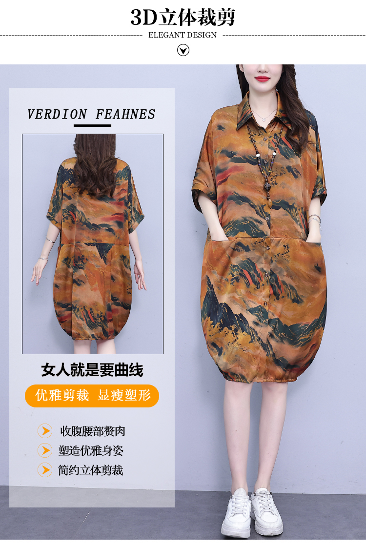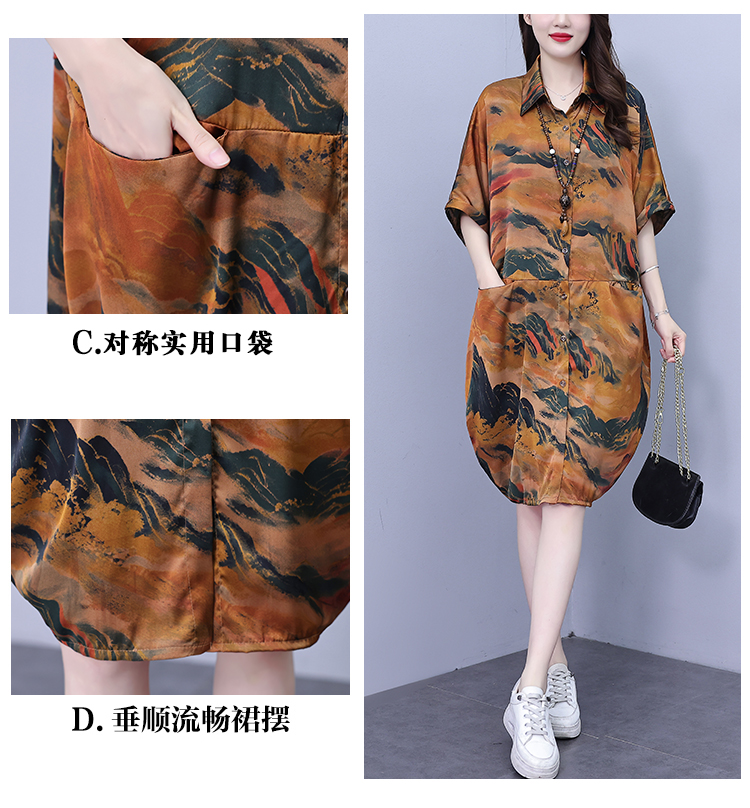 MY17185# 休闲宽松型大码女装连衣裙印花衬衣中长款女裝貨源服裝批發
