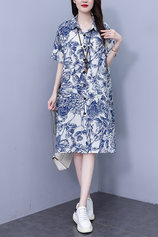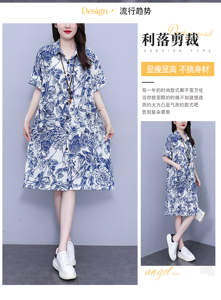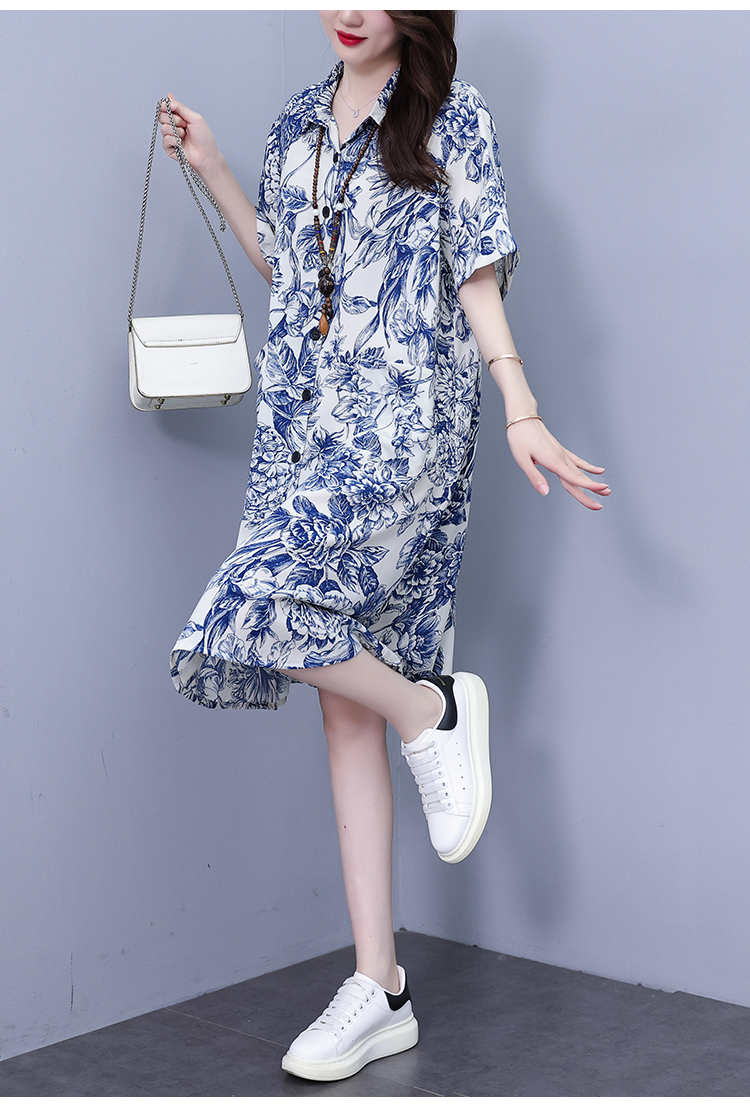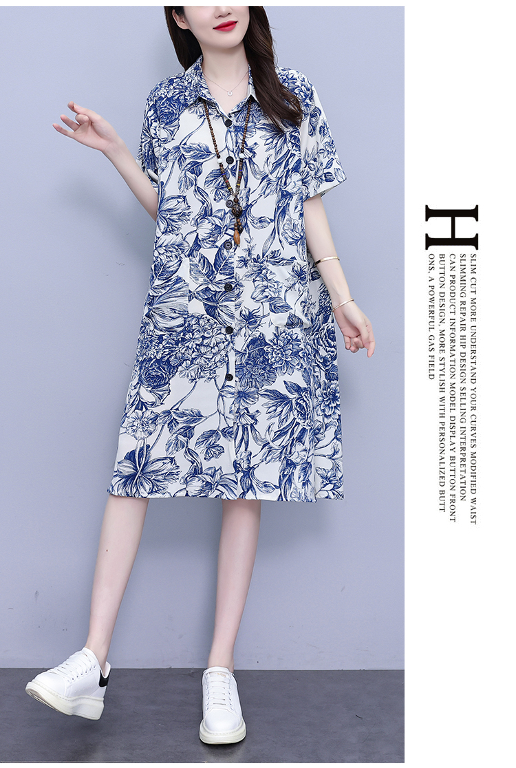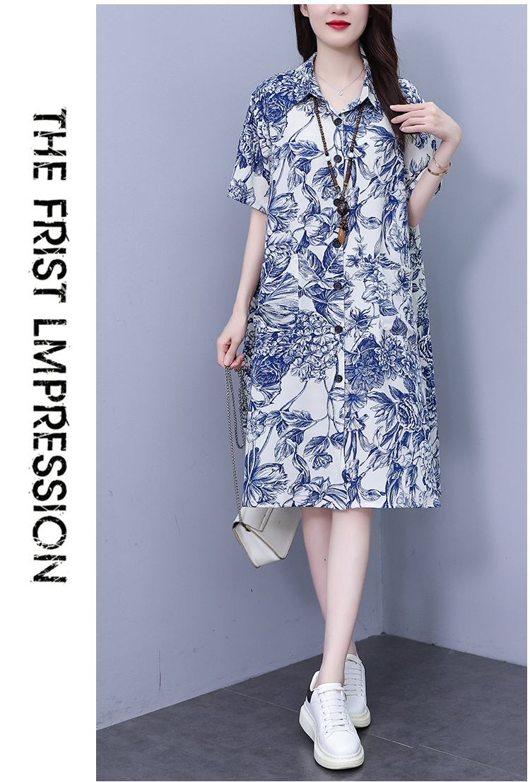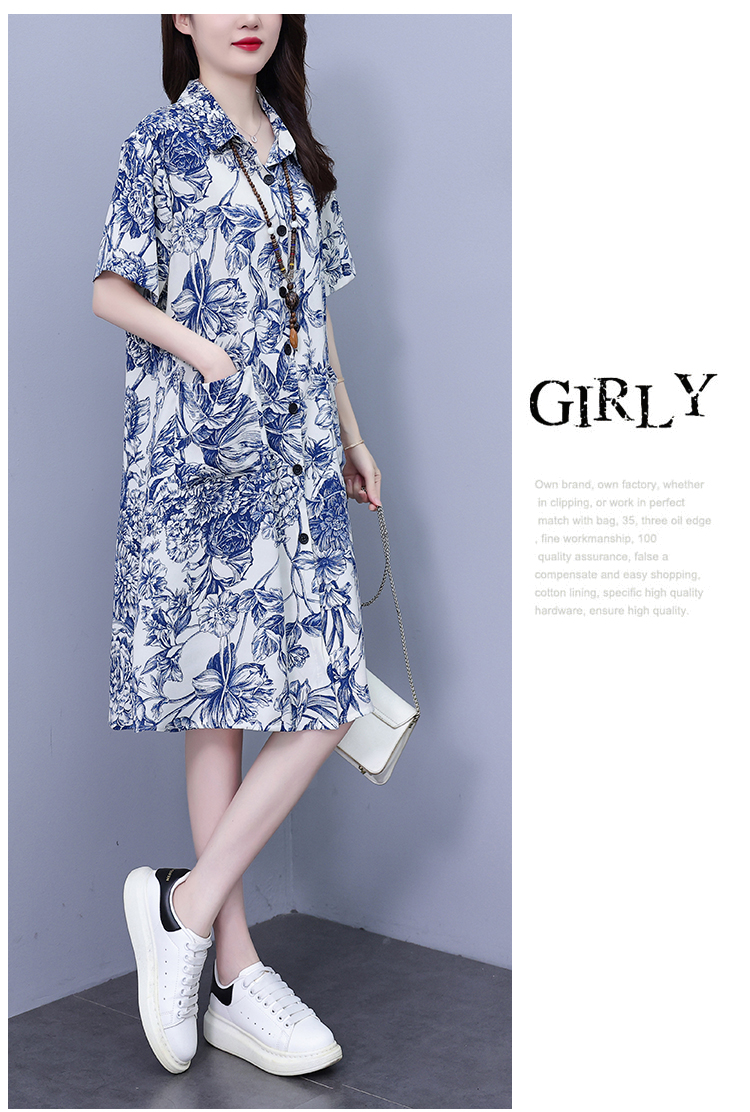 MY17189# 休闲宽松型大码女装连衣裙印花衬衣中长款连衣裙女裝貨源服裝批發