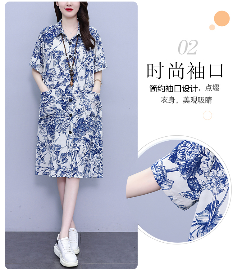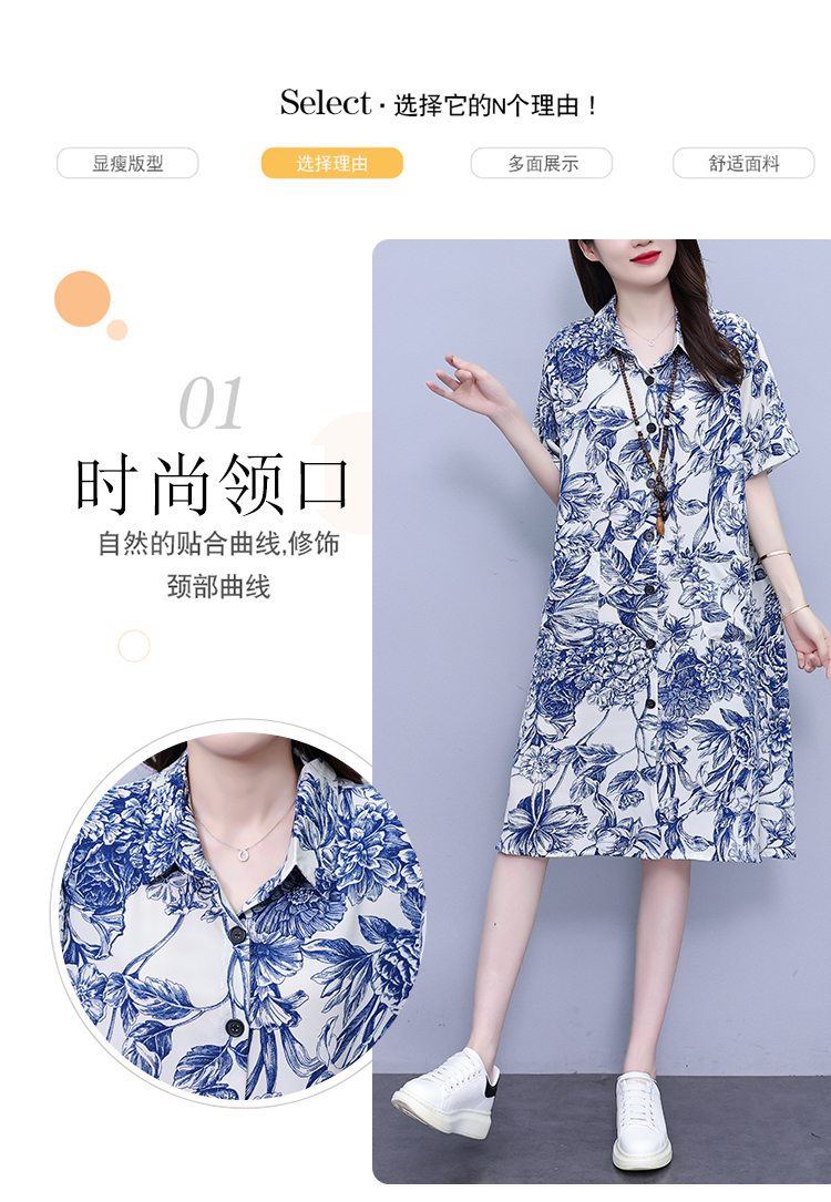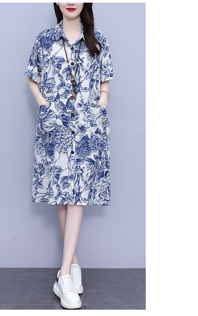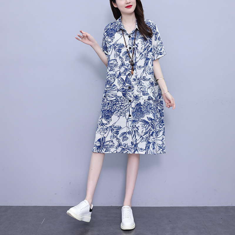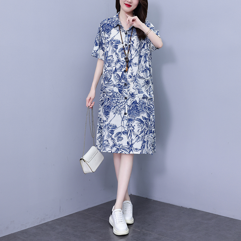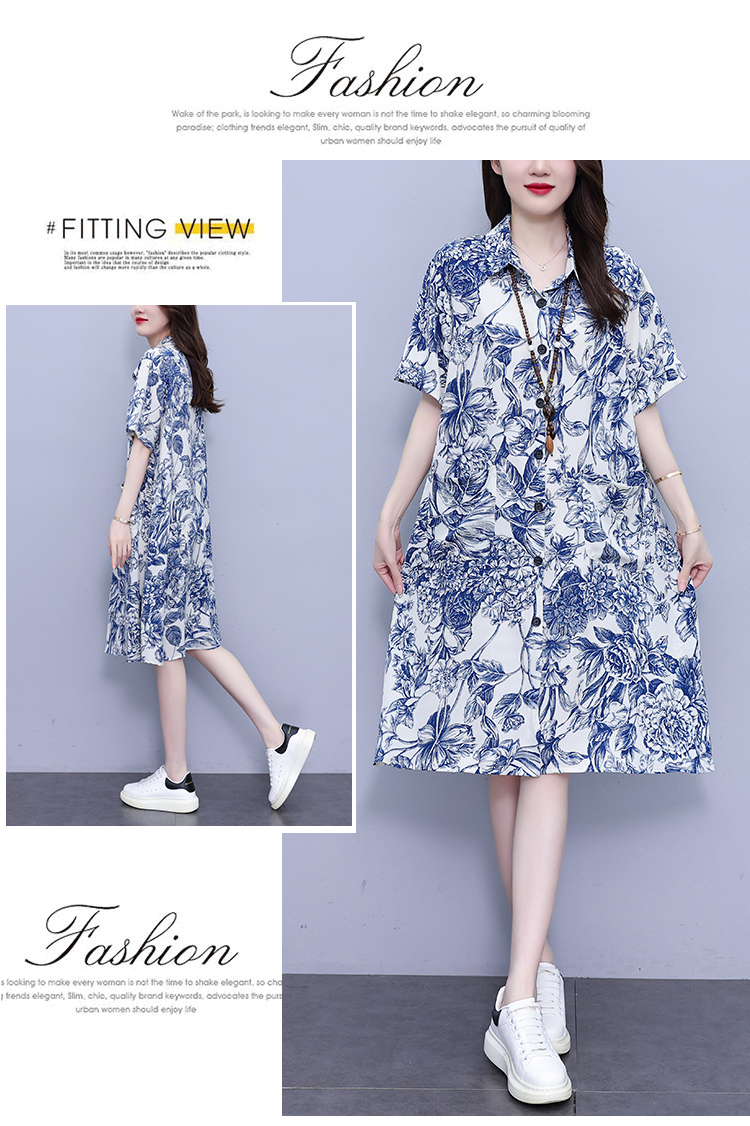 MY17189# 休闲宽松型大码女装连衣裙印花衬衣中长款连衣裙女裝貨源服裝批發
