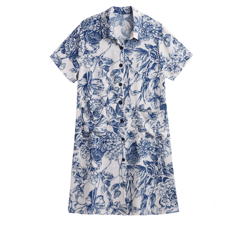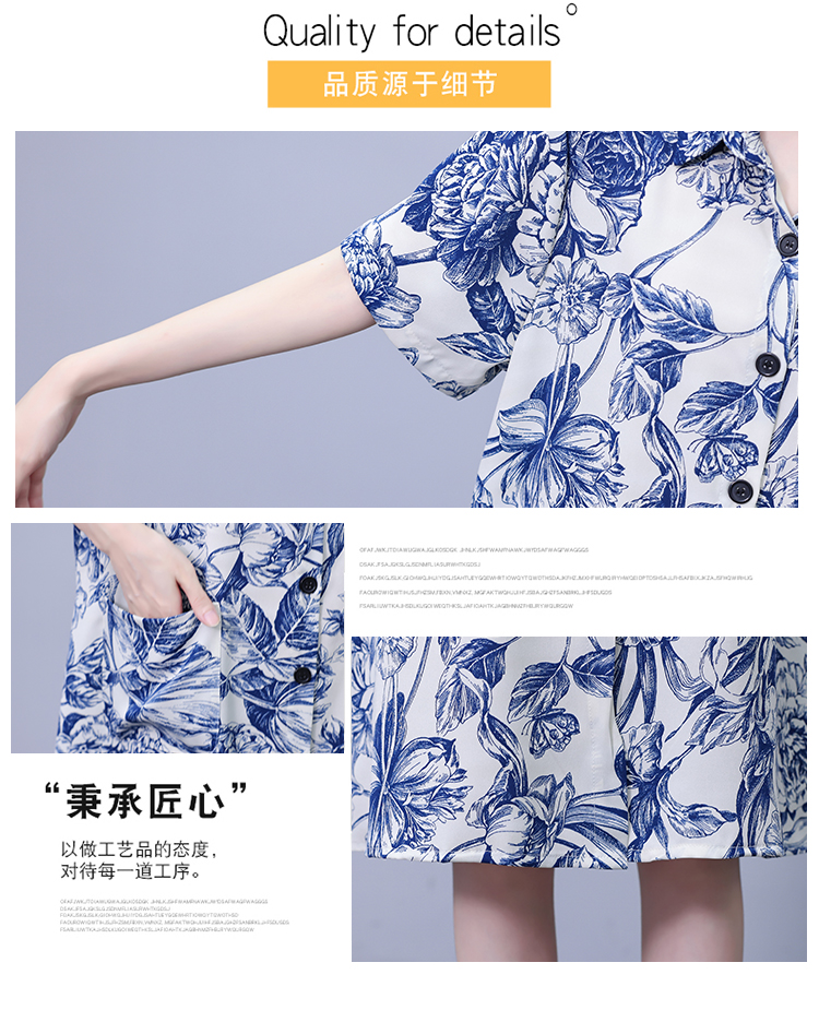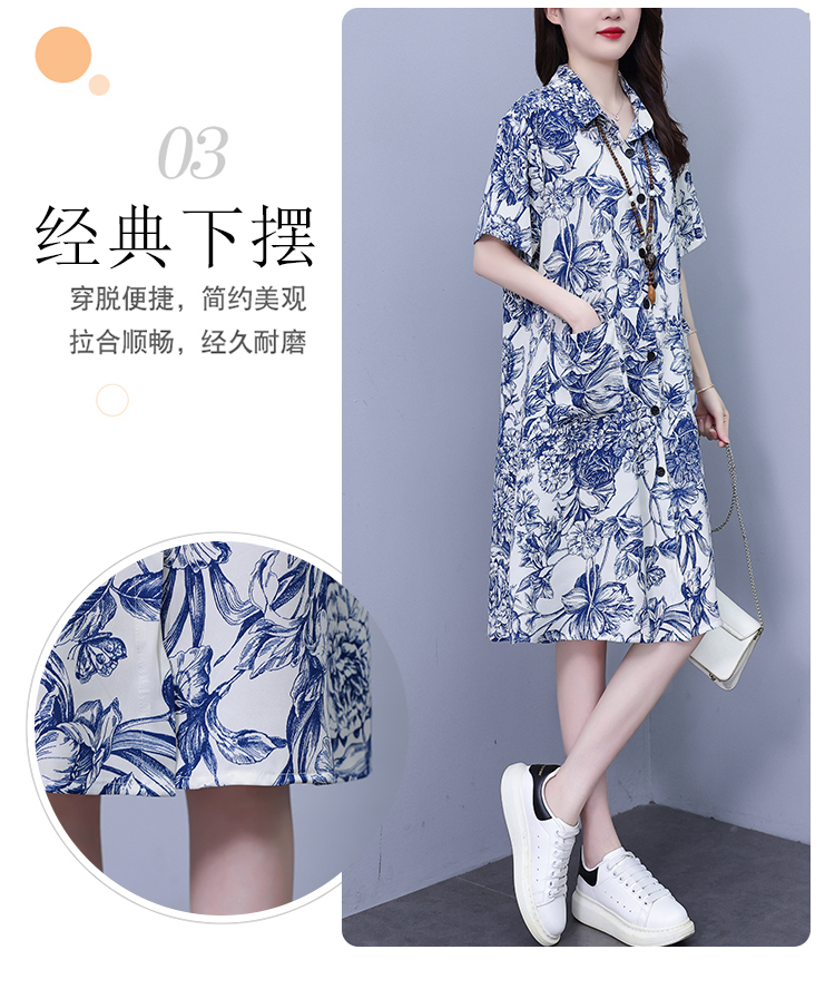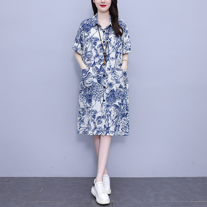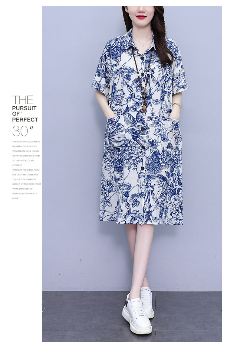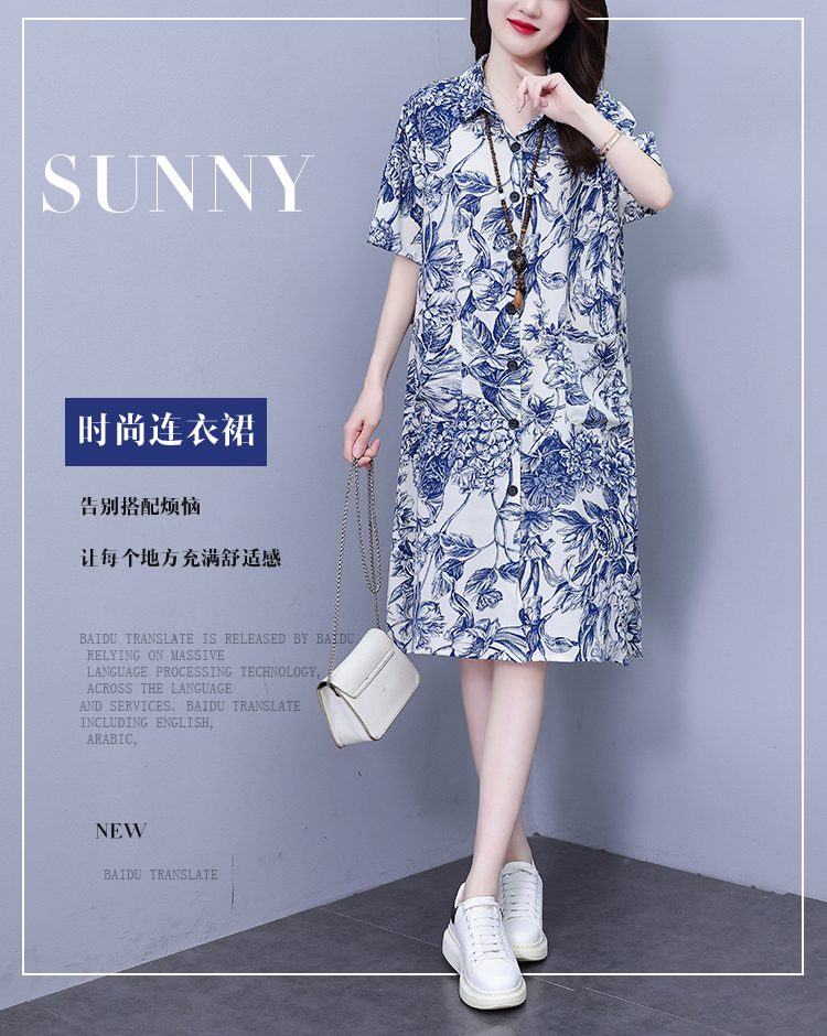 MY17189# 休闲宽松型大码女装连衣裙印花衬衣中长款连衣裙女裝貨源服裝批發