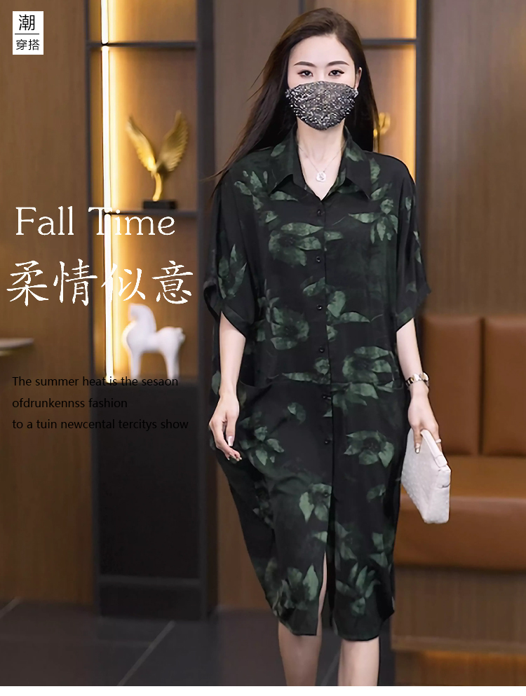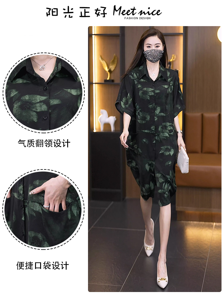 MY17190# 时尚宽松遮肉显瘦宽松舒适透气轻奢连衣裙女裝貨源服裝批發