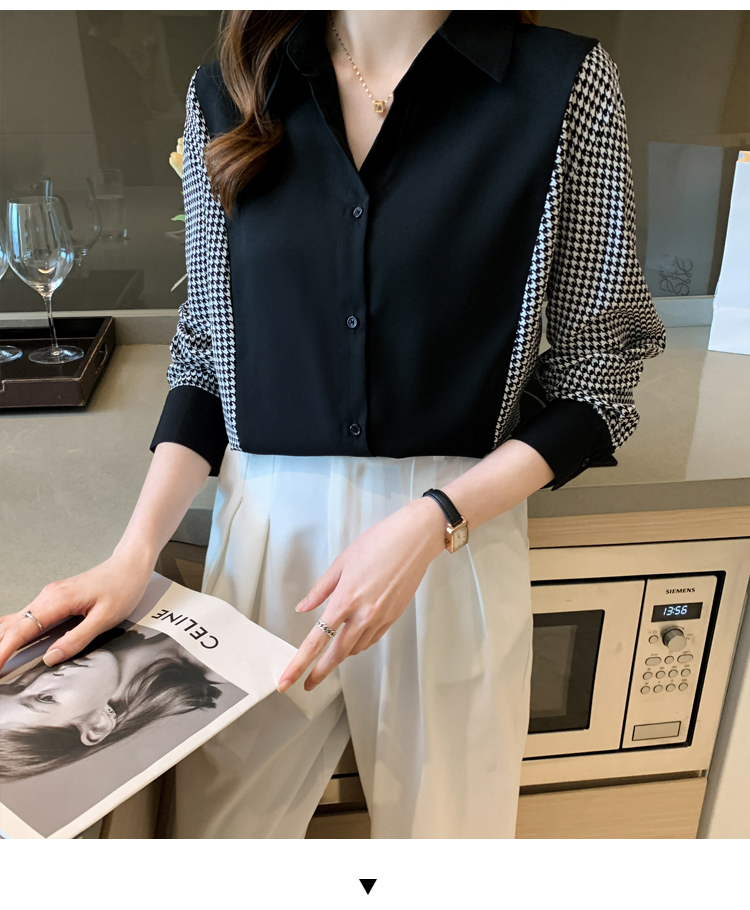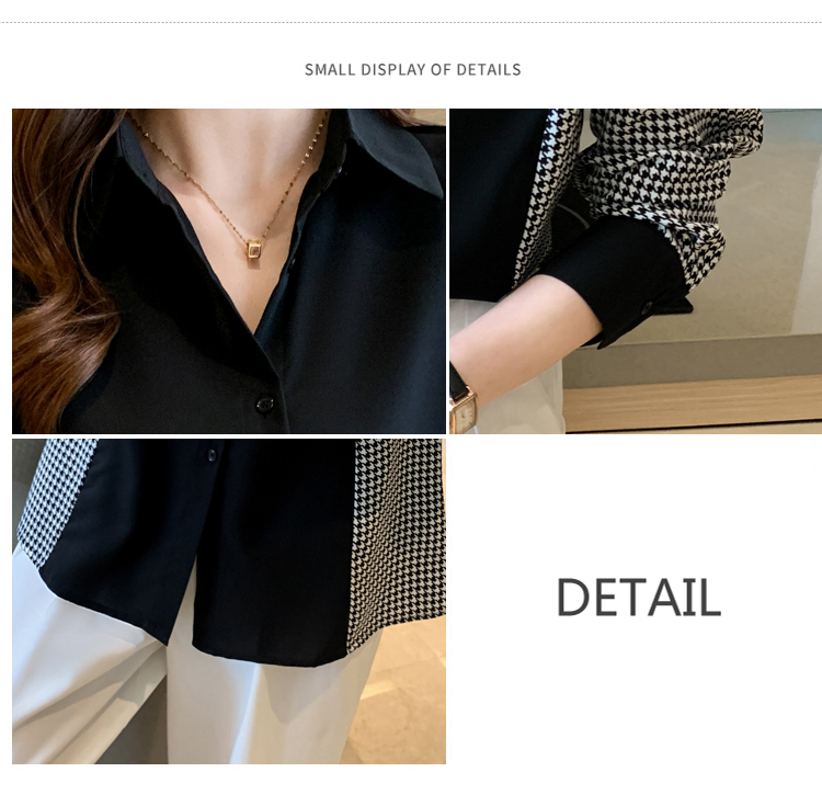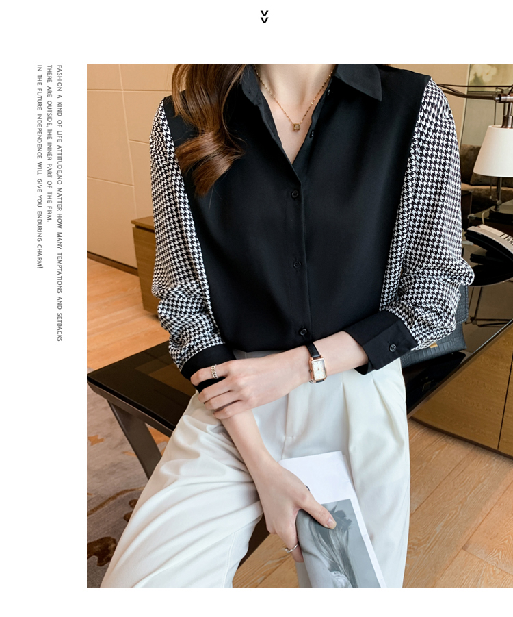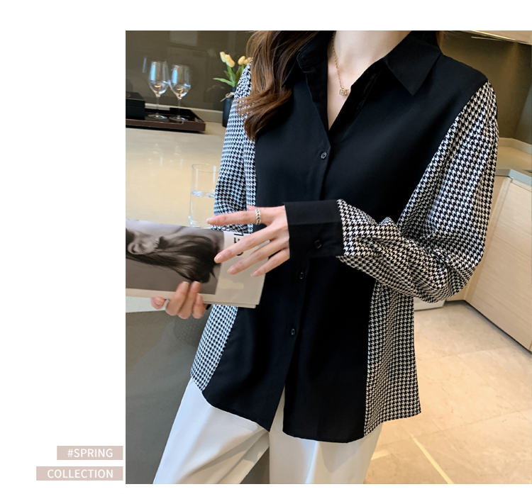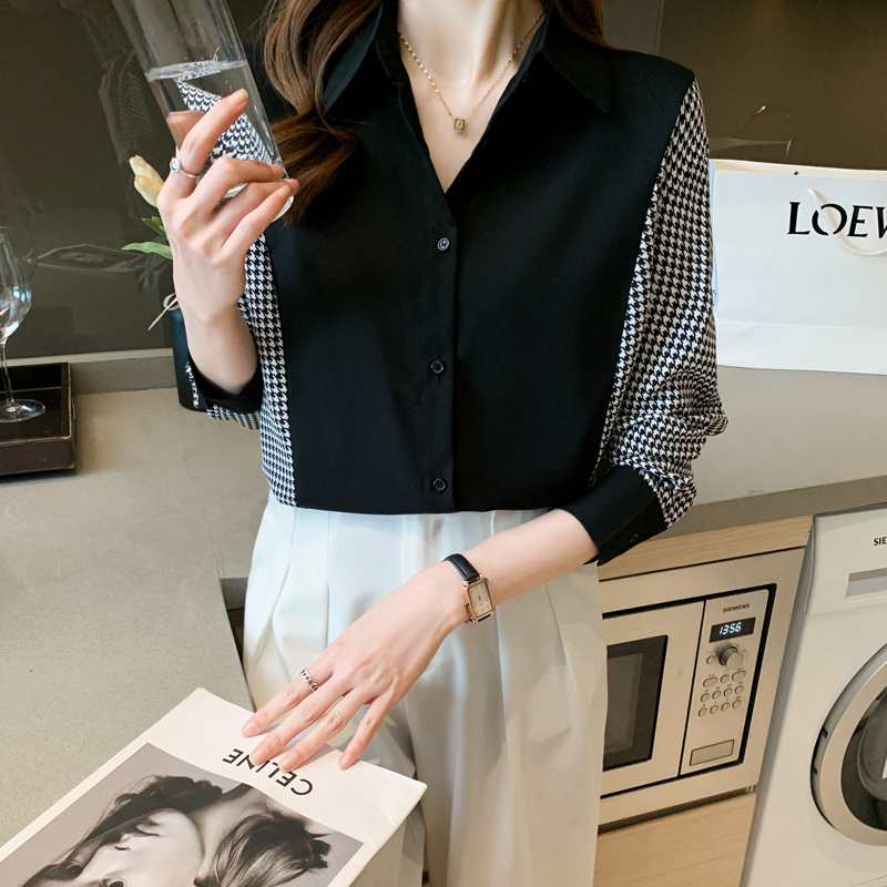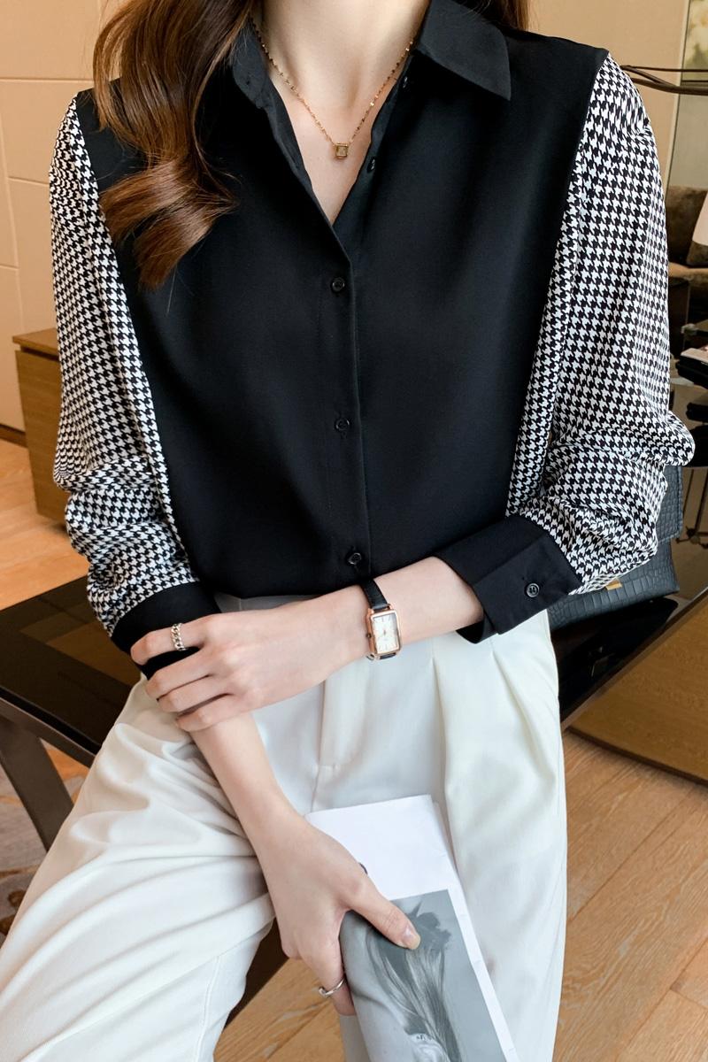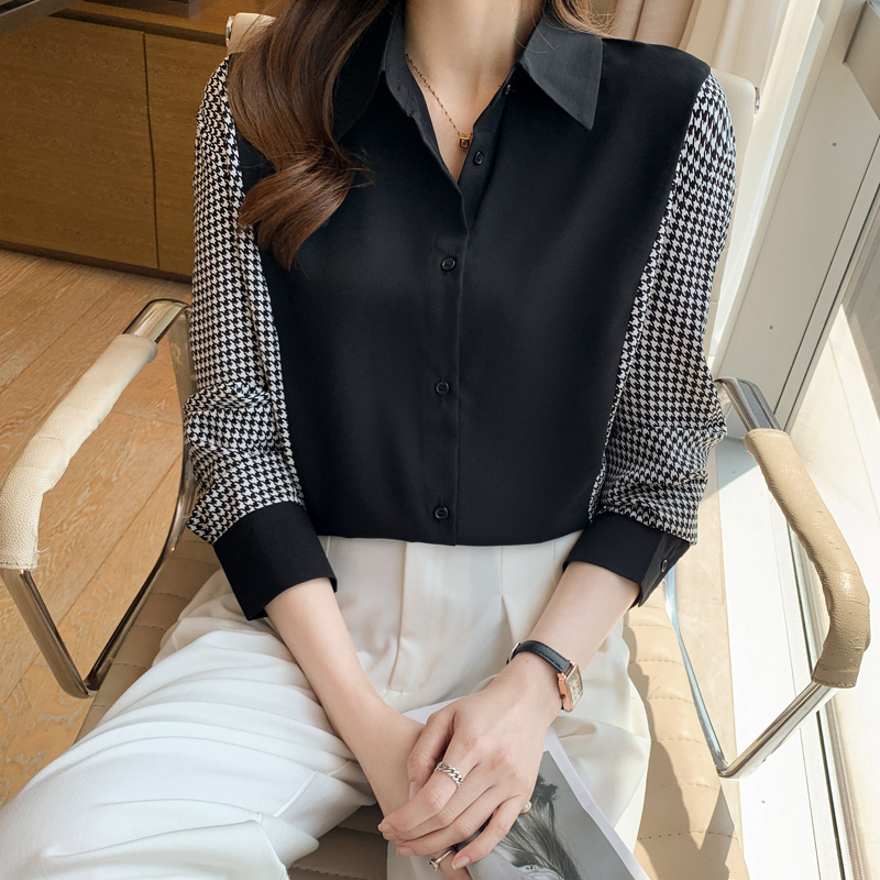 MY17196# 洋气休闲春秋新款女装翻领拼接雪纺衫上衣开衫衬衫打底衫衬衣女裝貨源服裝批發