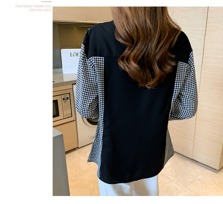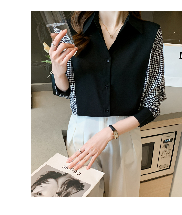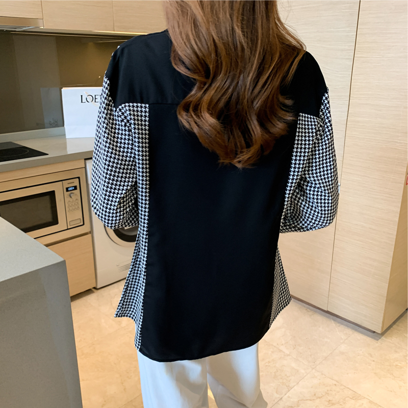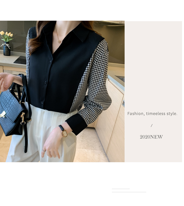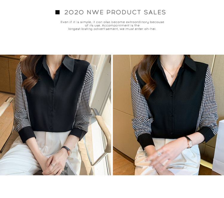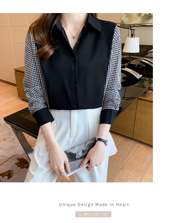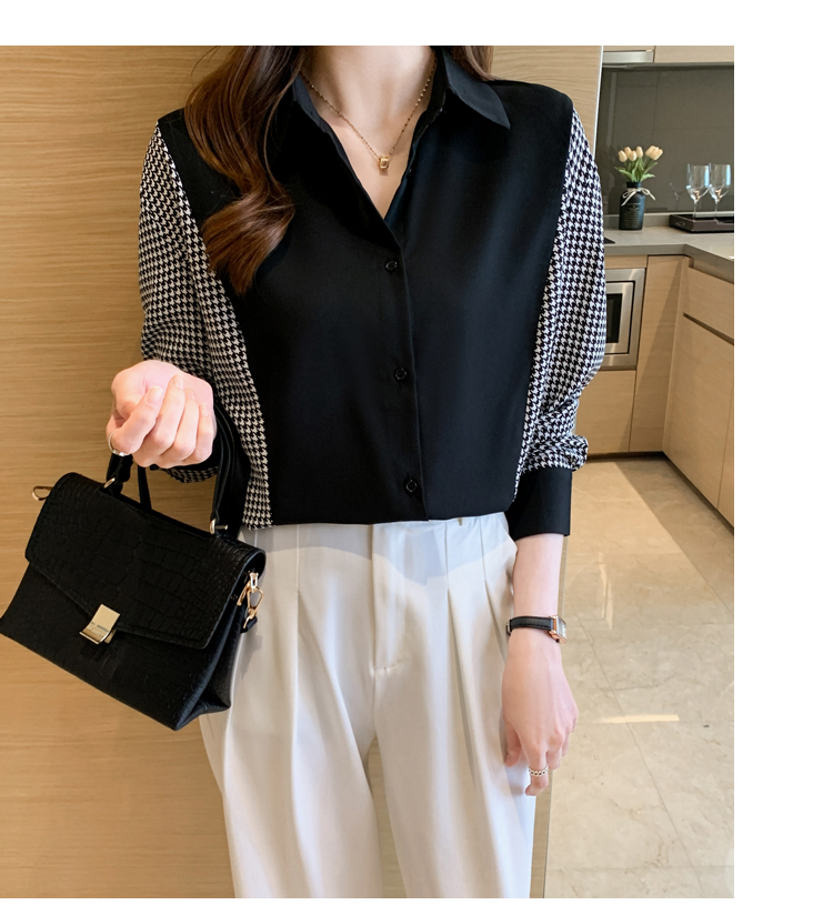MY17196# 洋气休闲春秋新款女装翻领拼接雪纺衫上衣开衫衬衫打底衫衬衣女裝貨源服裝批發