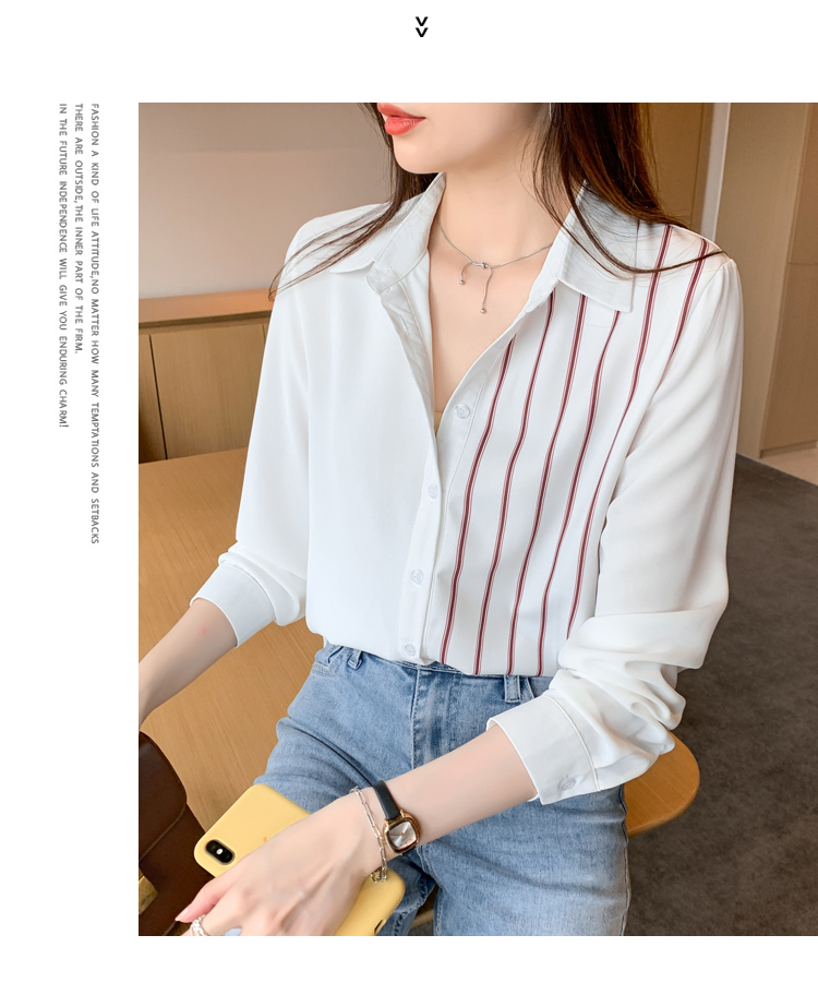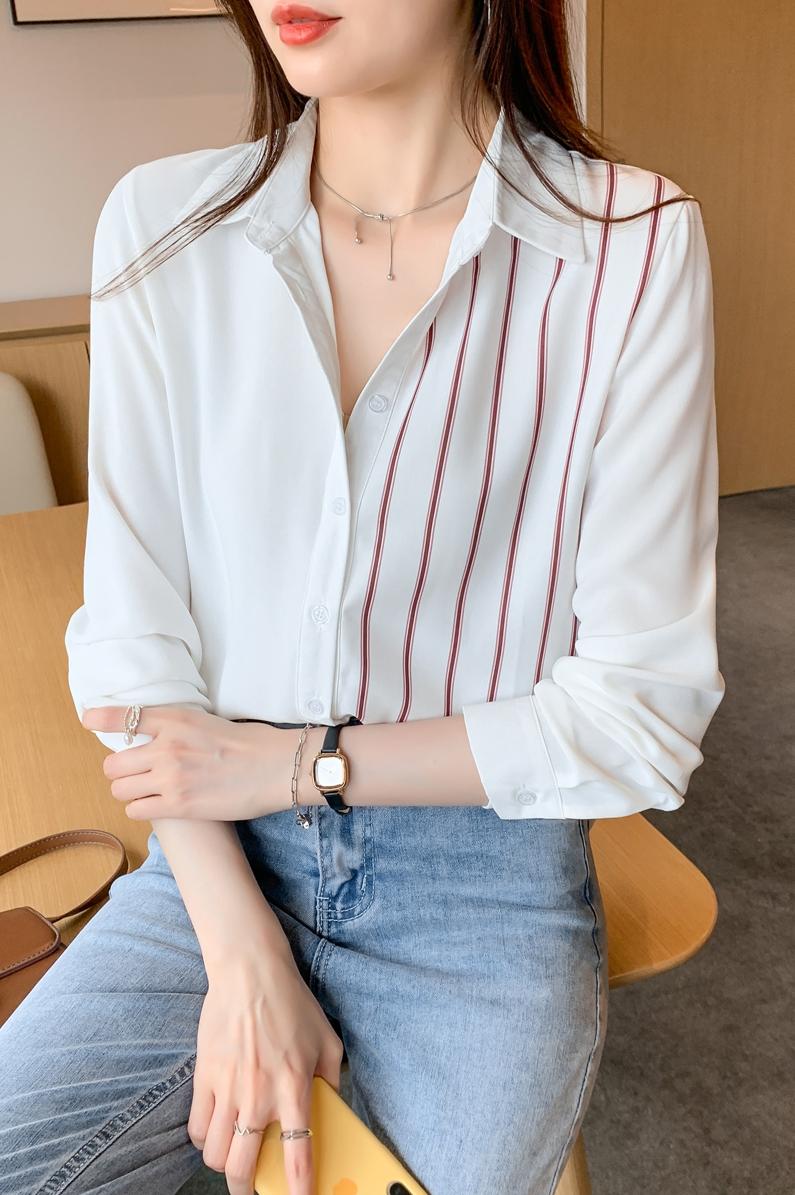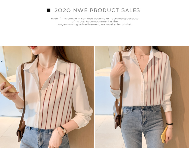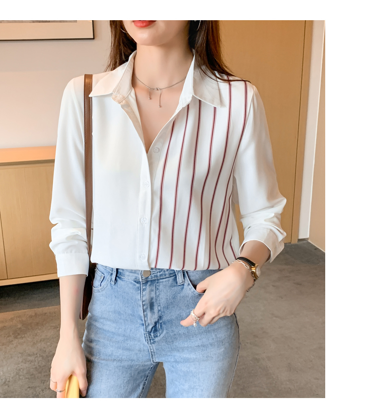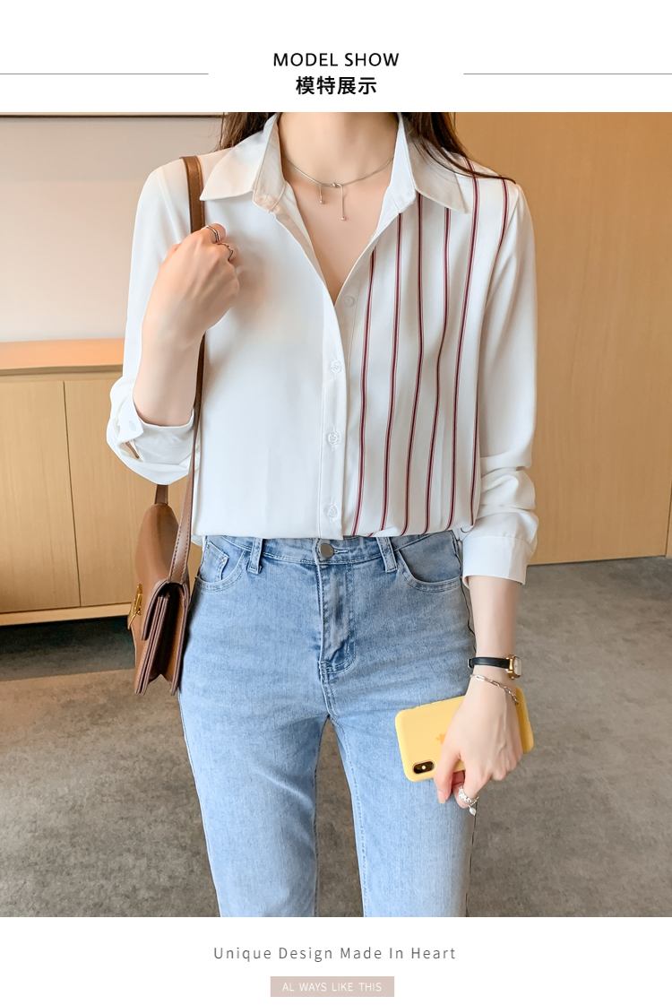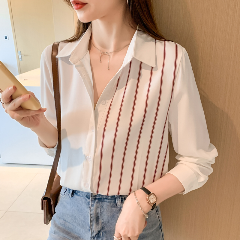 MY17201# 洋气休闲新款女装翻领条纹雪纺衫上衣开衫衬衫打底衫衬衣女裝貨源服裝批發