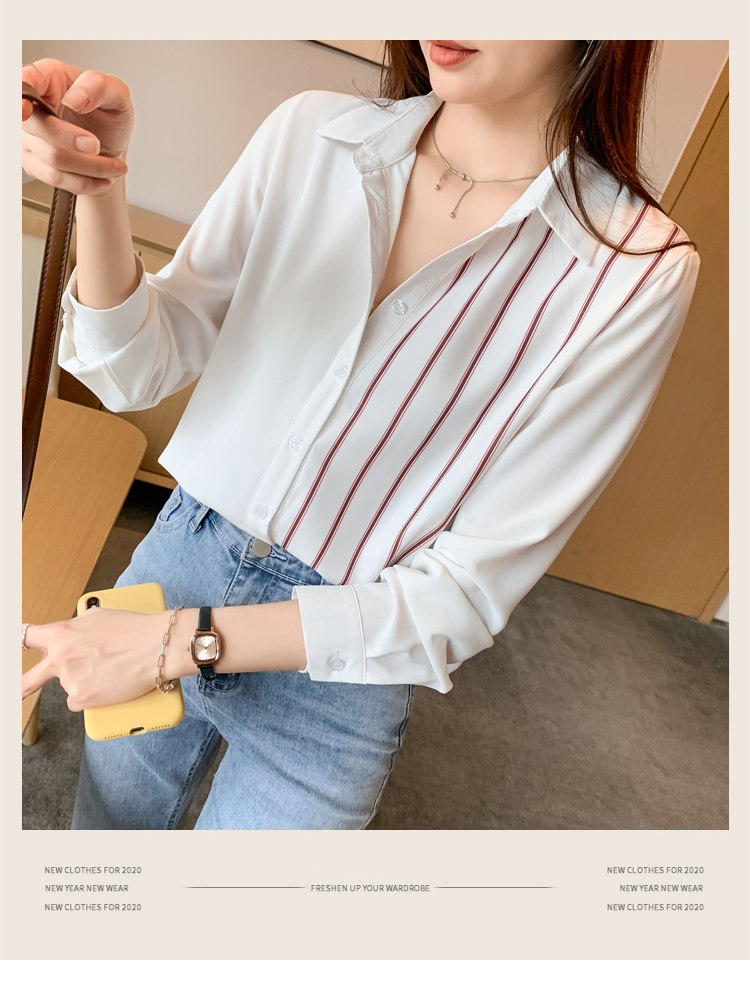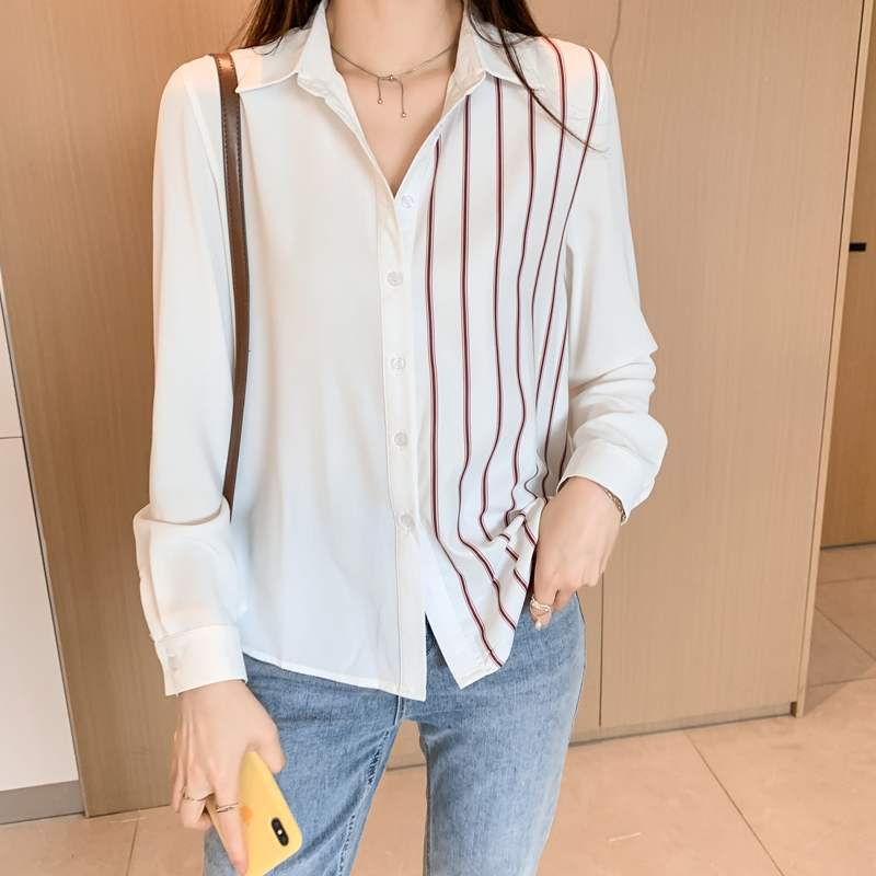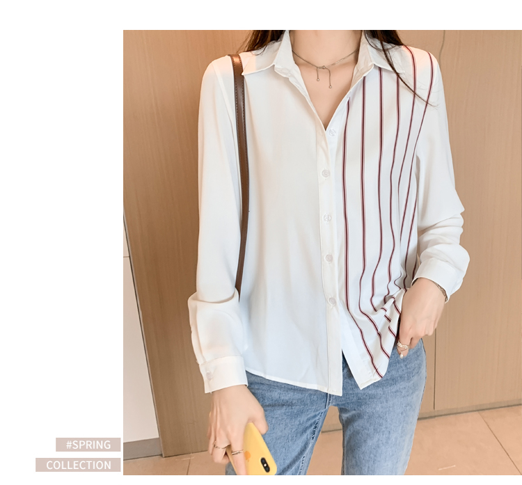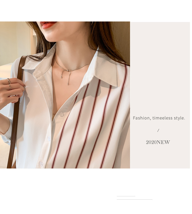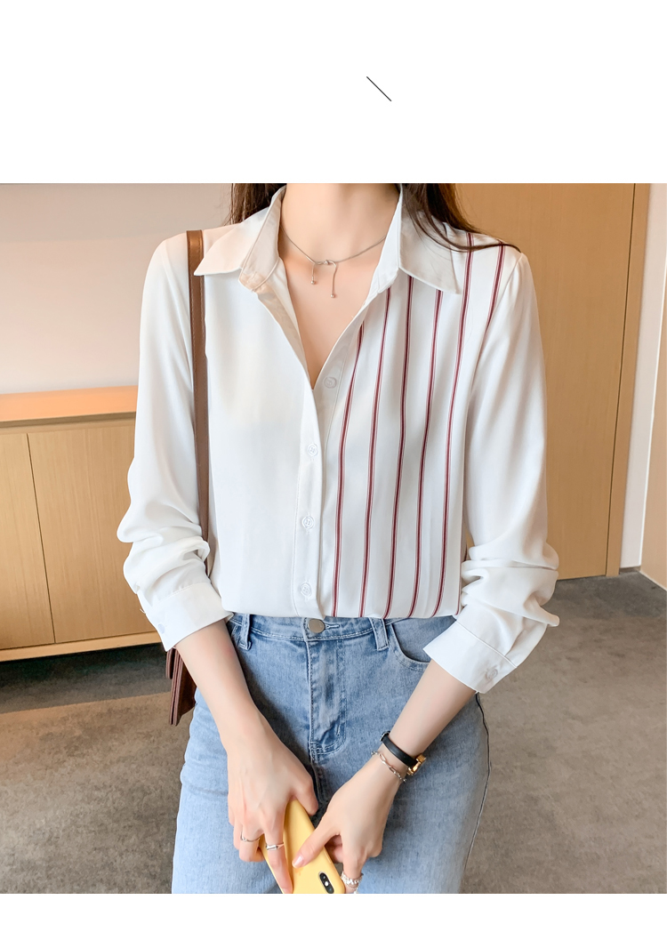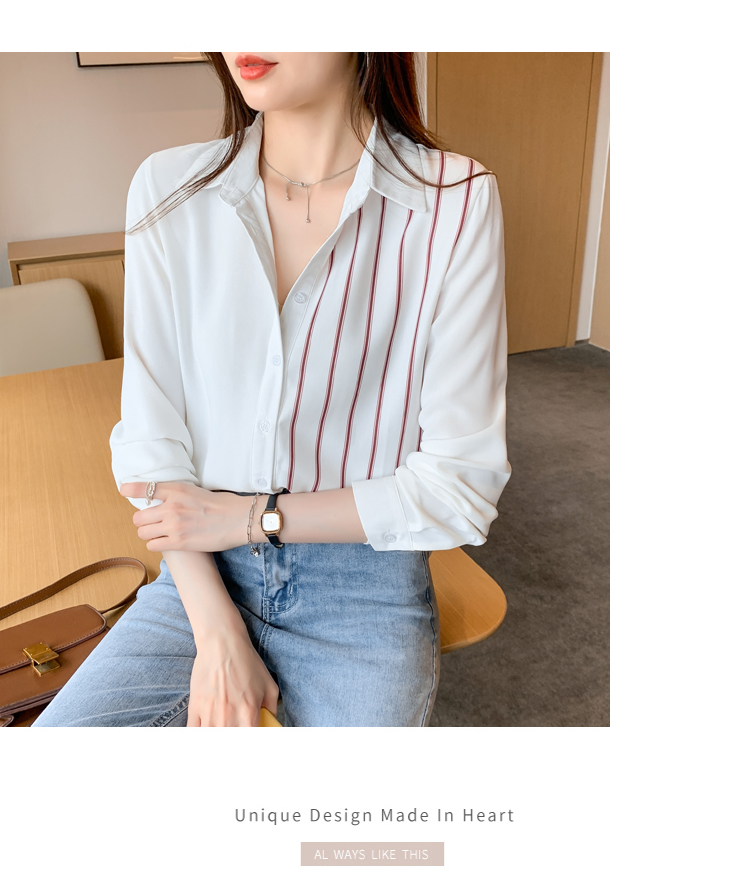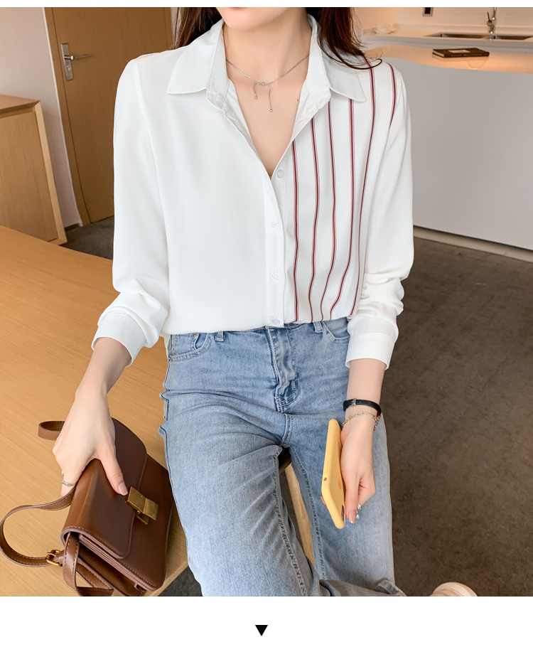 MY17201# 洋气休闲新款女装翻领条纹雪纺衫上衣开衫衬衫打底衫衬衣女裝貨源服裝批發