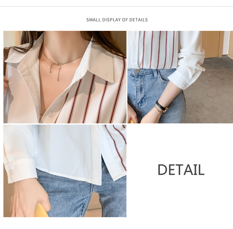 MY17200# 洋气休闲新款女装翻领条纹雪纺衫上衣开衫衬衫打底衫衬衣女裝...