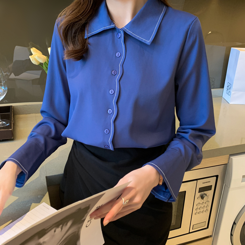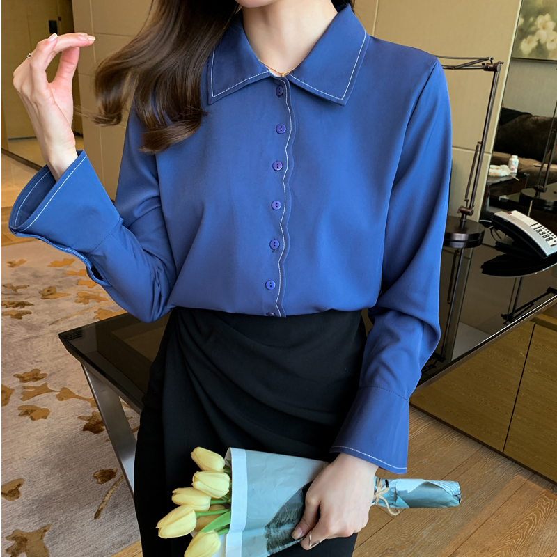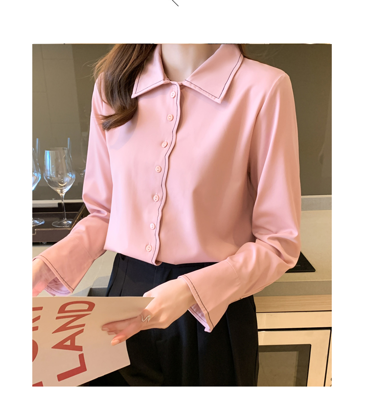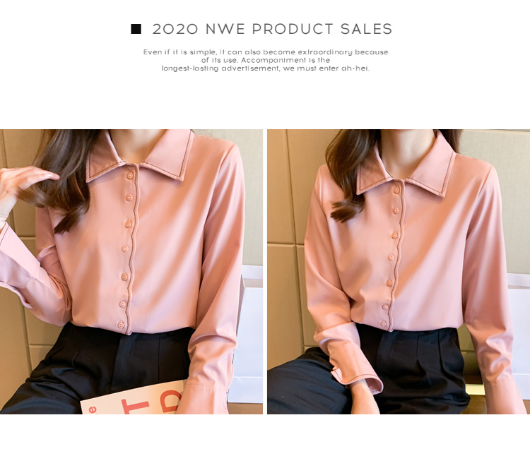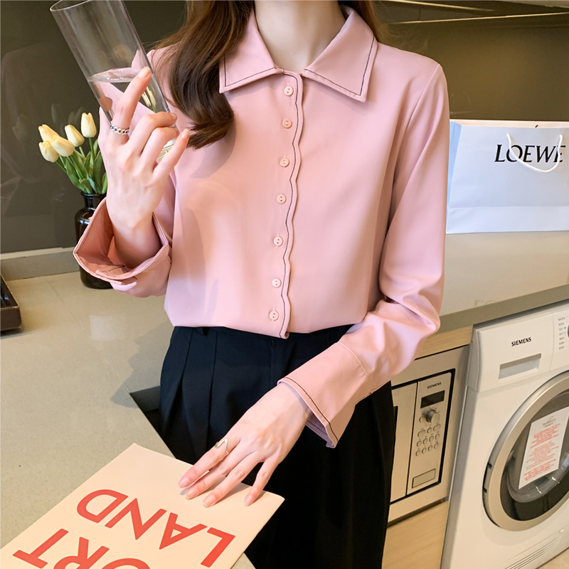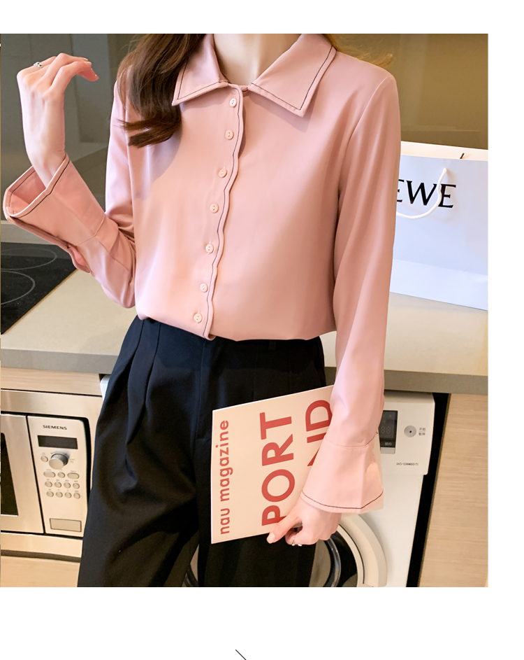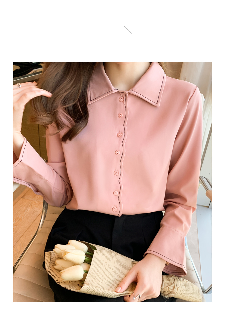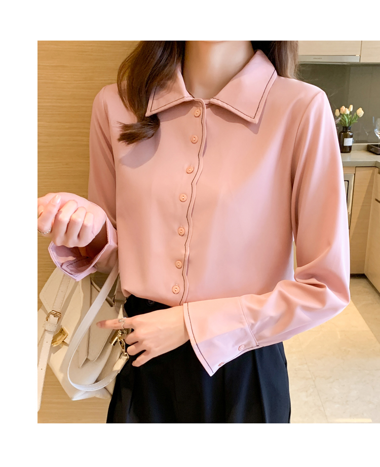 MY17207# 洋气新款纯色衬衫女长袖韩版休闲女装上衣雪纺衫衬衣女裝貨源服裝批發