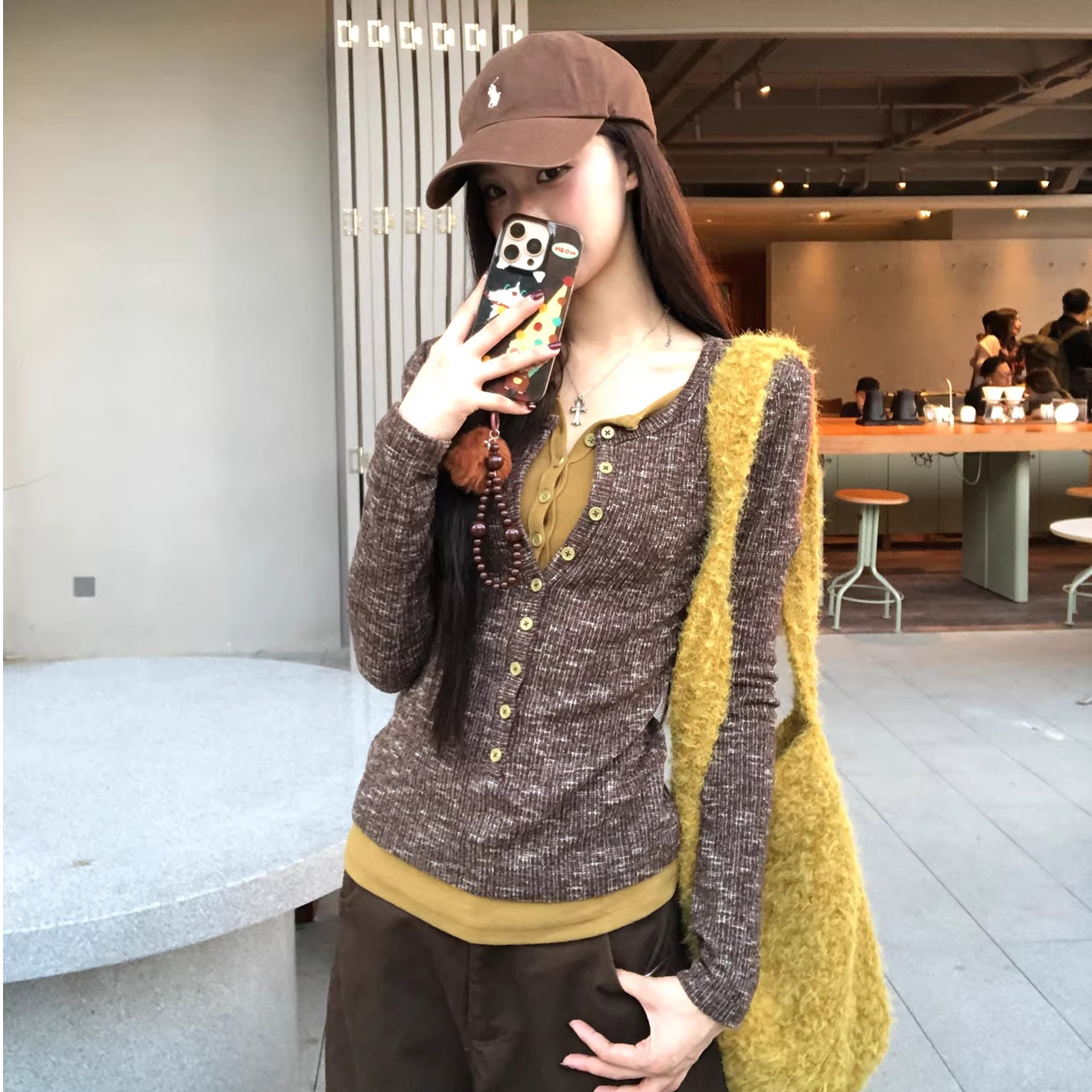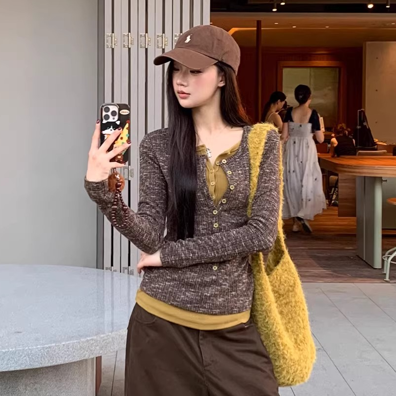 MY17213# 原版布螺纹竹节+人棉冬季新款复古风气质设计感撞色假两件女裝貨源服裝批發