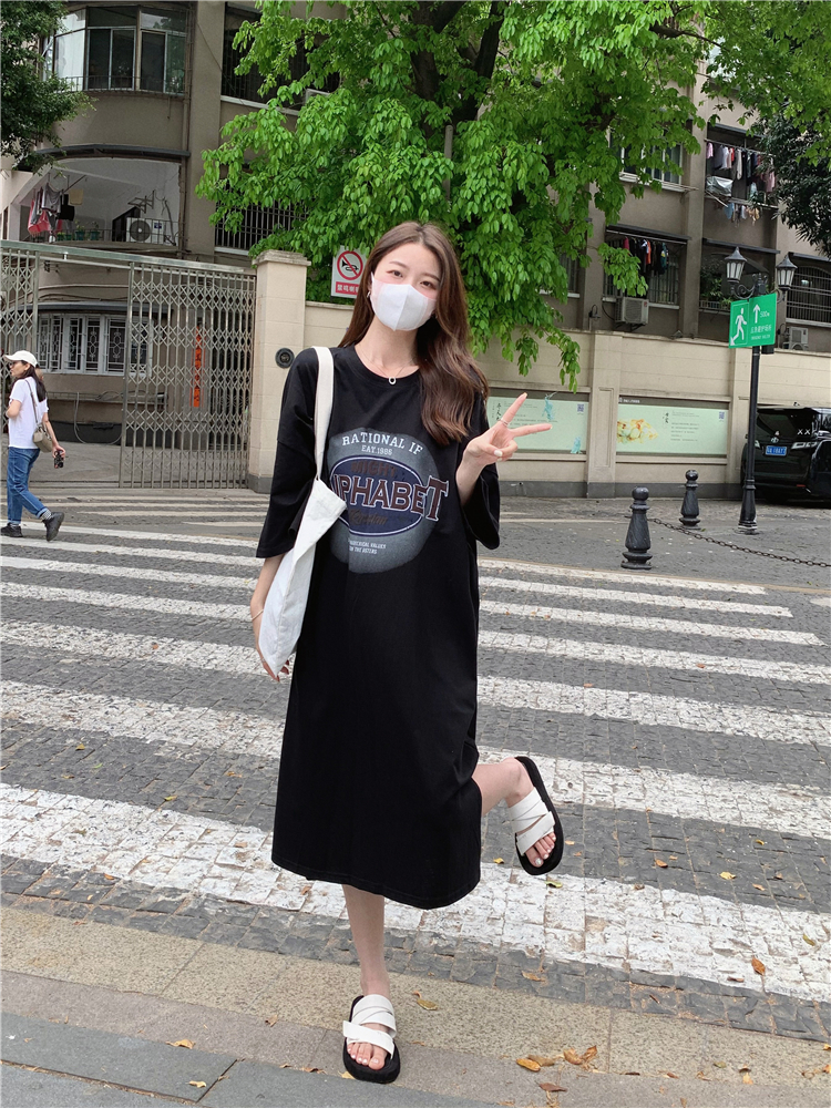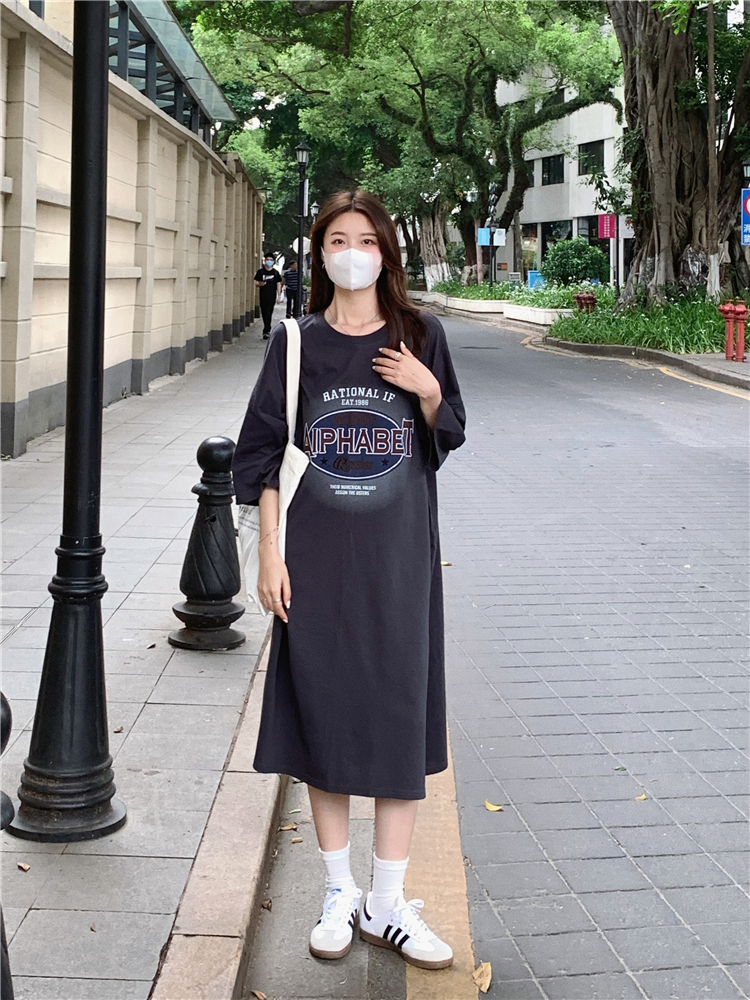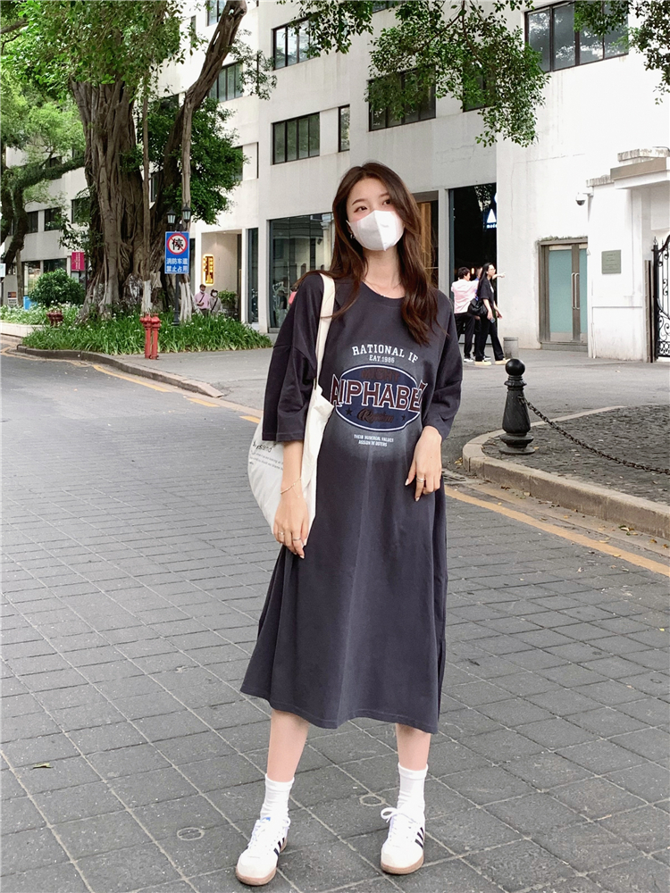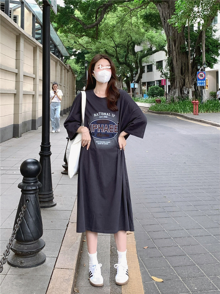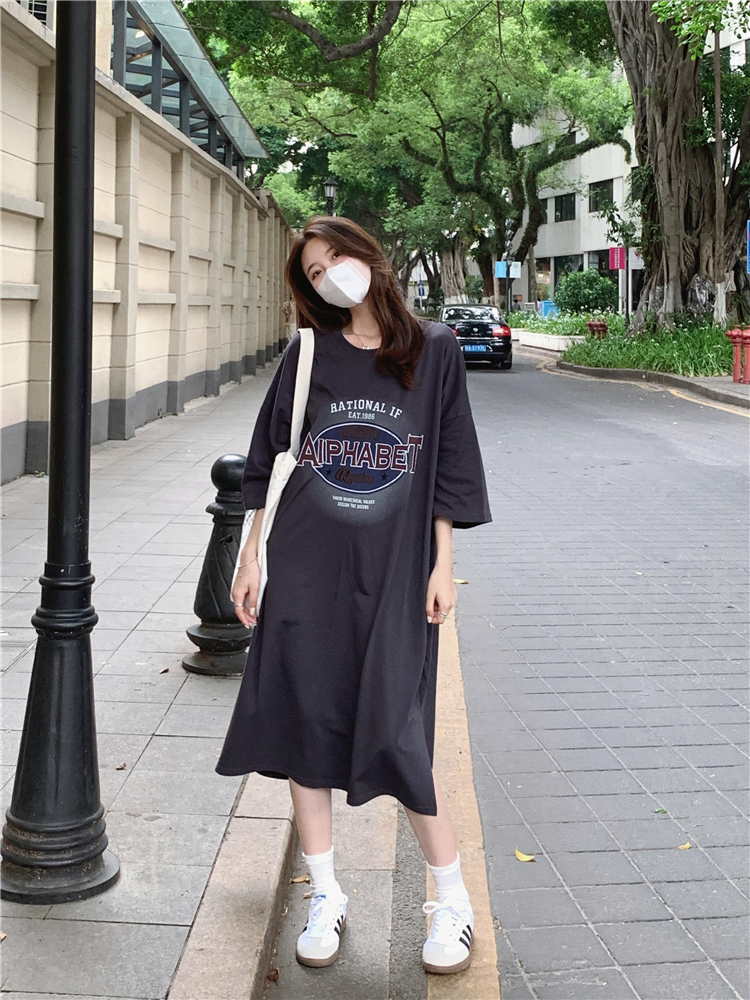 MY17233# 新款夏装T恤裙连衣裙时尚短袖宽松长款过膝孕妇裙子女裝貨源服裝批發