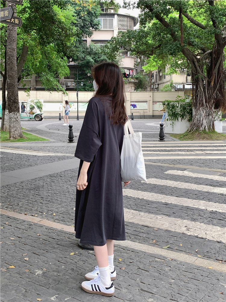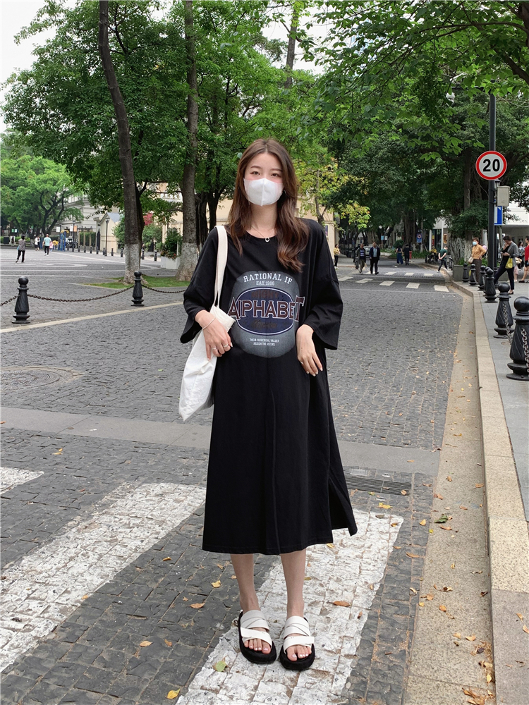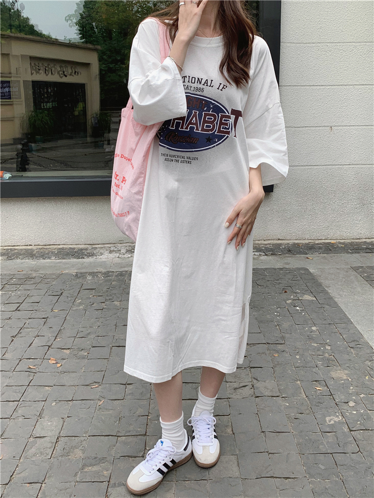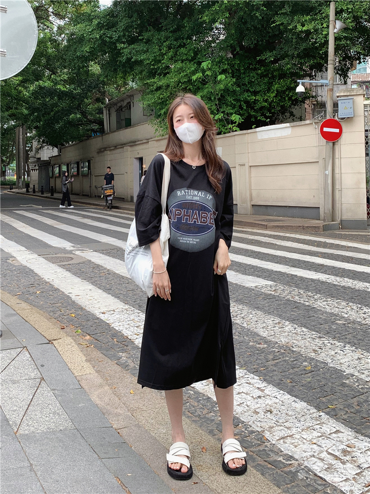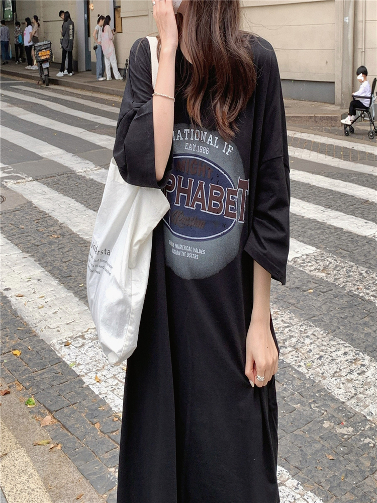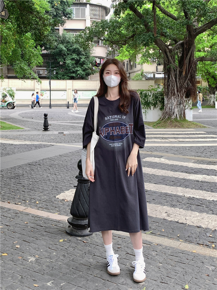 MY17233# 新款夏装T恤裙连衣裙时尚短袖宽松长款过膝孕妇裙子女裝貨源服裝批發
