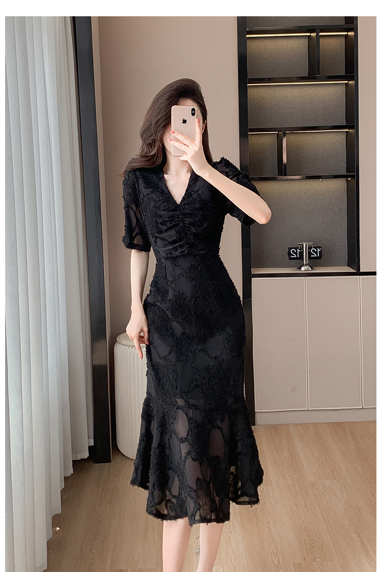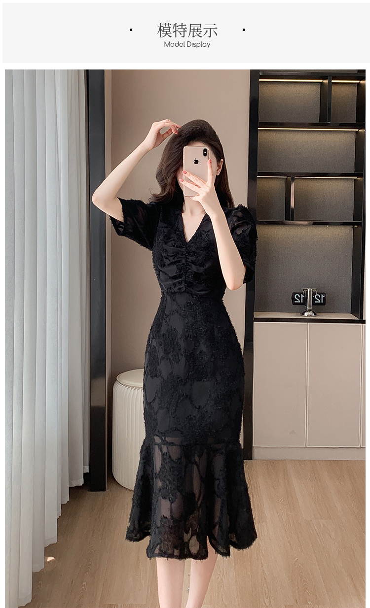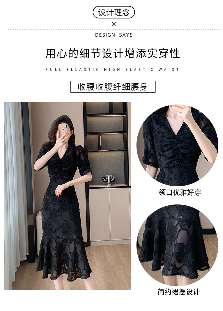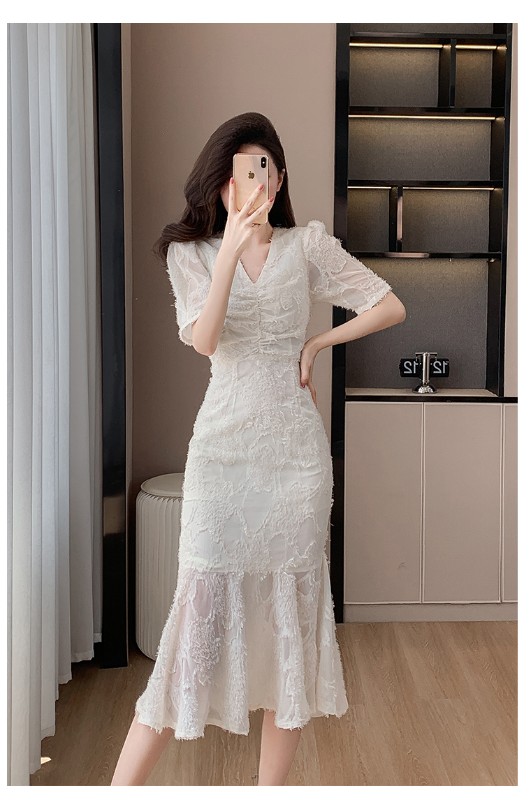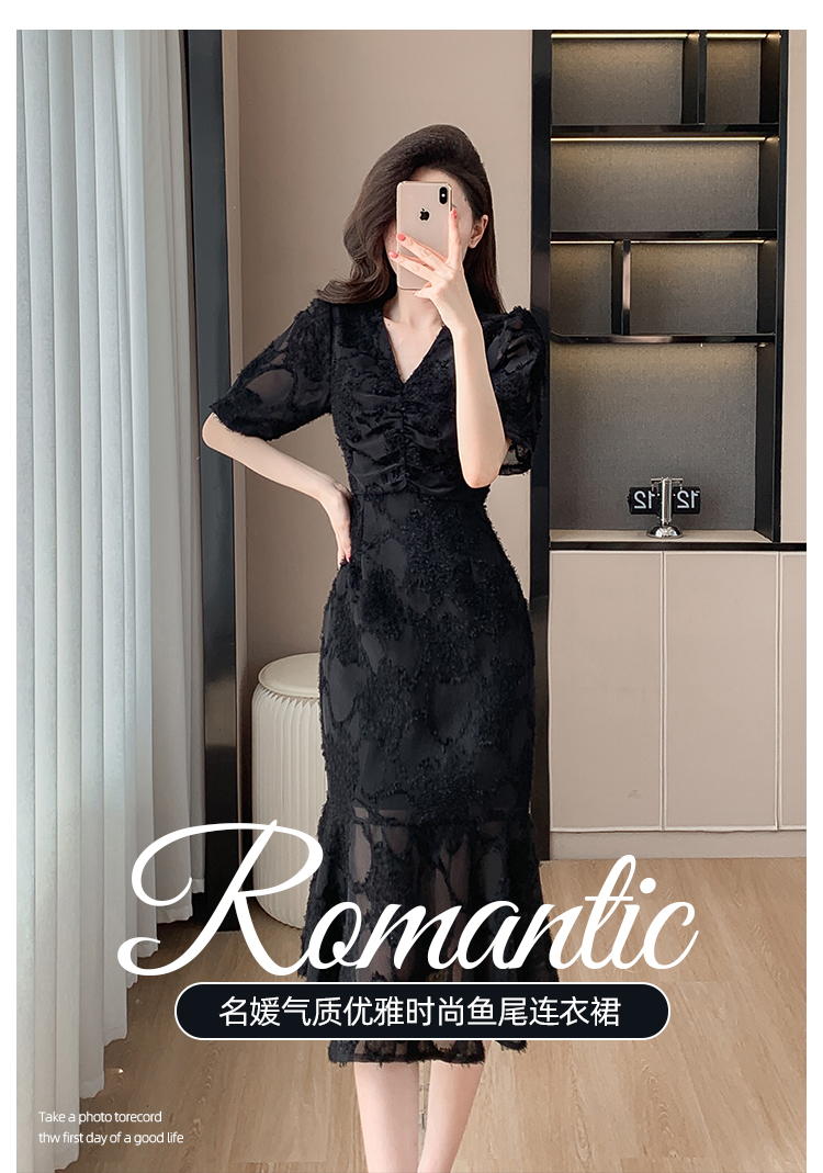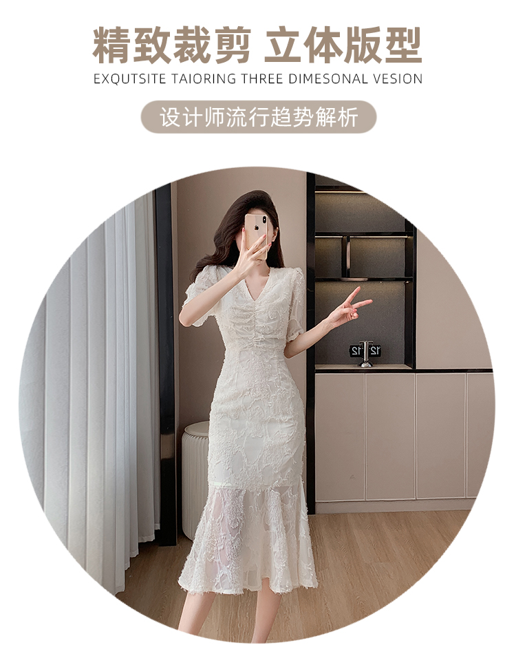 MY17307# 新款网红气质收腰蕾丝鱼尾裙御姐轻奢连衣裙长裙仙女裝貨源服裝批發