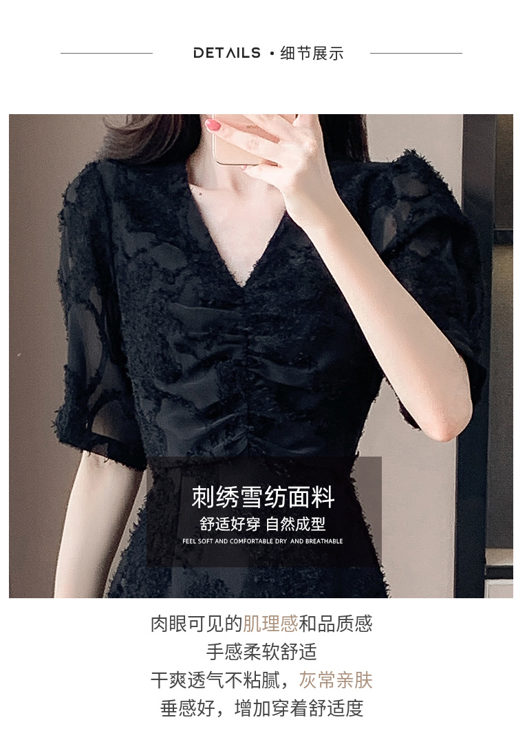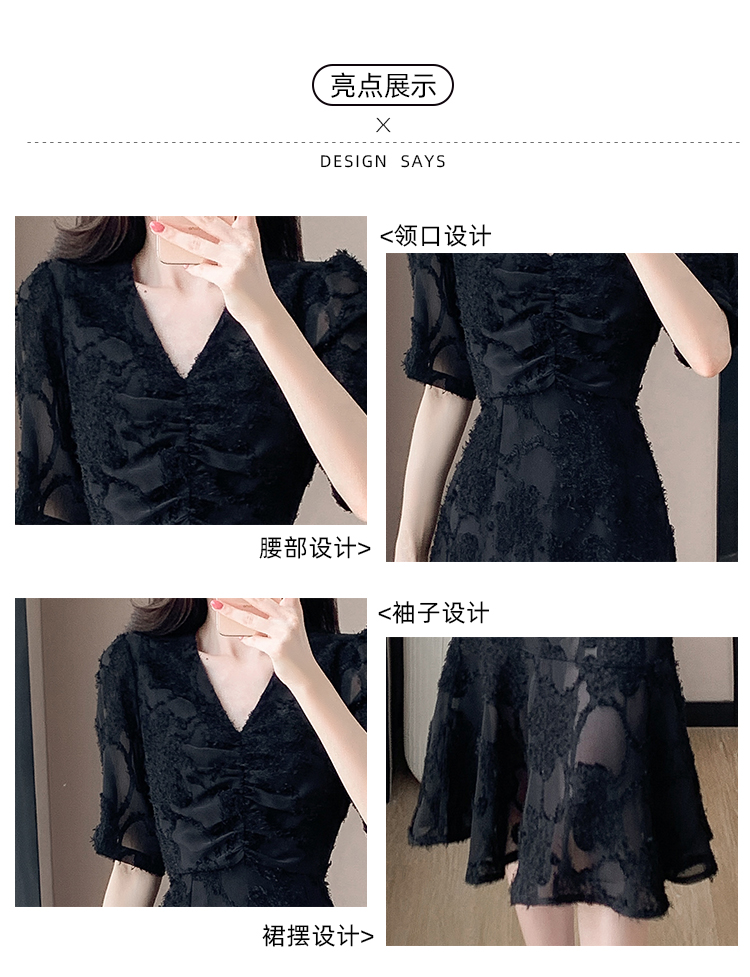 MY17314# 新款法式重工镂空钩花蕾丝收腰时尚短袖连衣裙女裝貨源服裝批...