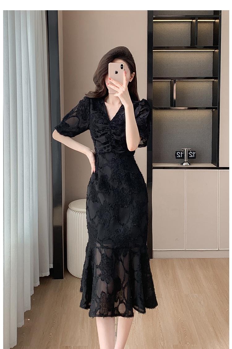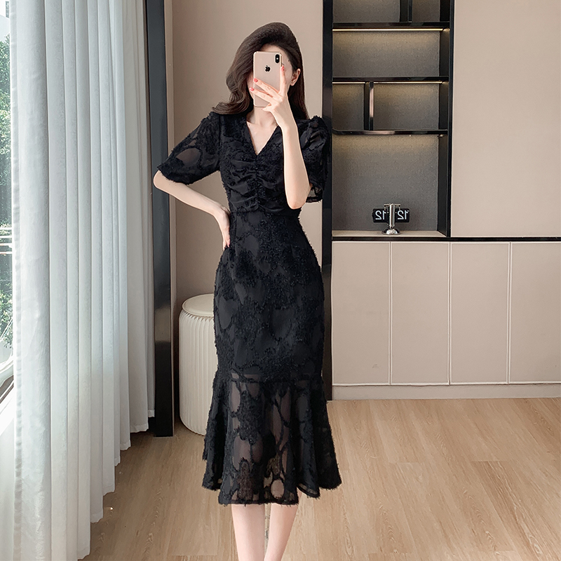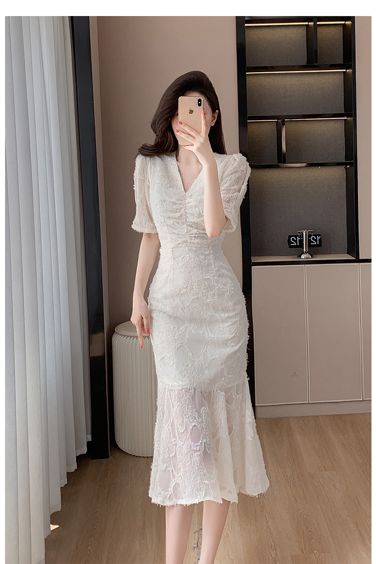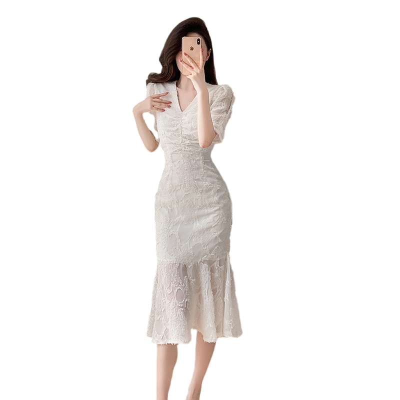 MY17310# 新款网红气质收腰蕾丝鱼尾裙御姐轻奢连衣裙长裙仙女裝貨源服裝批發