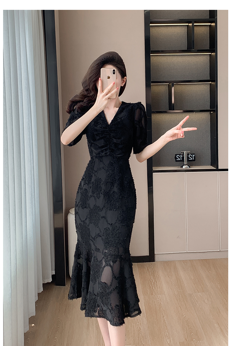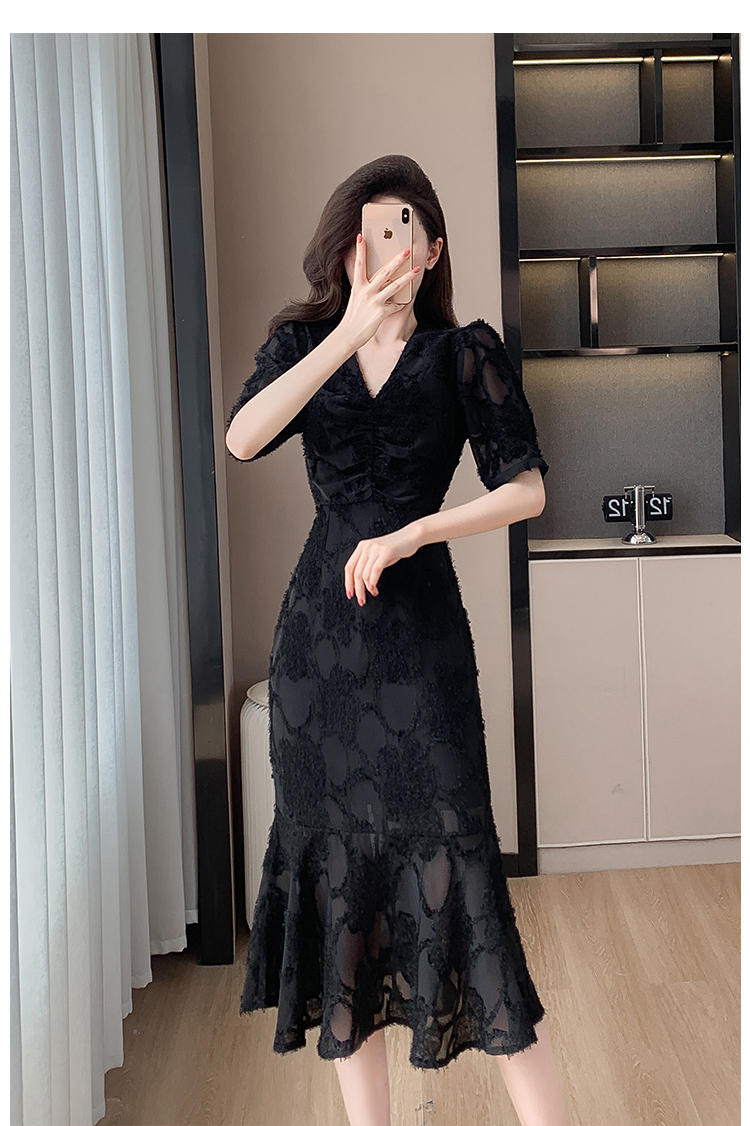 MY17307# 新款网红气质收腰蕾丝鱼尾裙御姐轻奢连衣裙长裙仙女裝貨源服...