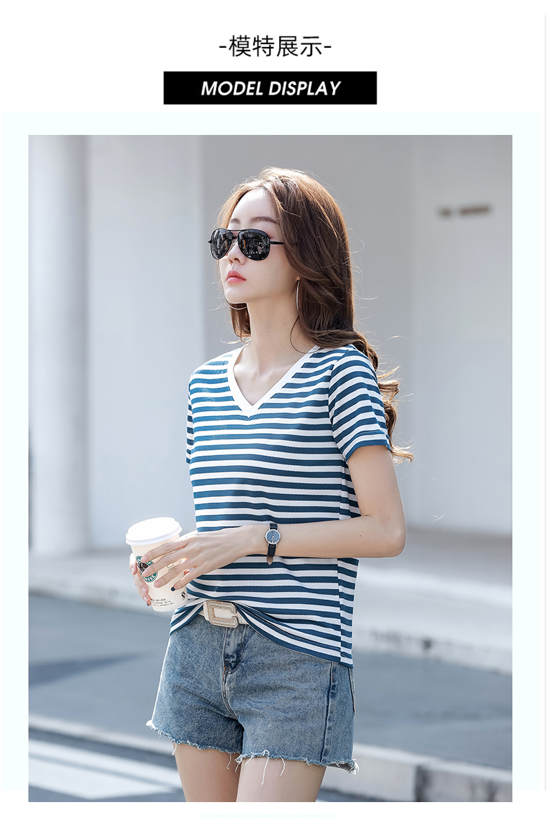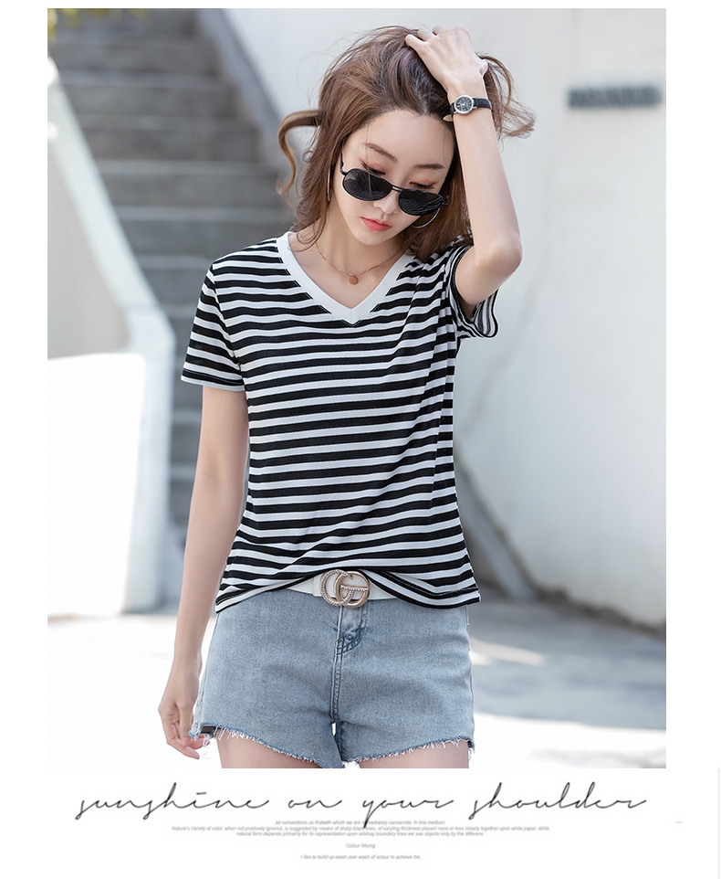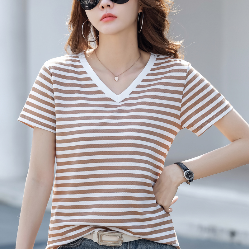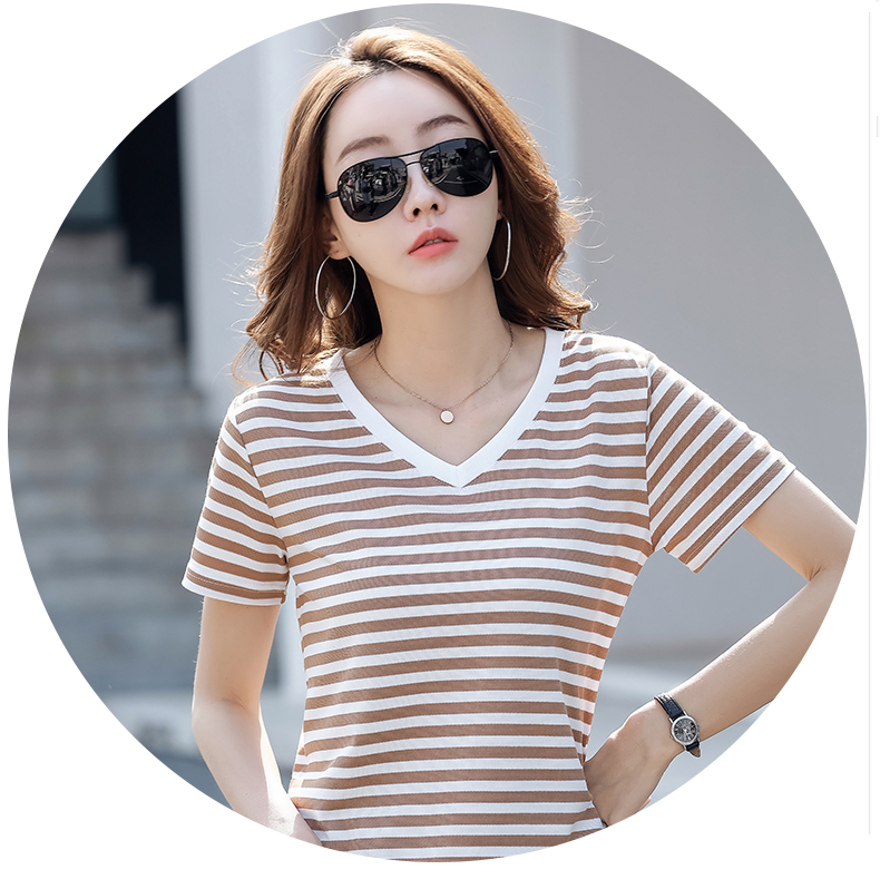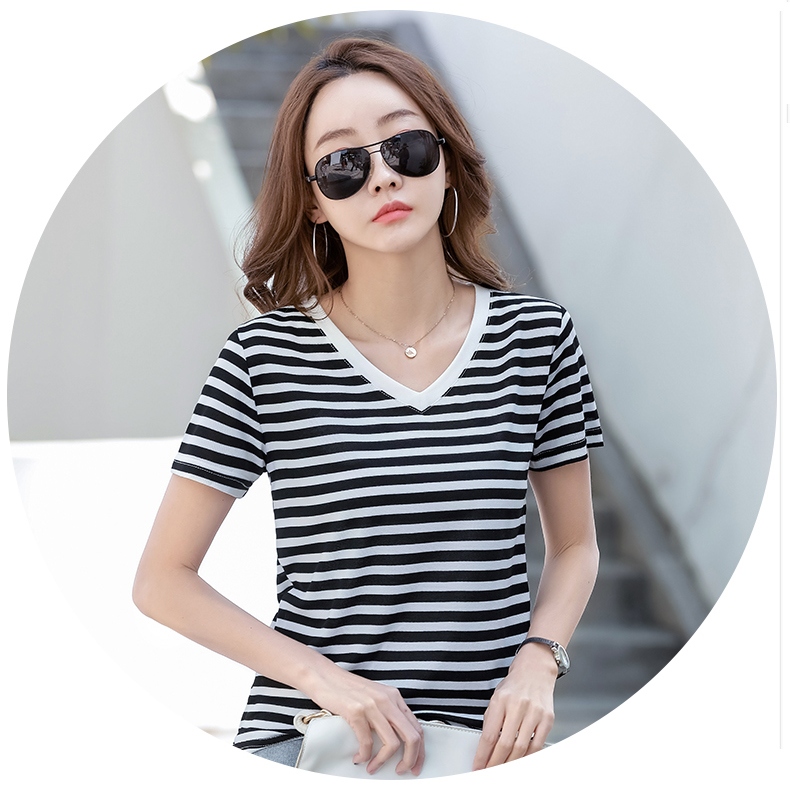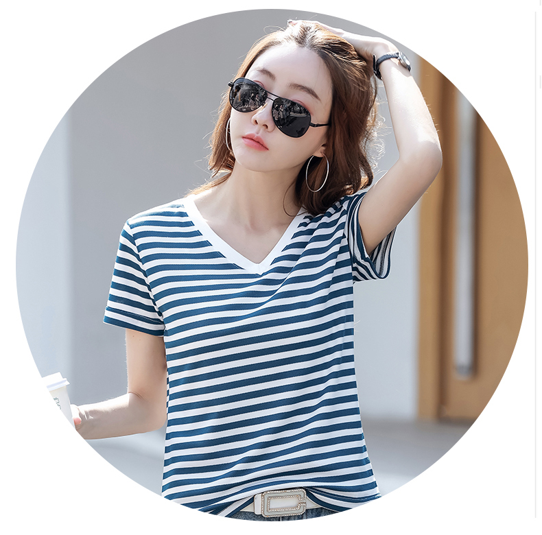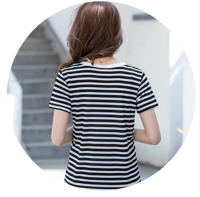 BY9197#珠地棉透气短袖t恤女夏季新款韩版宽松条纹百搭上衣半袖体恤