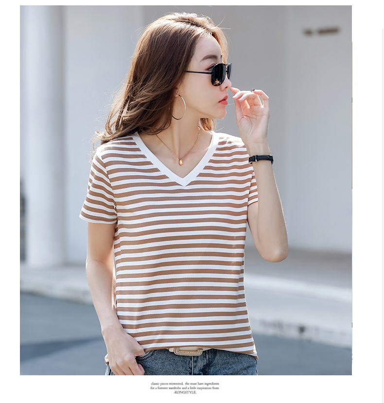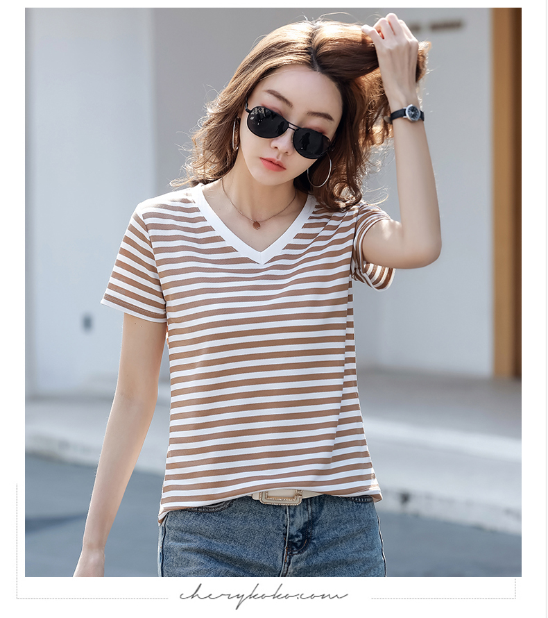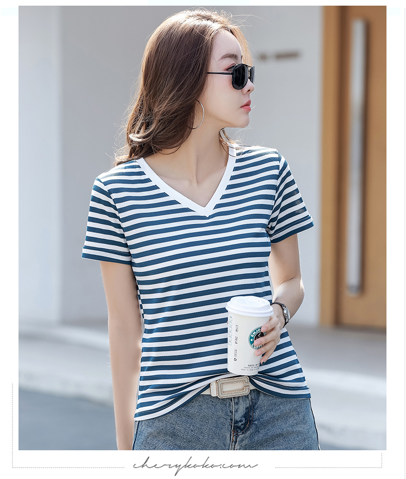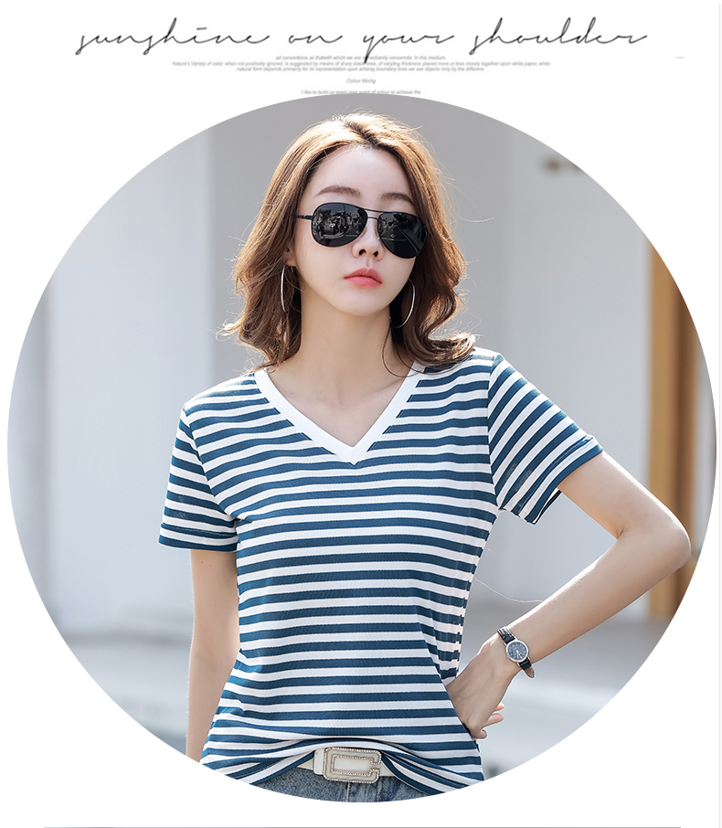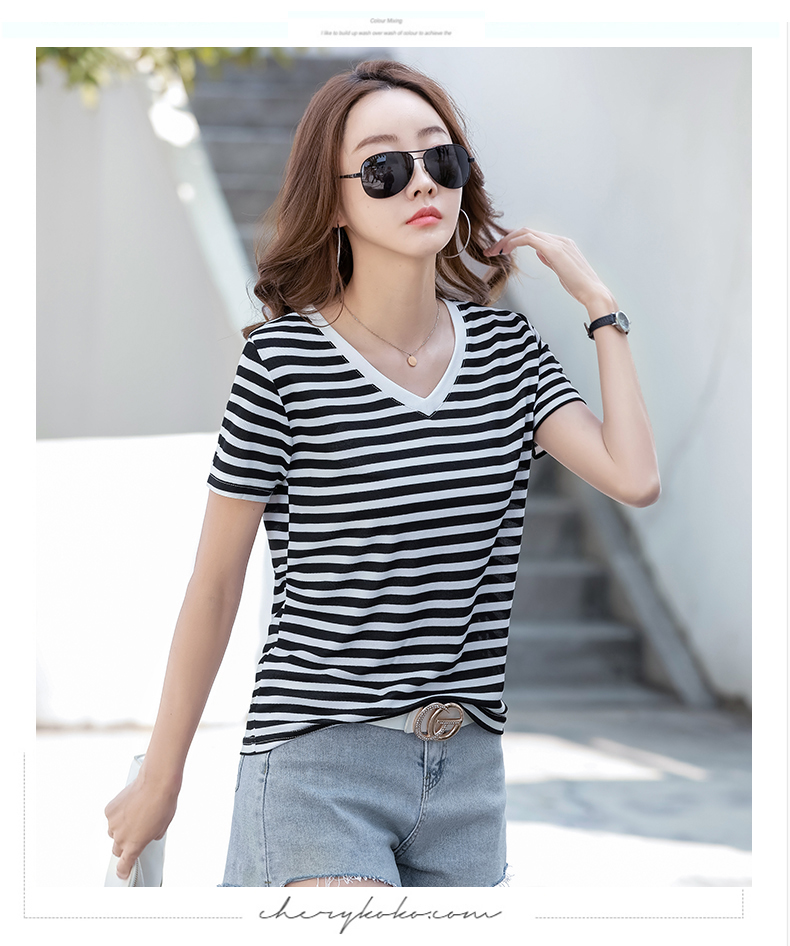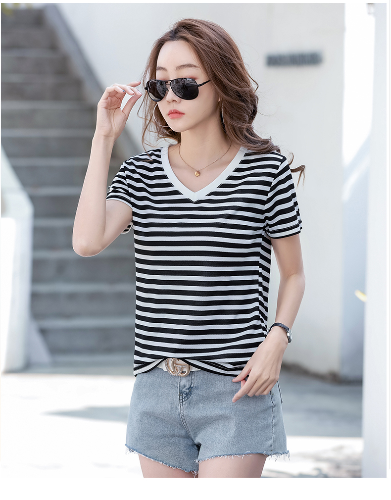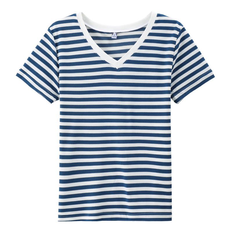 BY9197#珠地棉透气短袖t恤女夏季新款韩版宽松条纹百搭上衣半袖体恤
