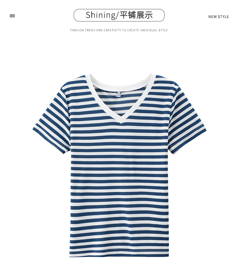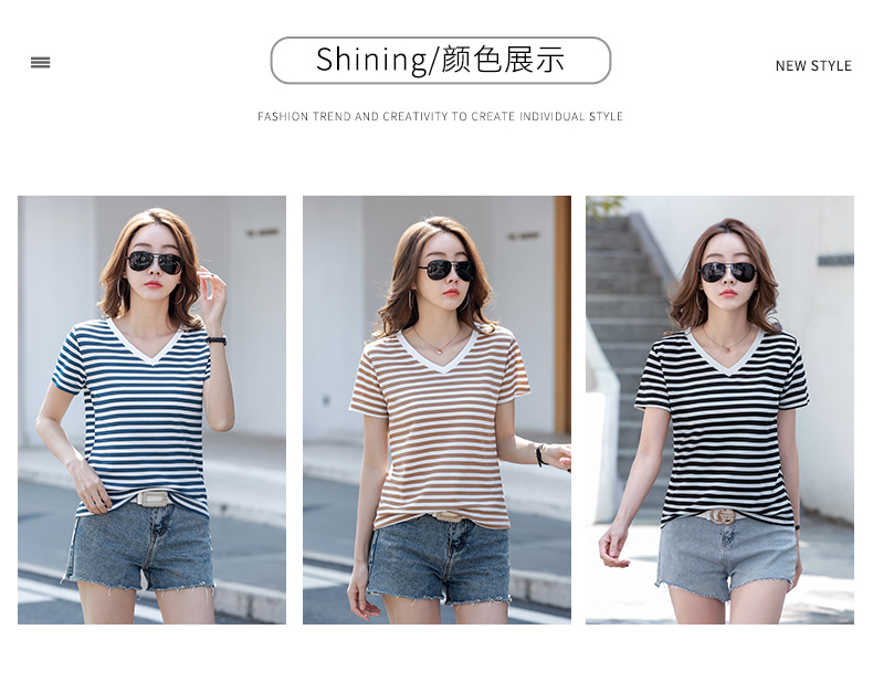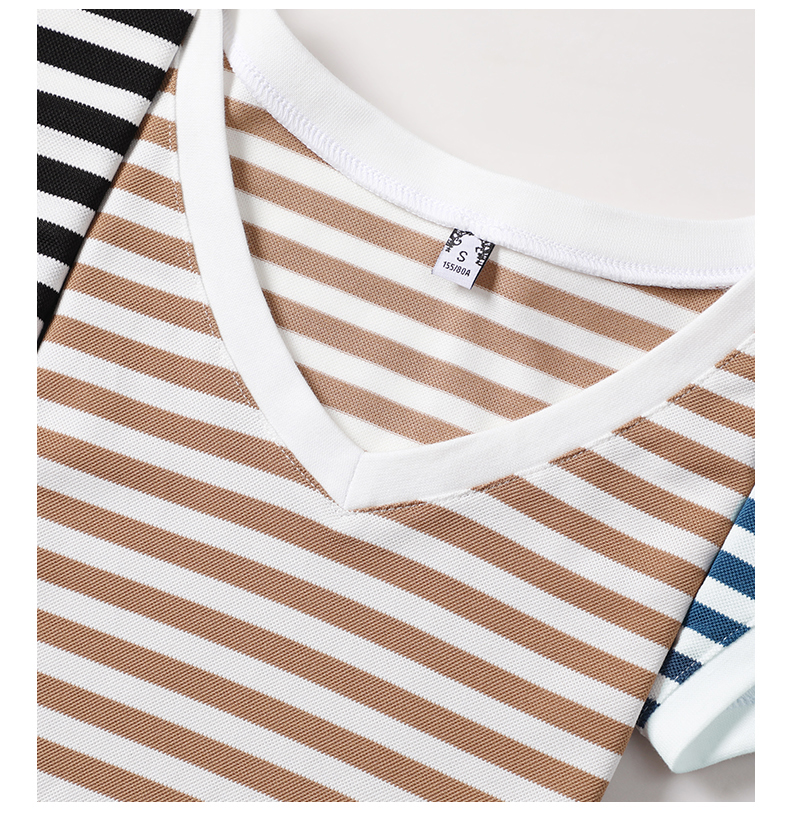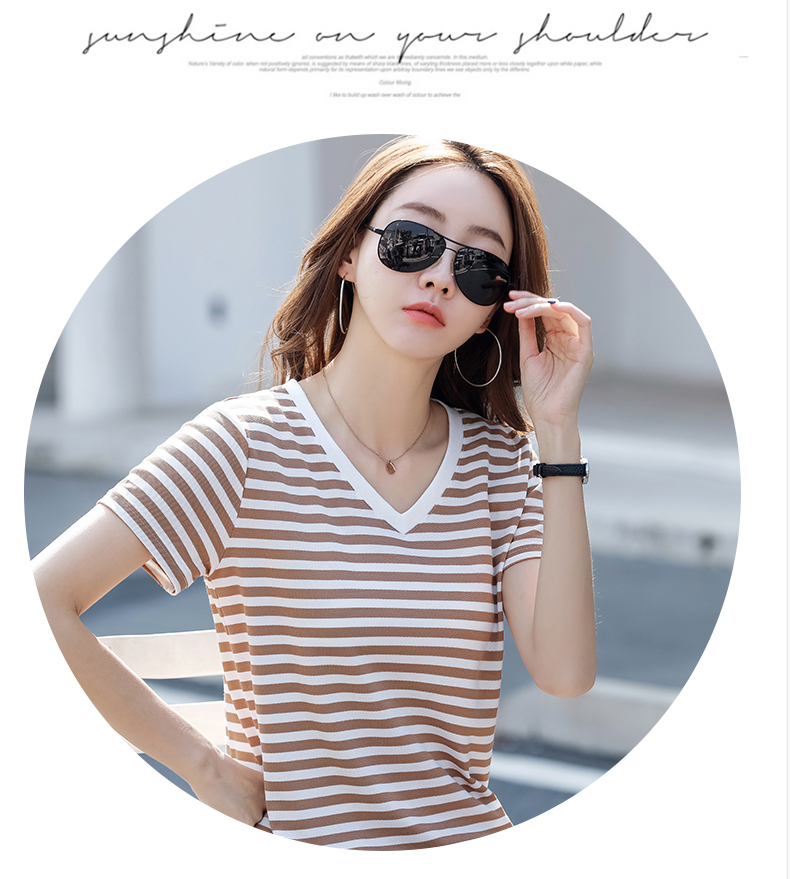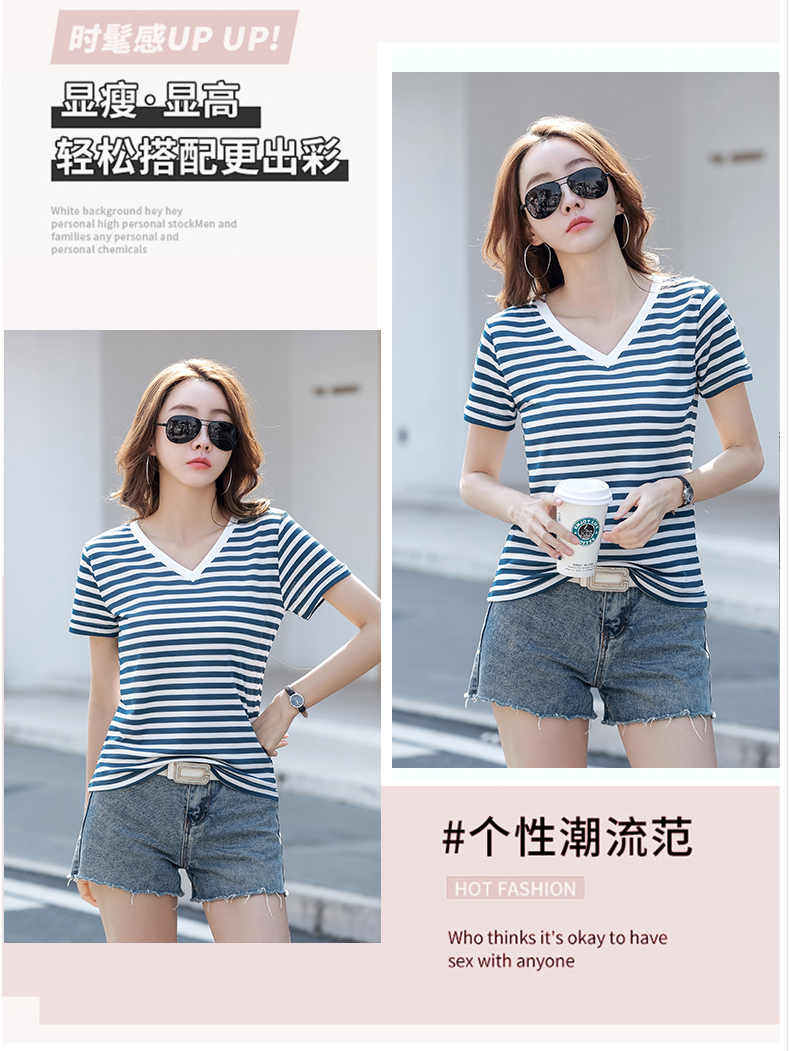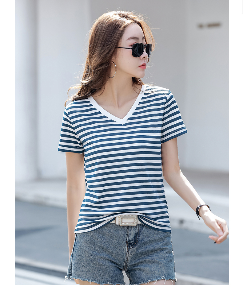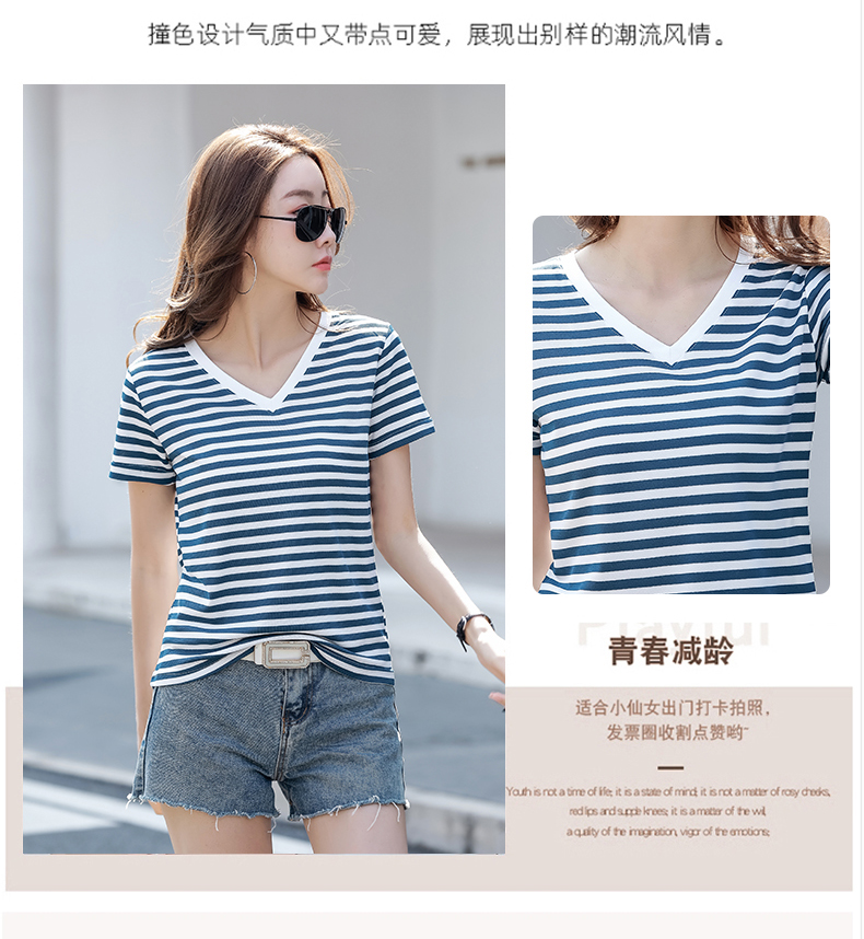 BY9197#珠地棉透气短袖t恤女夏季新款韩版宽松条纹百搭上衣半袖体恤