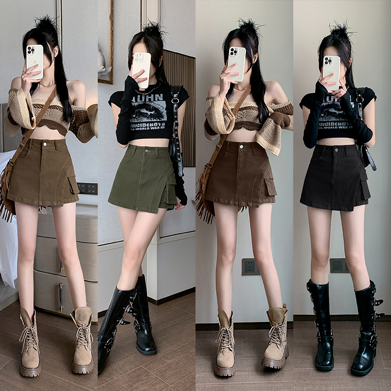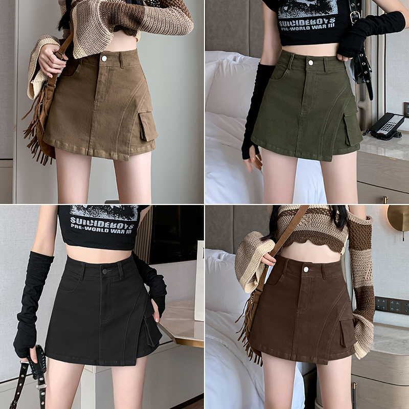 RY24# 甜酷辣妹 军工装 高腰短裙弹力A字半身裙 裤裙