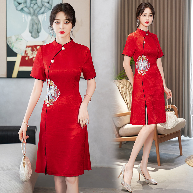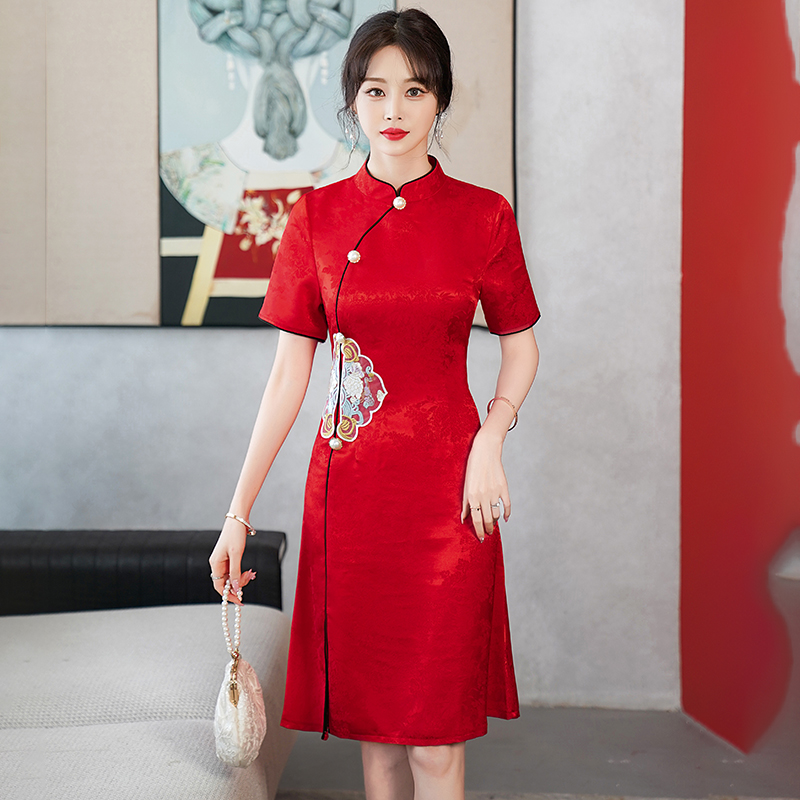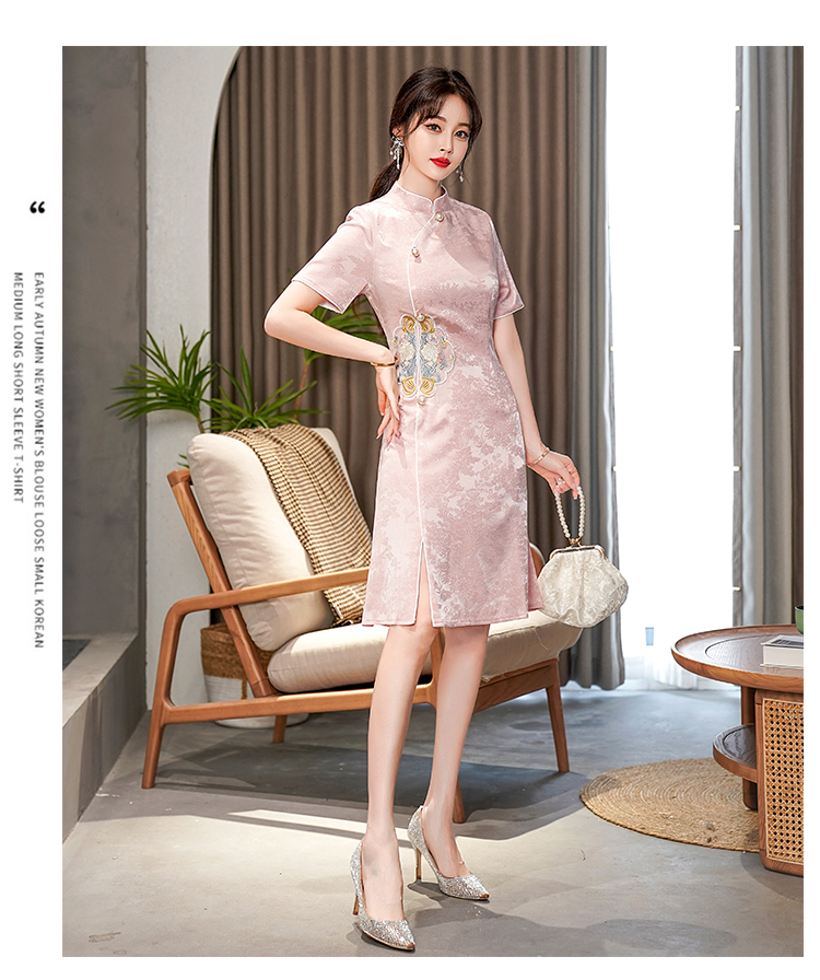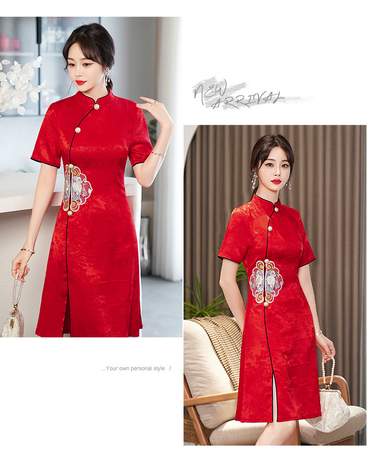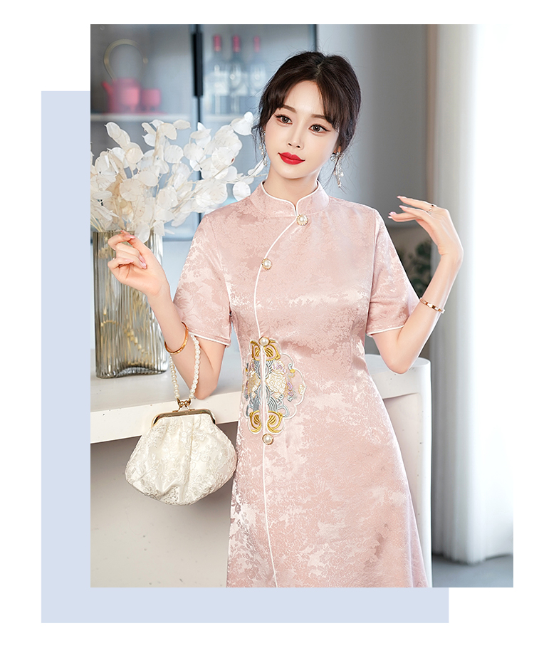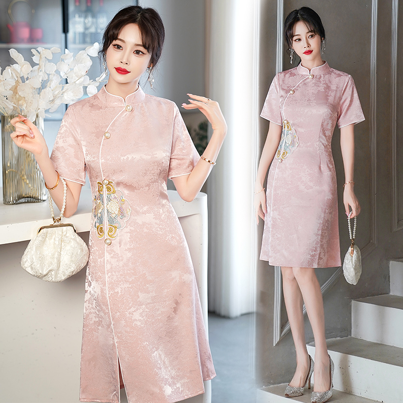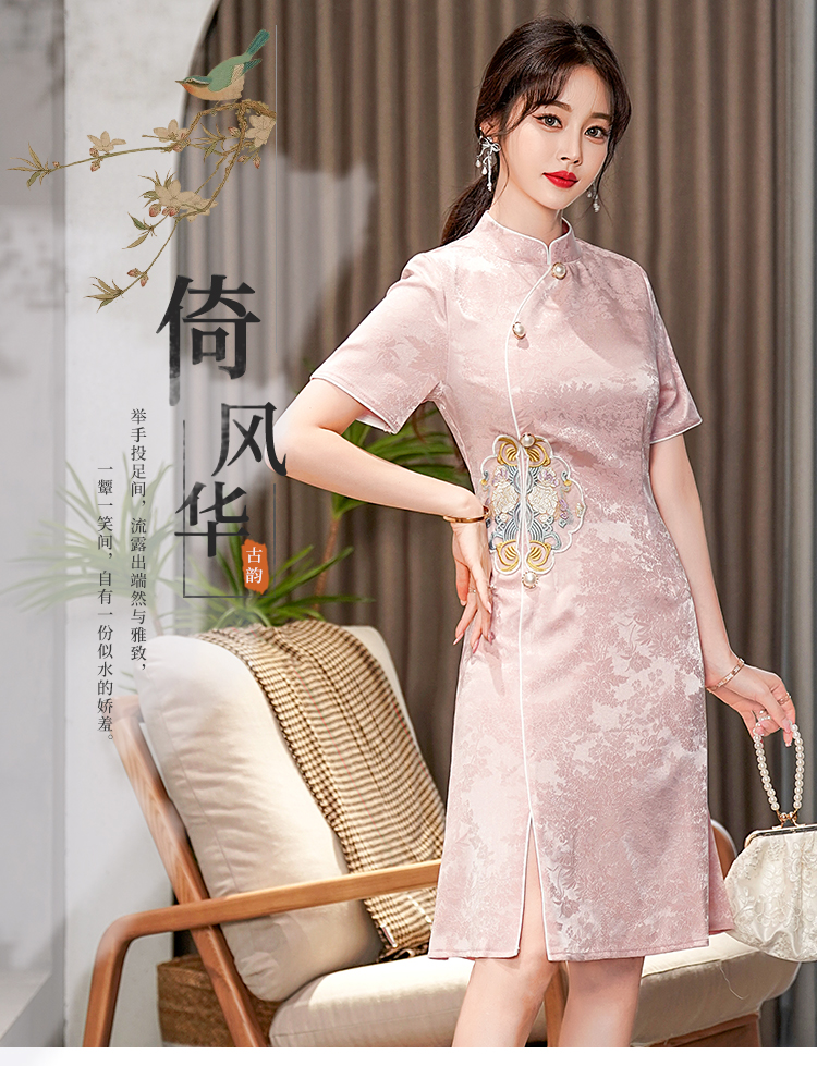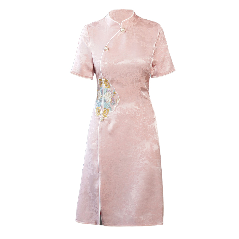 RY201# 实拍新中式旗袍夏季国风刺绣斜襟气质高端日常可穿旗袍连衣裙
