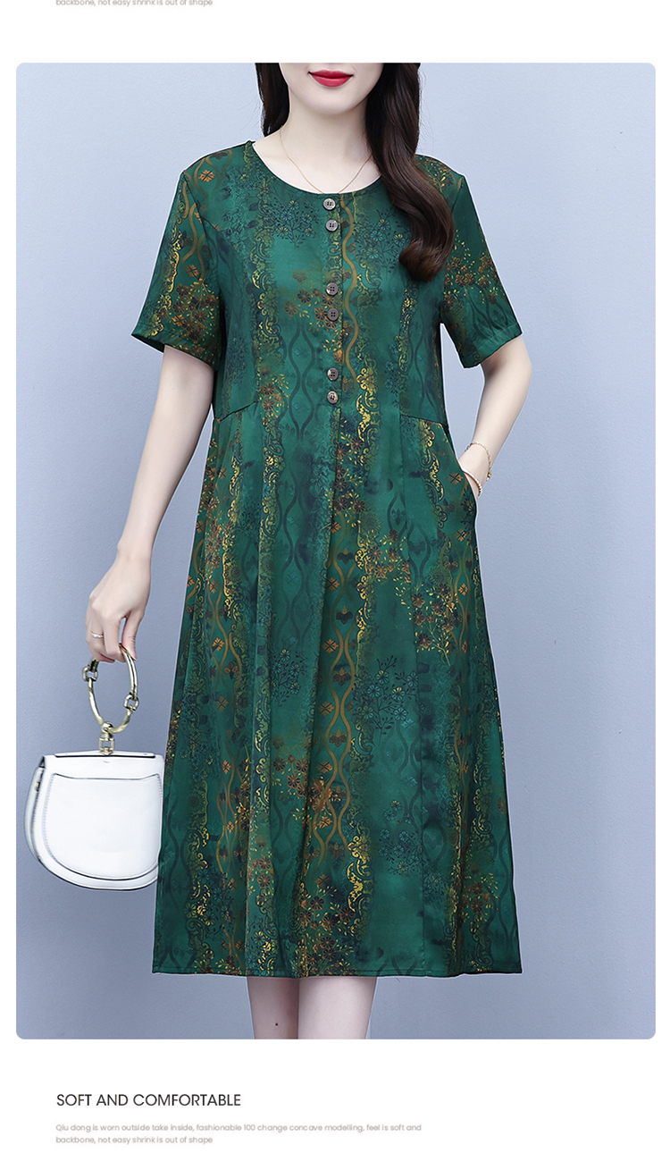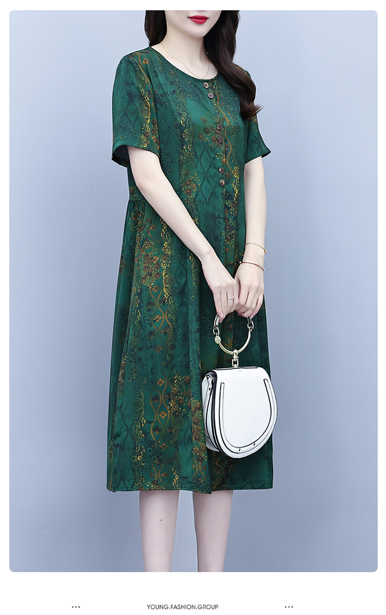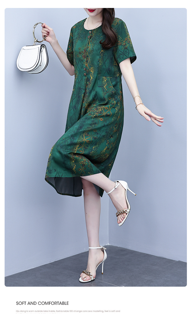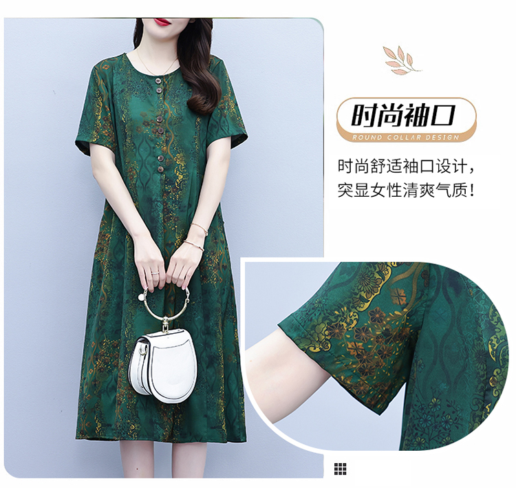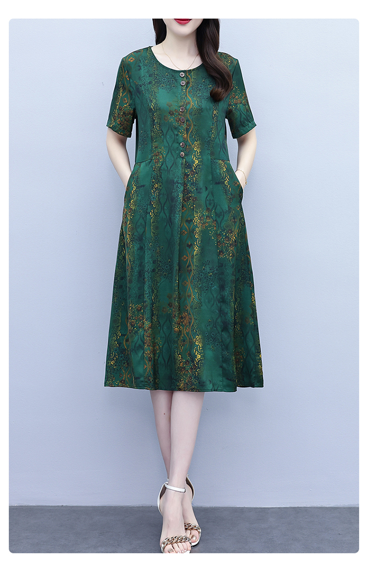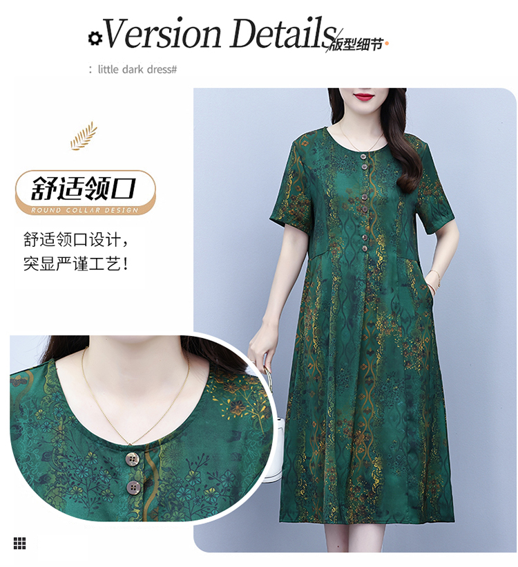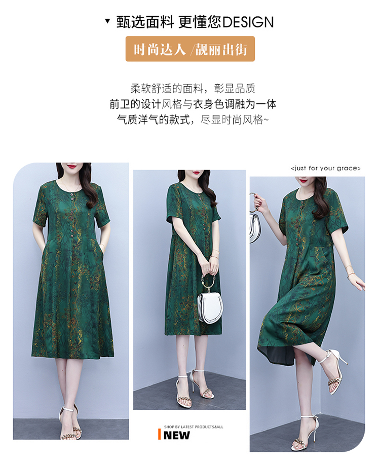 RY208# 高端大气真丝桑蚕丝连衣裙女夏季新款遮肚子减龄显瘦中年妈妈裙子