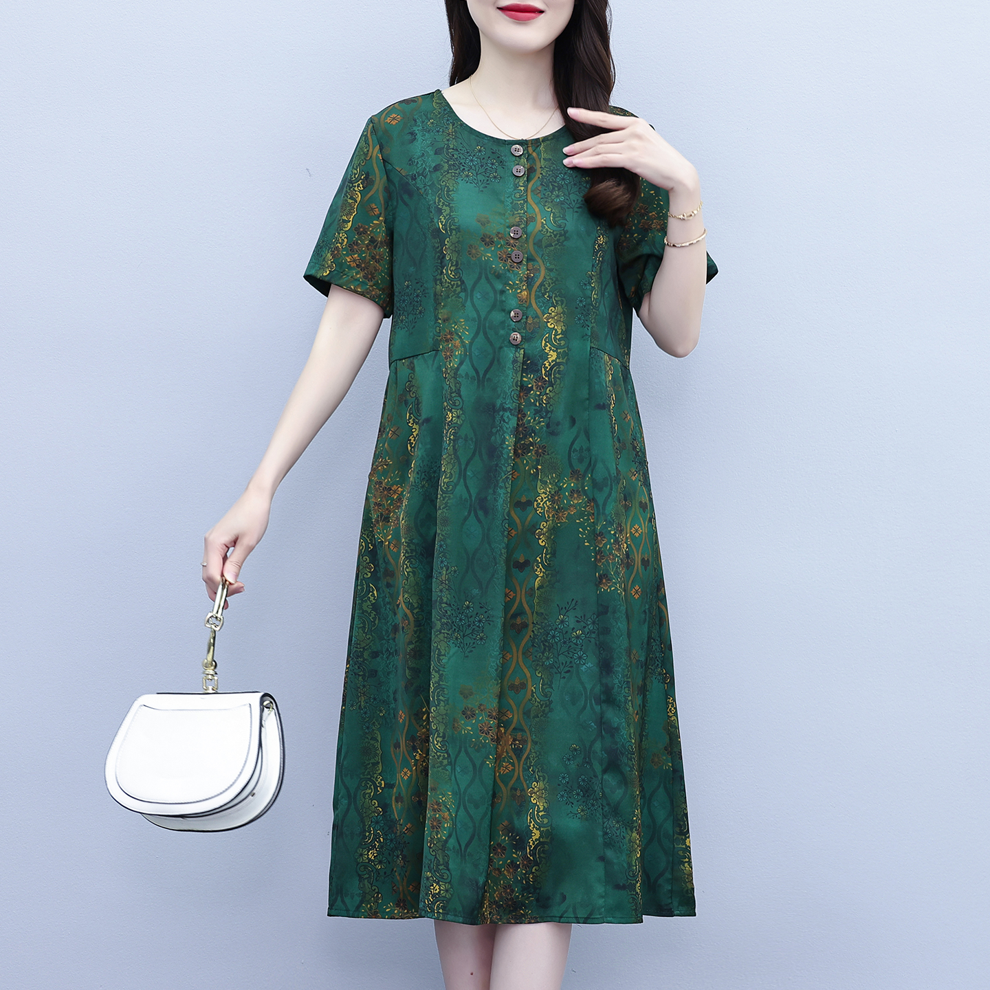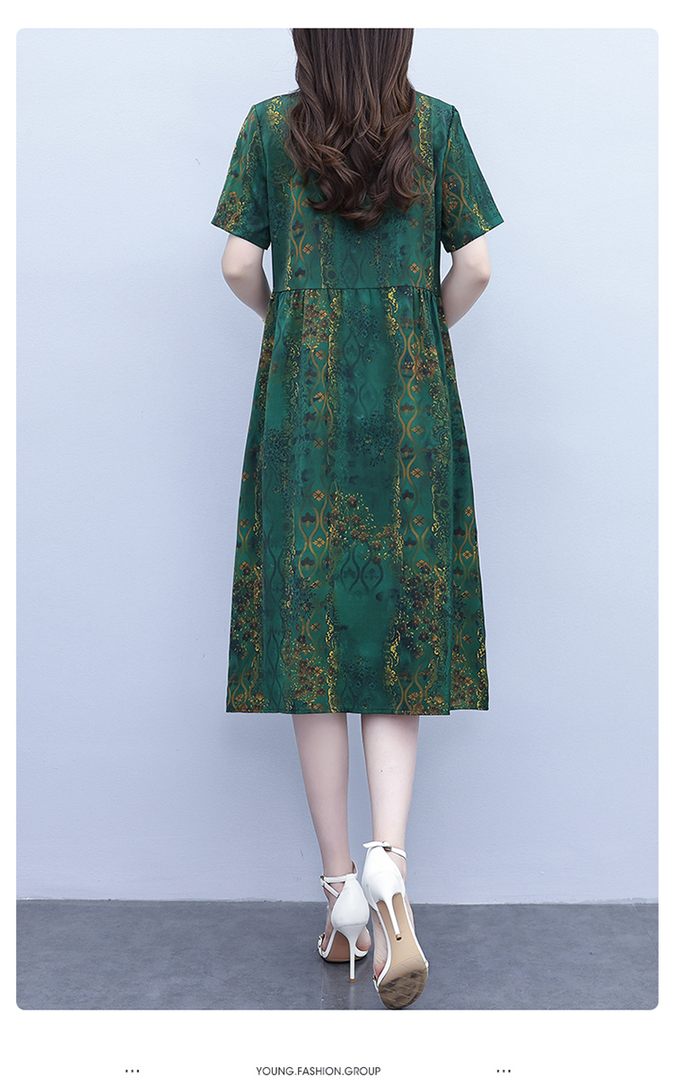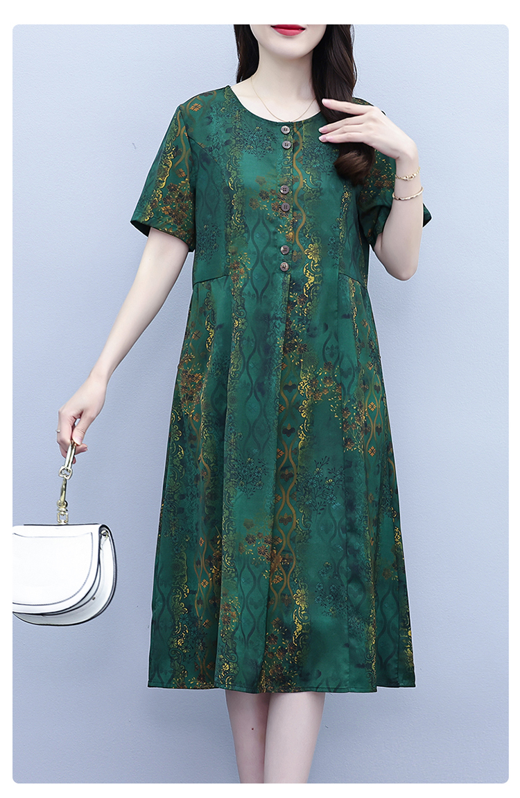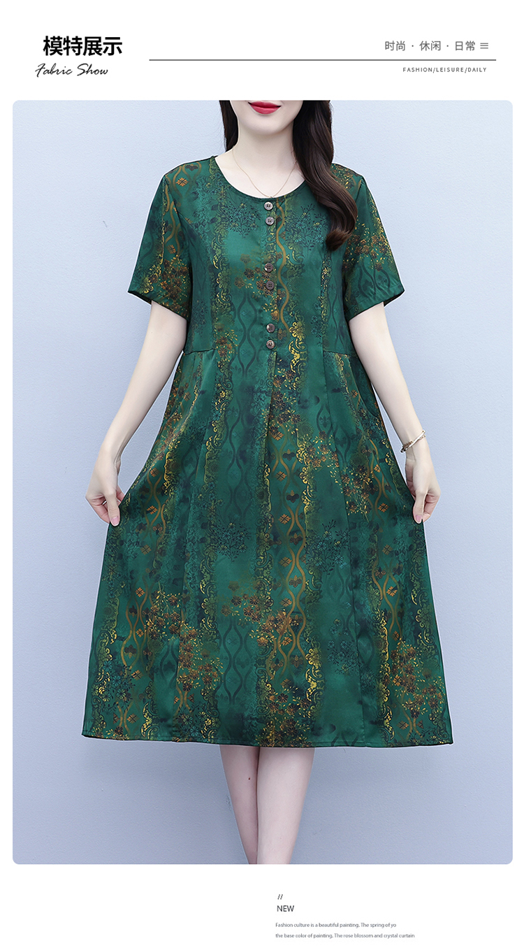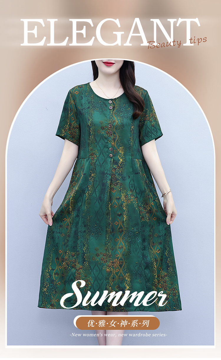 RY208# 高端大气真丝桑蚕丝连衣裙女夏季新款遮肚子减龄显瘦中年妈妈裙子