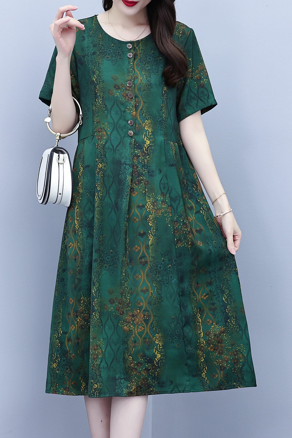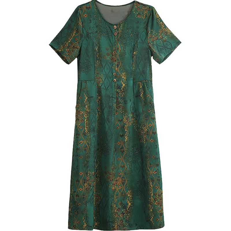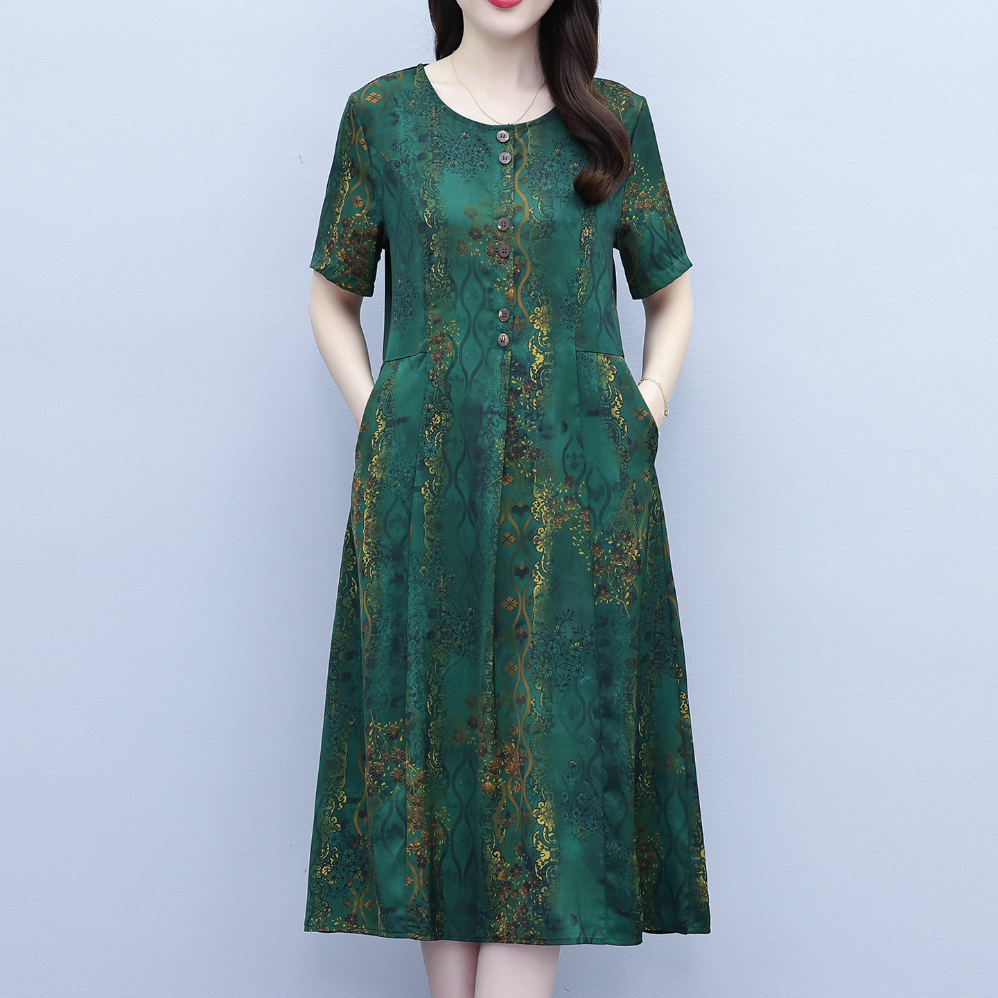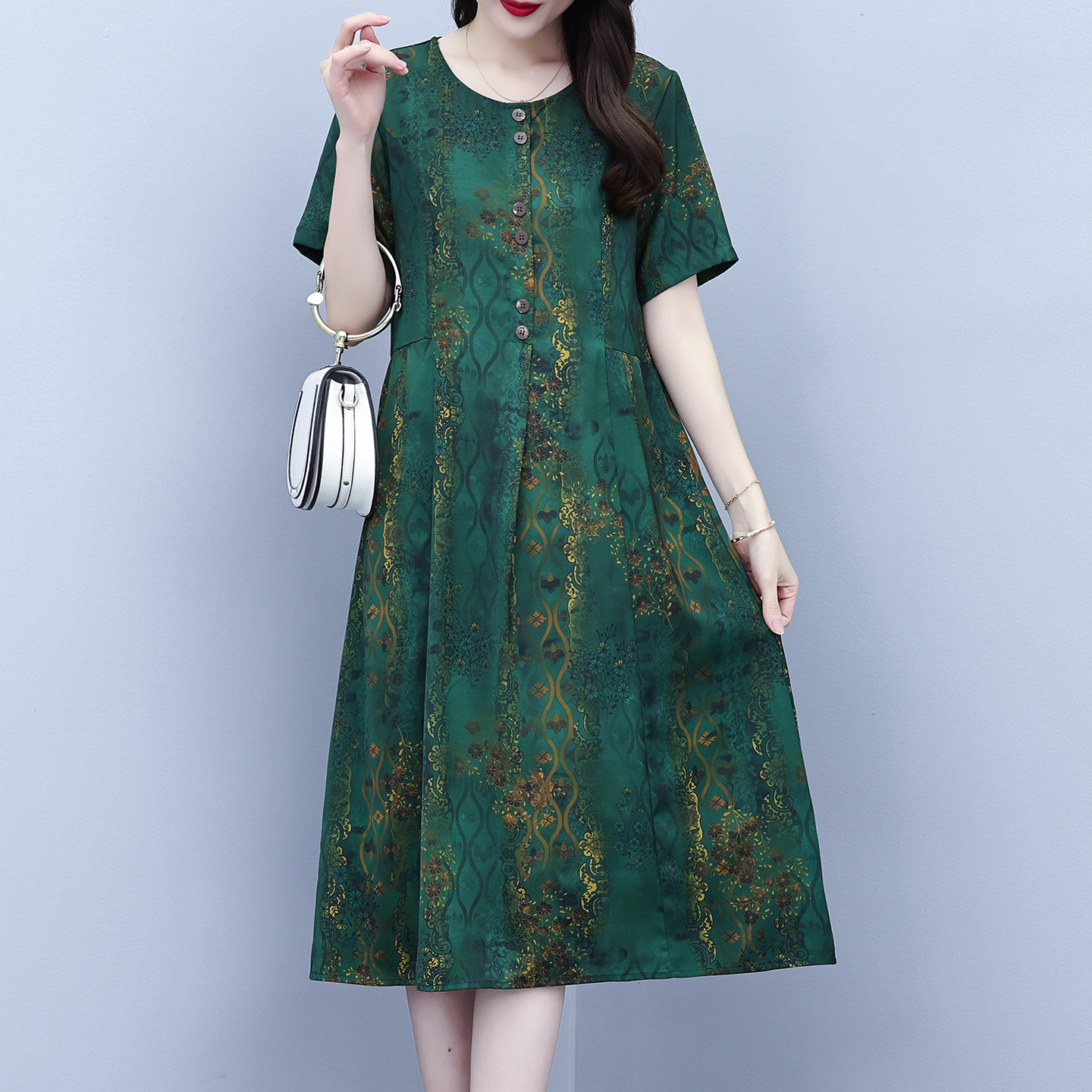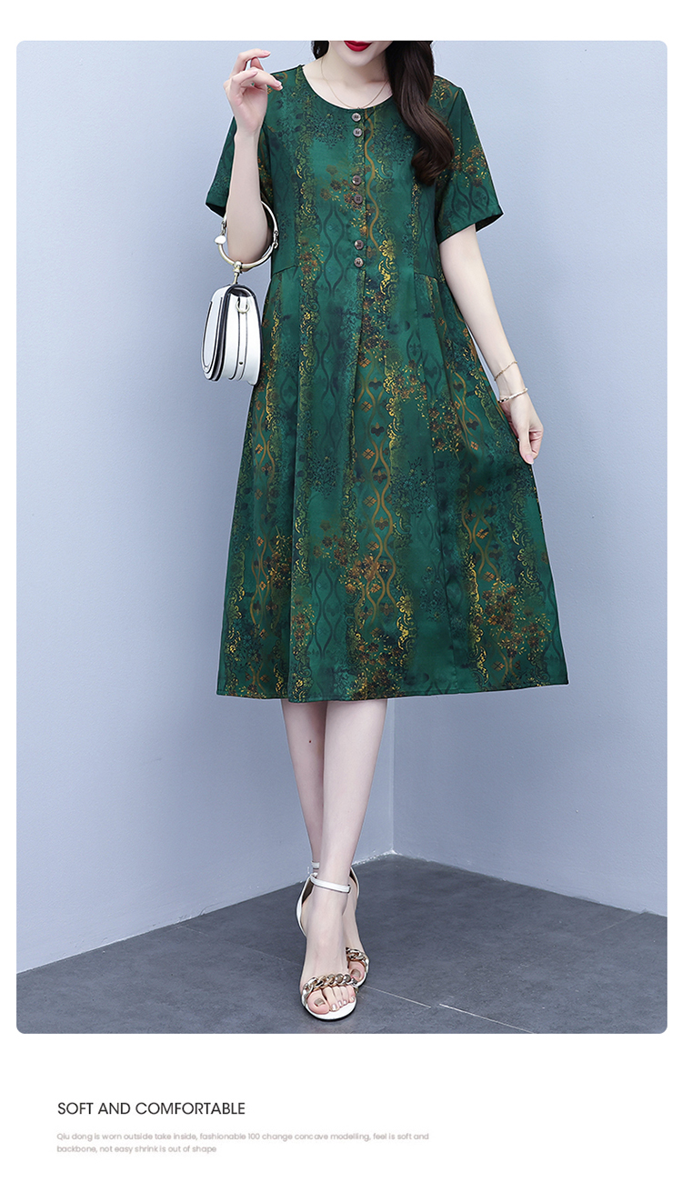 RY208# 高端大气真丝桑蚕丝连衣裙女夏季新款遮肚子减龄显瘦中年妈妈裙子