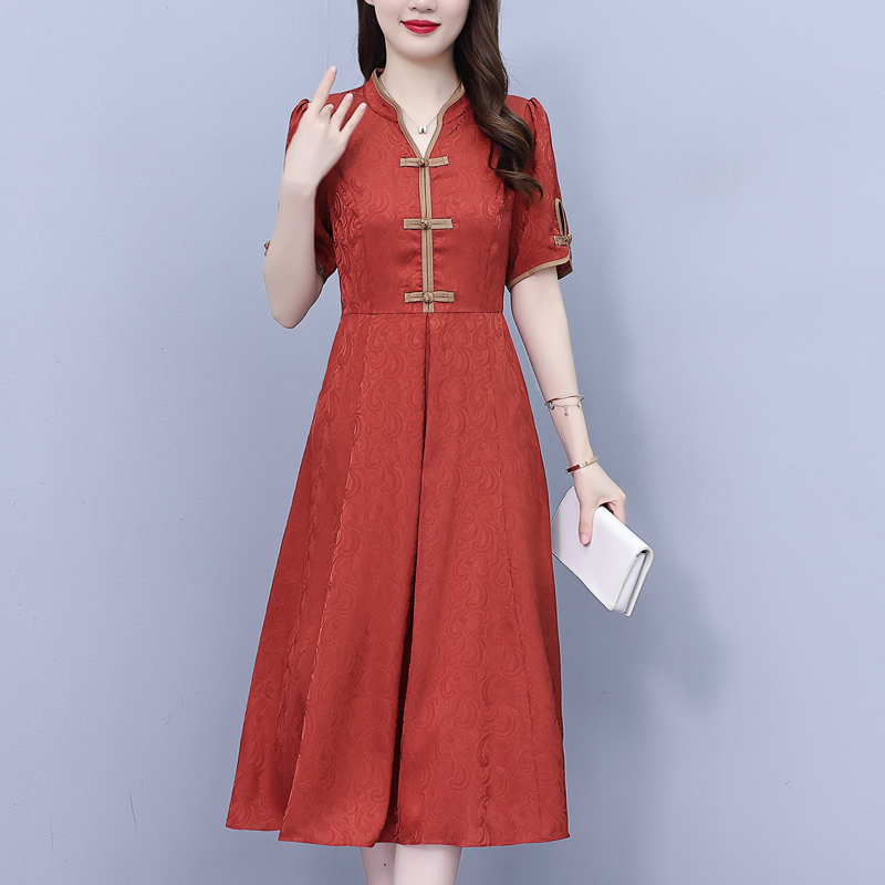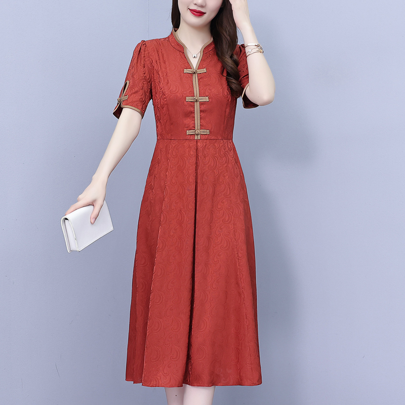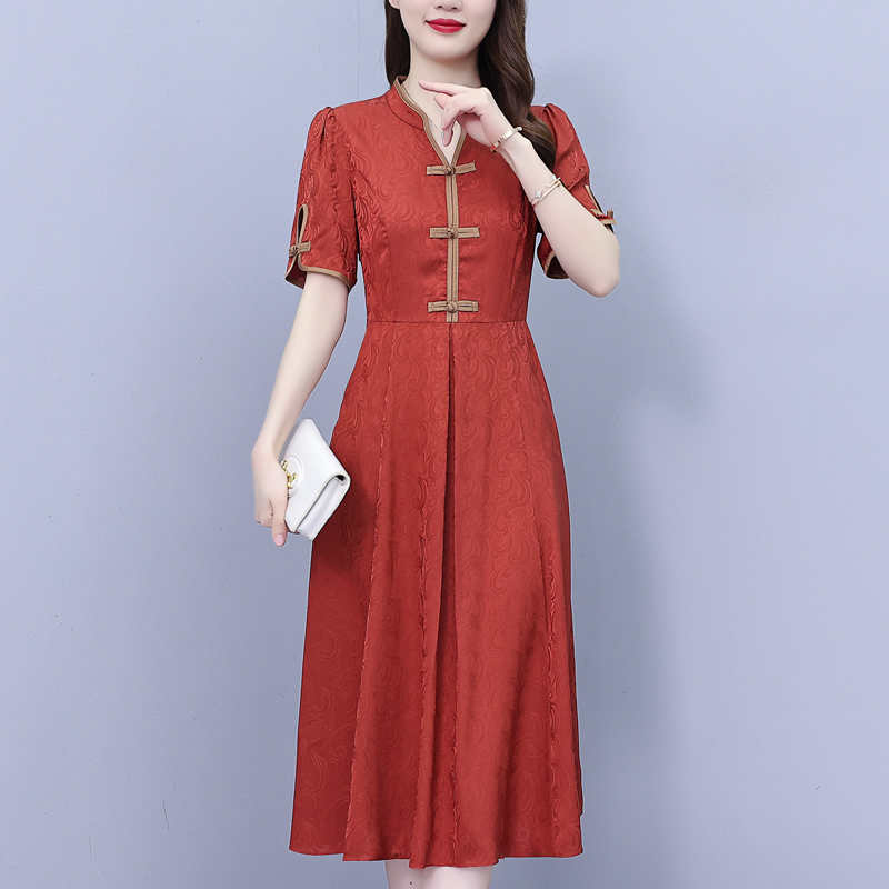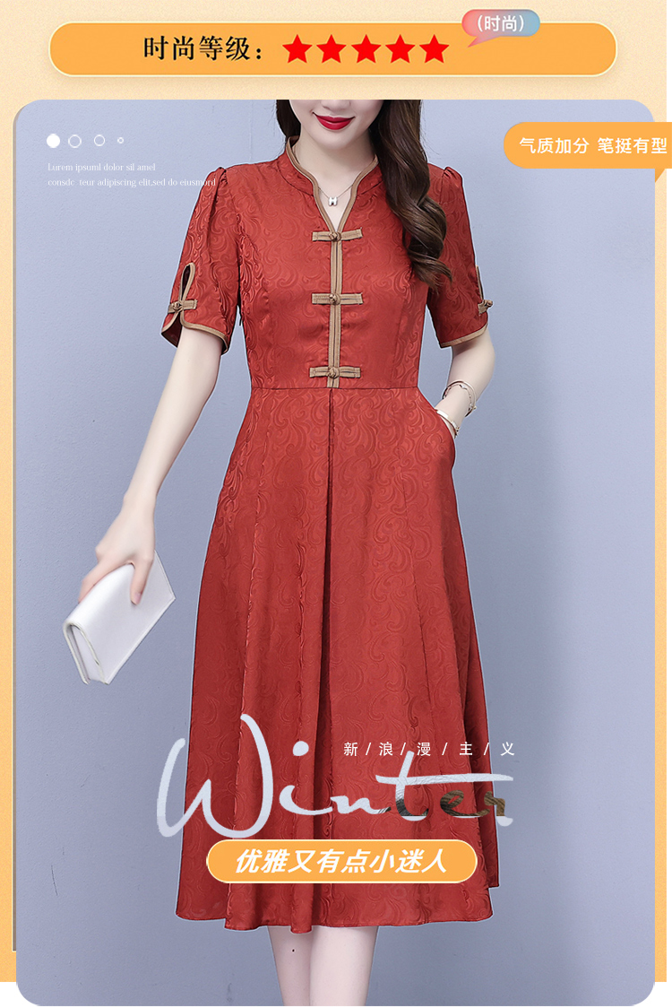 RY210# 真丝桑蚕丝连衣裙女夏季新中式国风轻奢高级感洋气质妈妈旗袍裙子