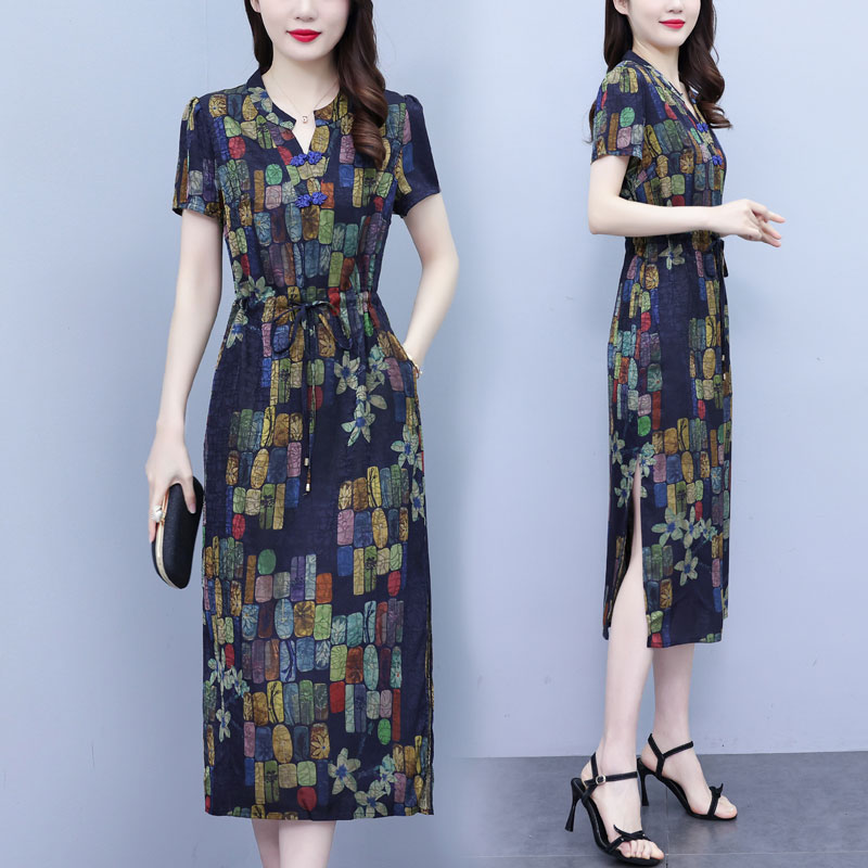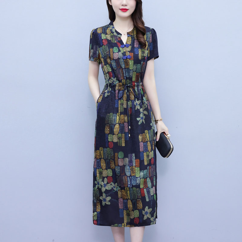 RY212# 真丝桑蚕丝连衣裙女夏2026新款杭州大品牌高端洋气质妈妈旗袍裙子