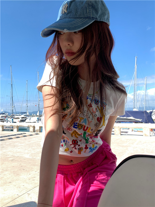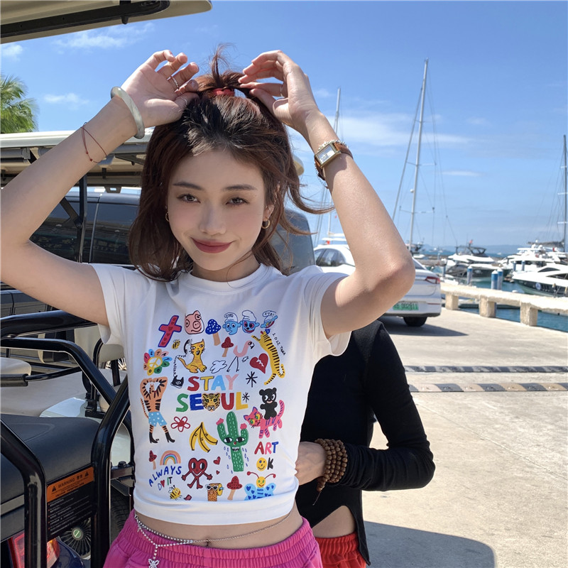 RY217# 2026春夏新款纯棉 修身短款T恤女短袖