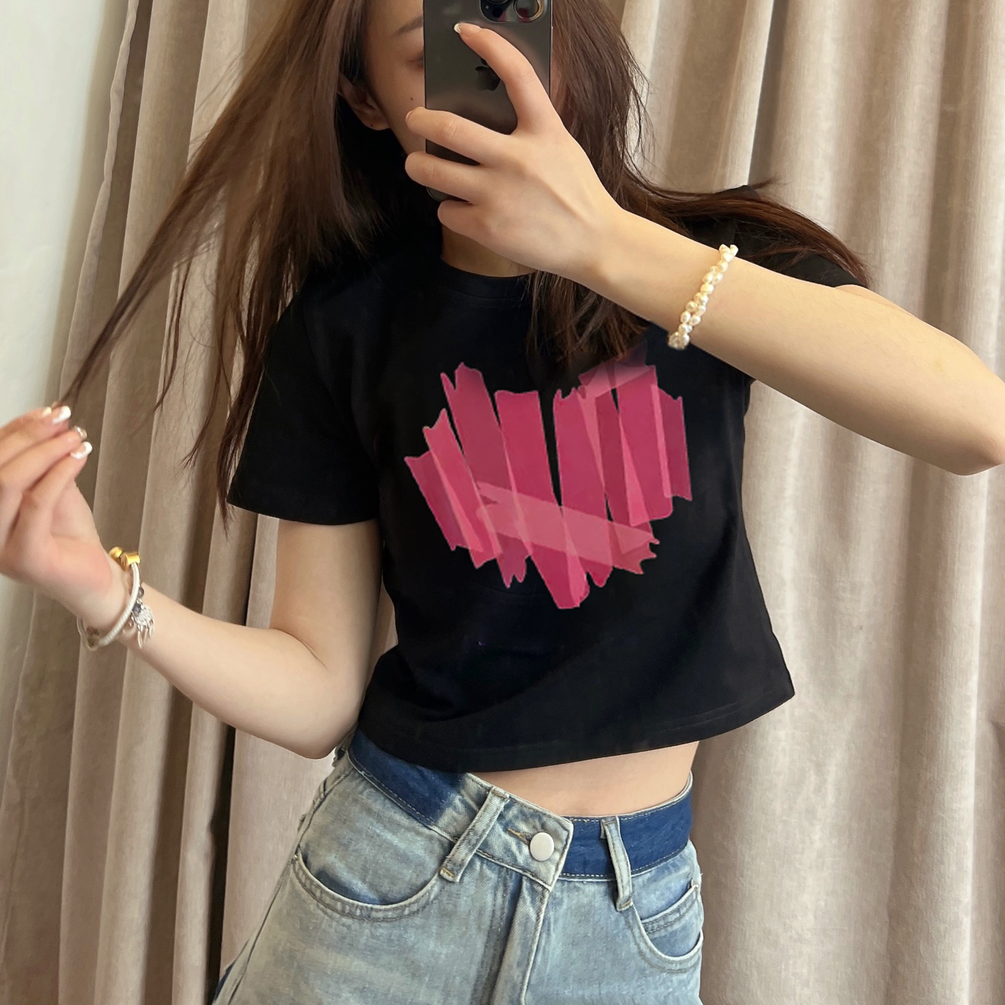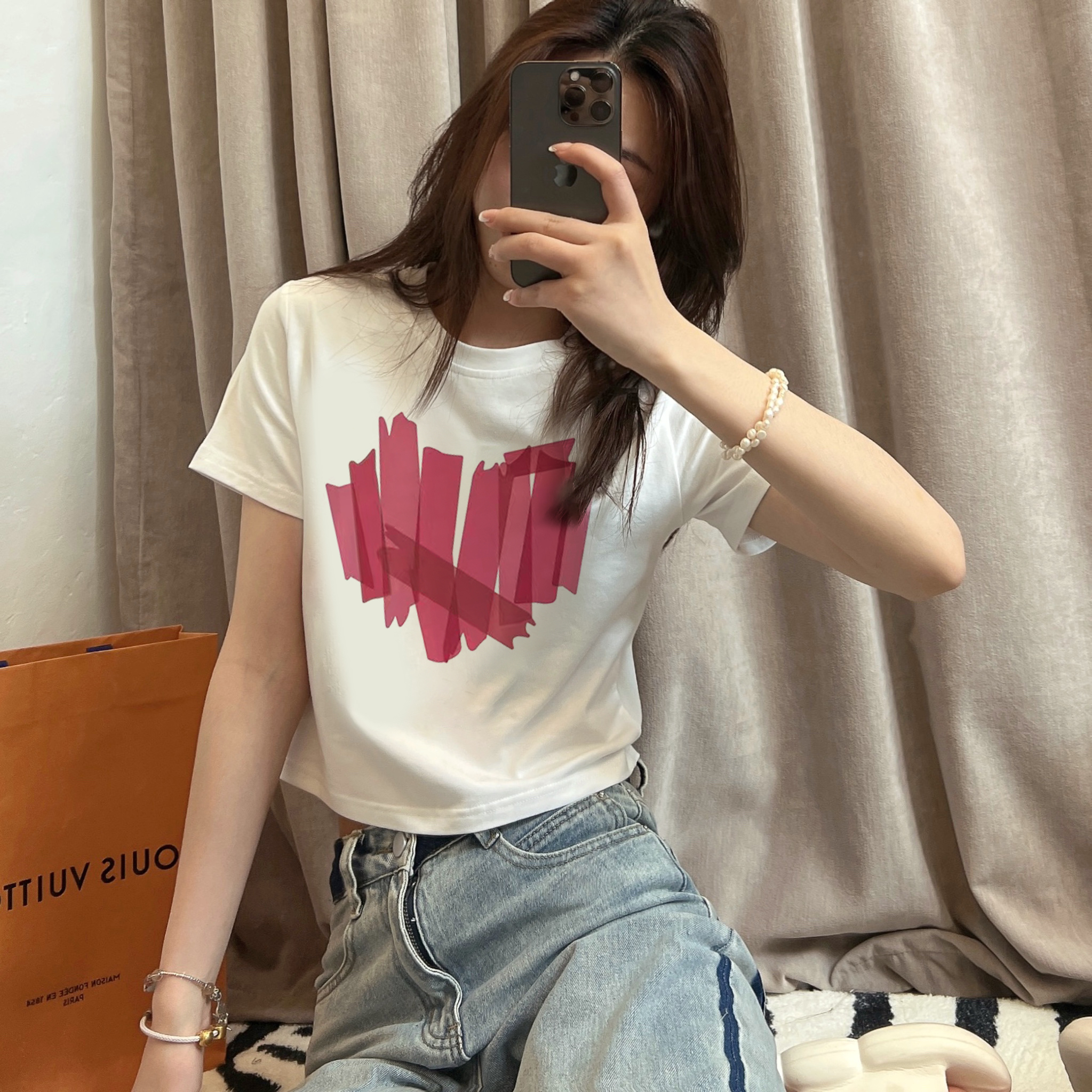 RY218# 2026春夏新款纯棉 修身短款T恤女短袖