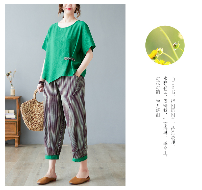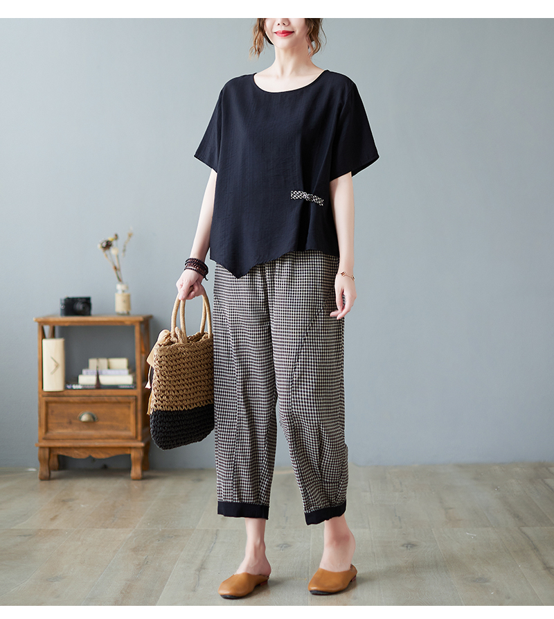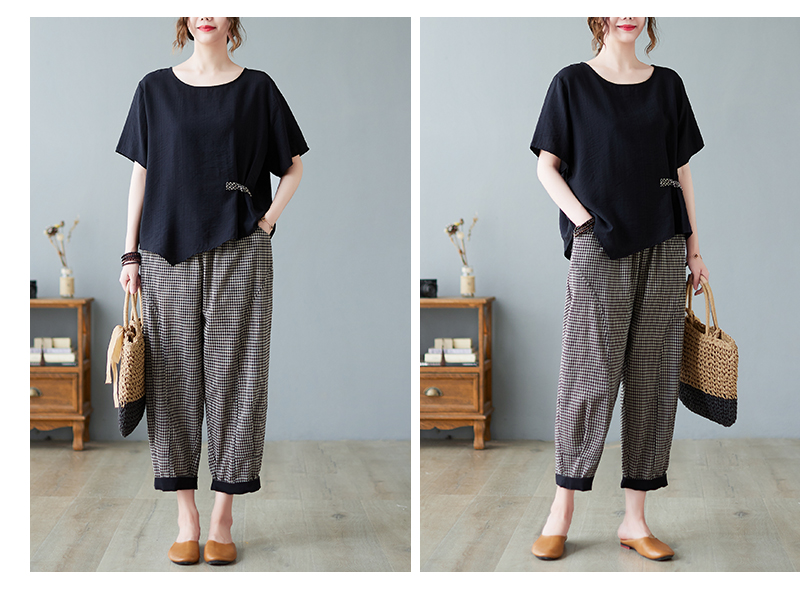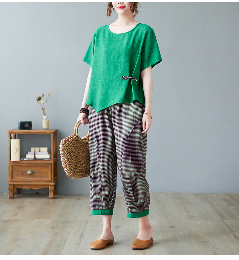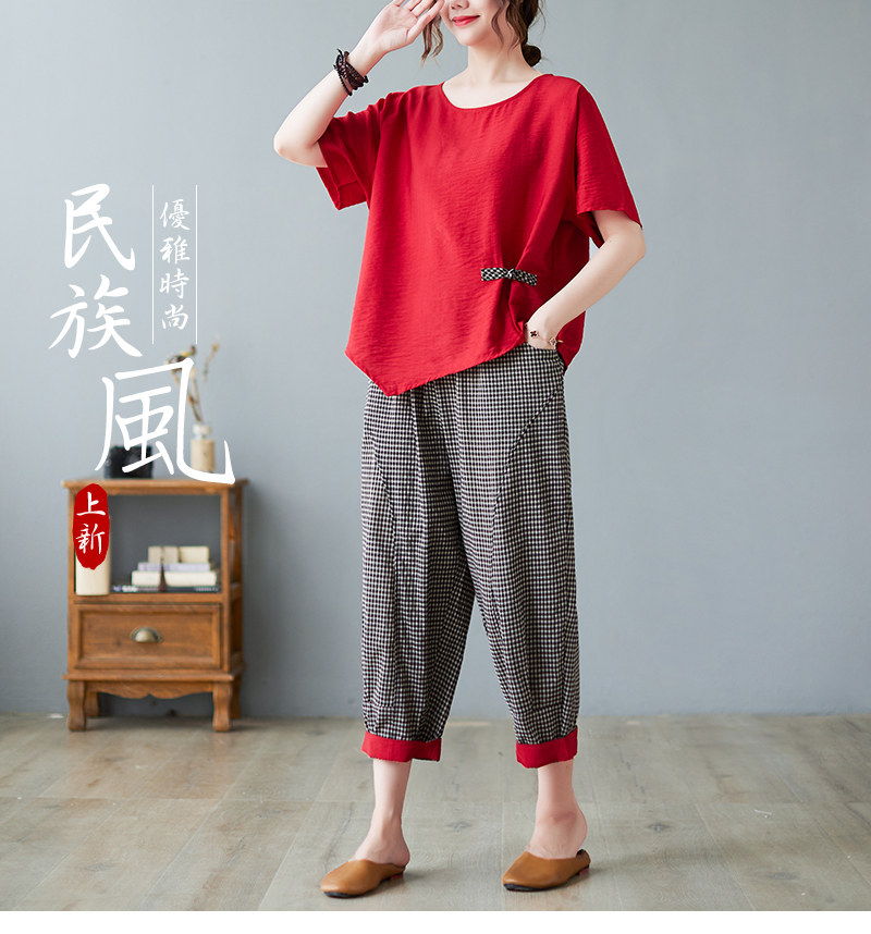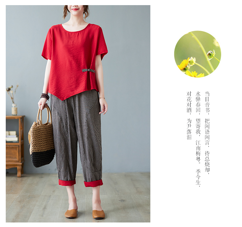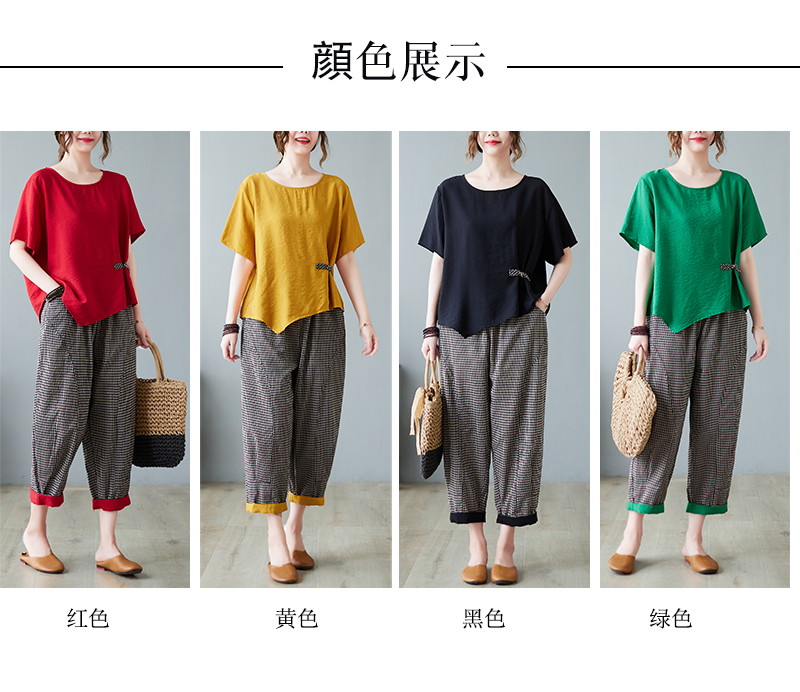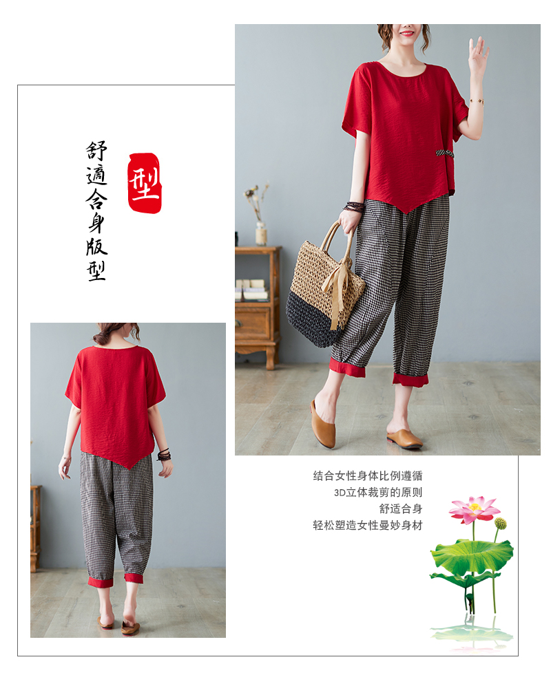 RY231# 实拍时尚阔腿裤棉麻套装夏季女2026新中式盘扣不规则上衣两件套女