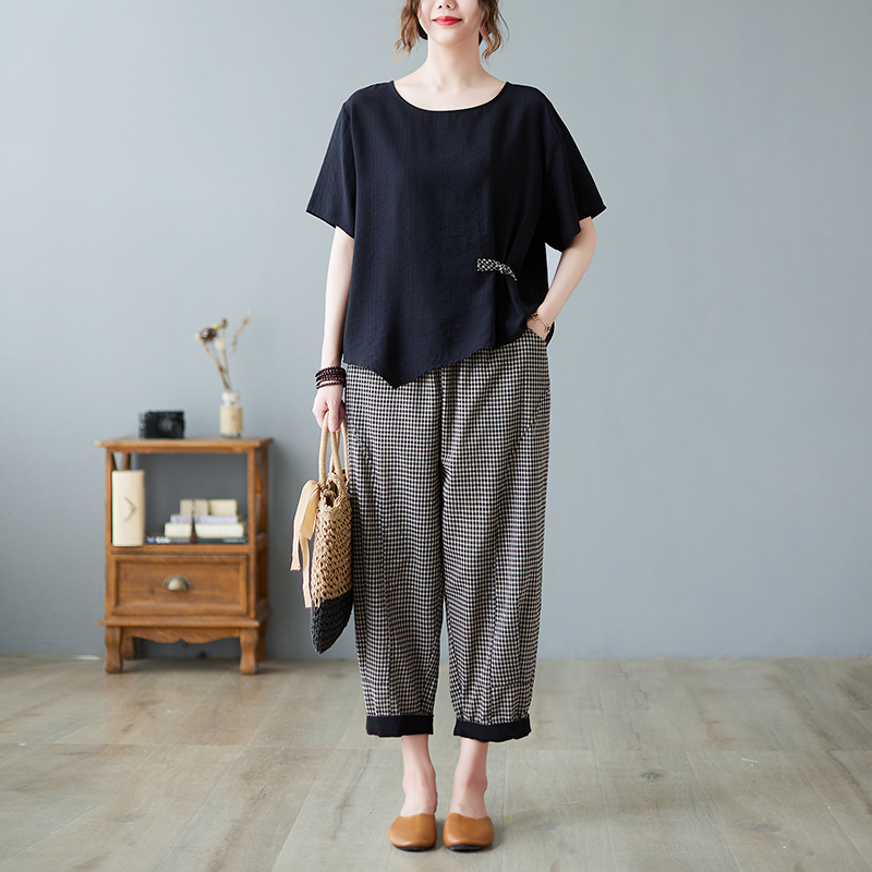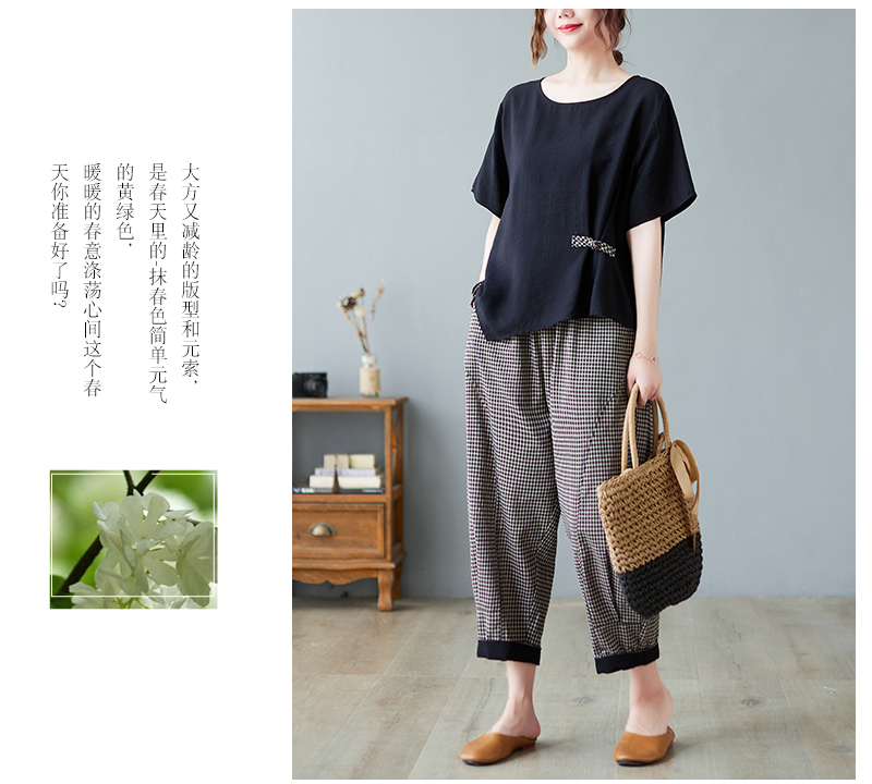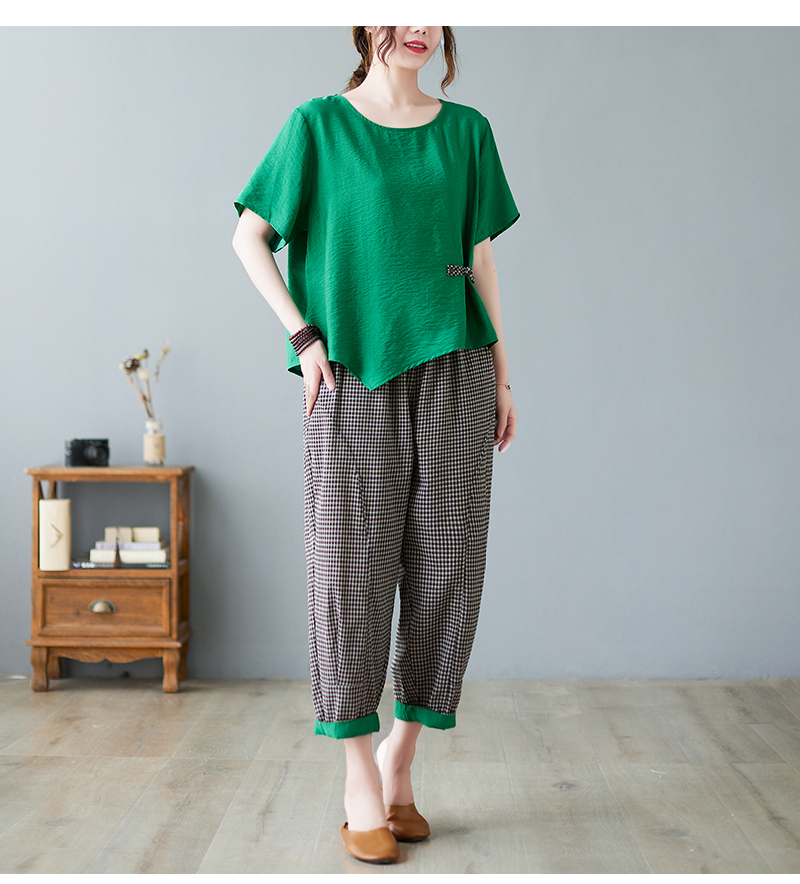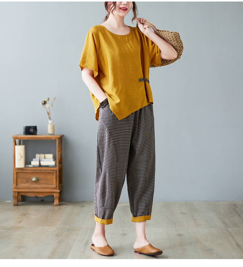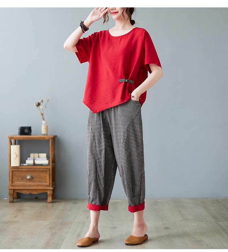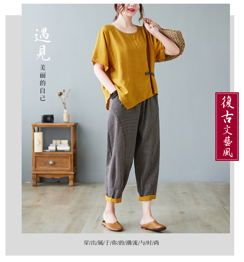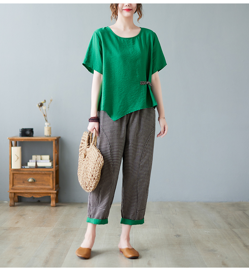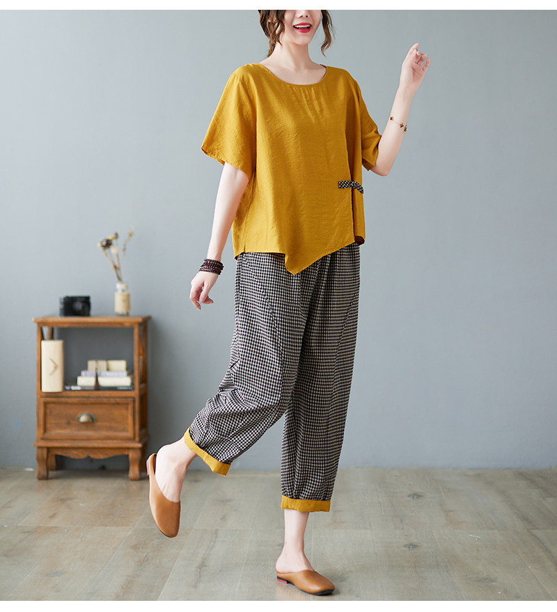 RY231# 实拍时尚阔腿裤棉麻套装夏季女2026新中式盘扣不规则上衣两件套女