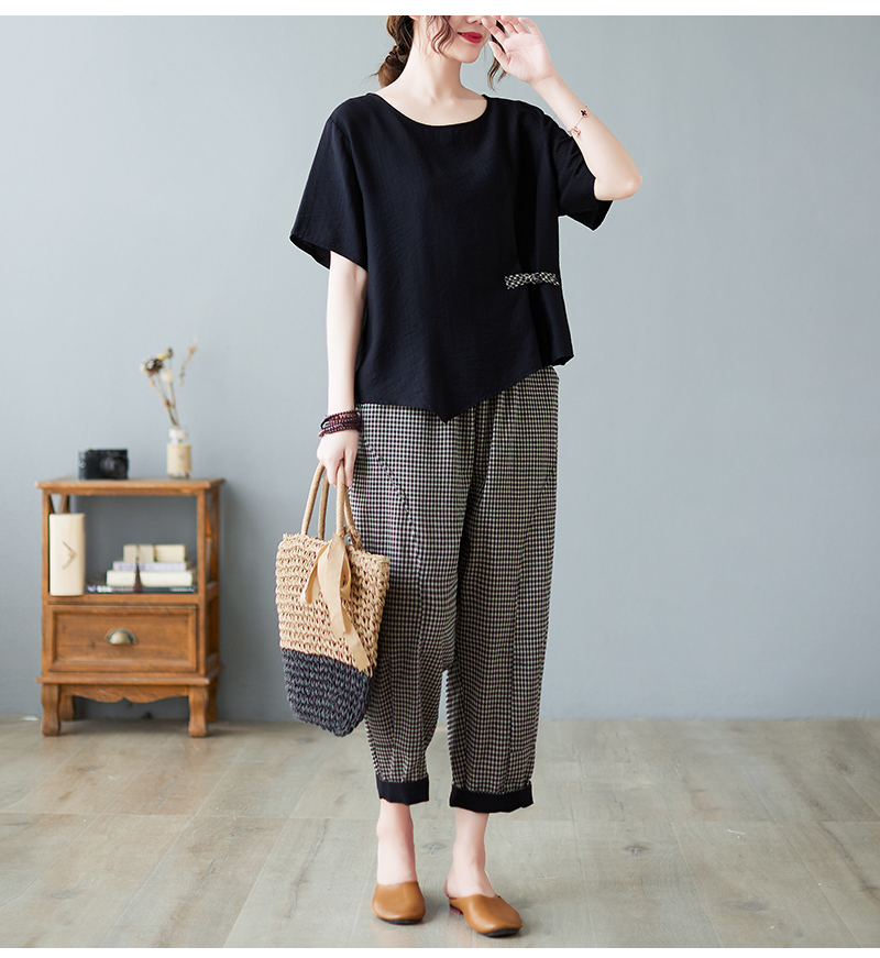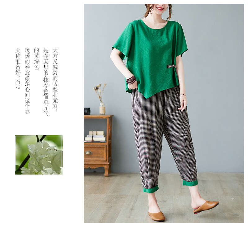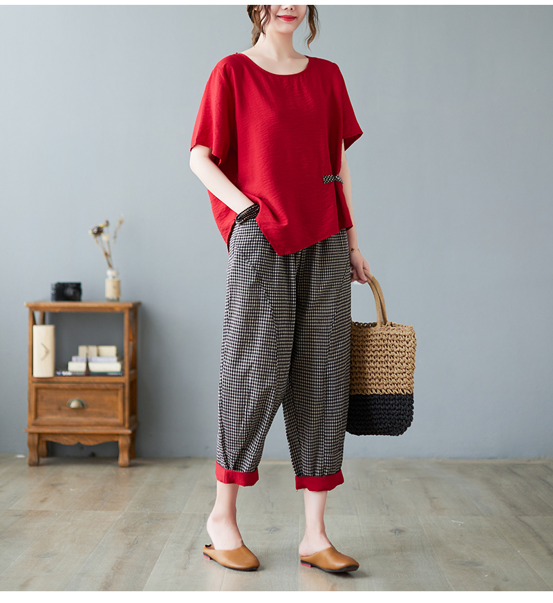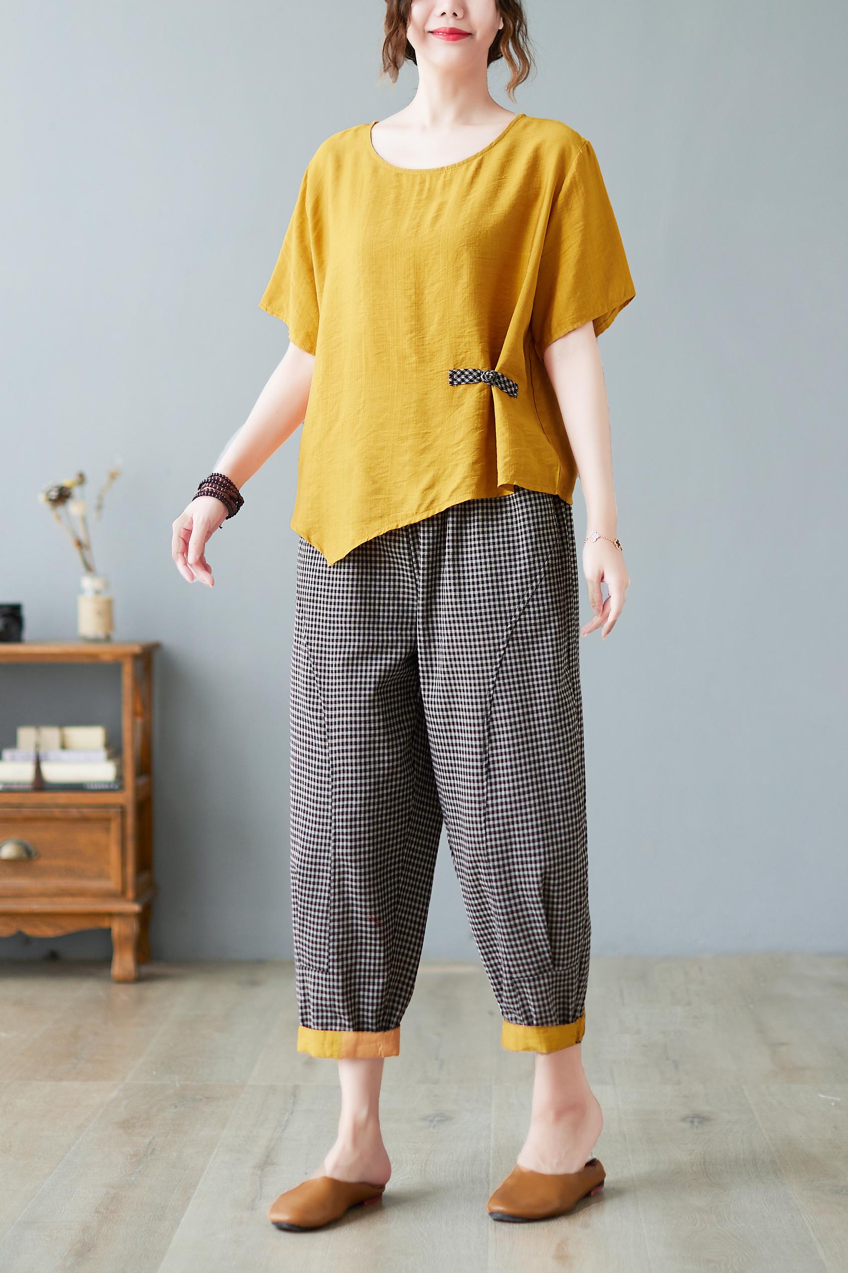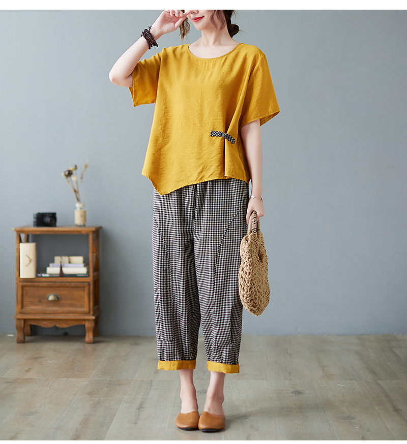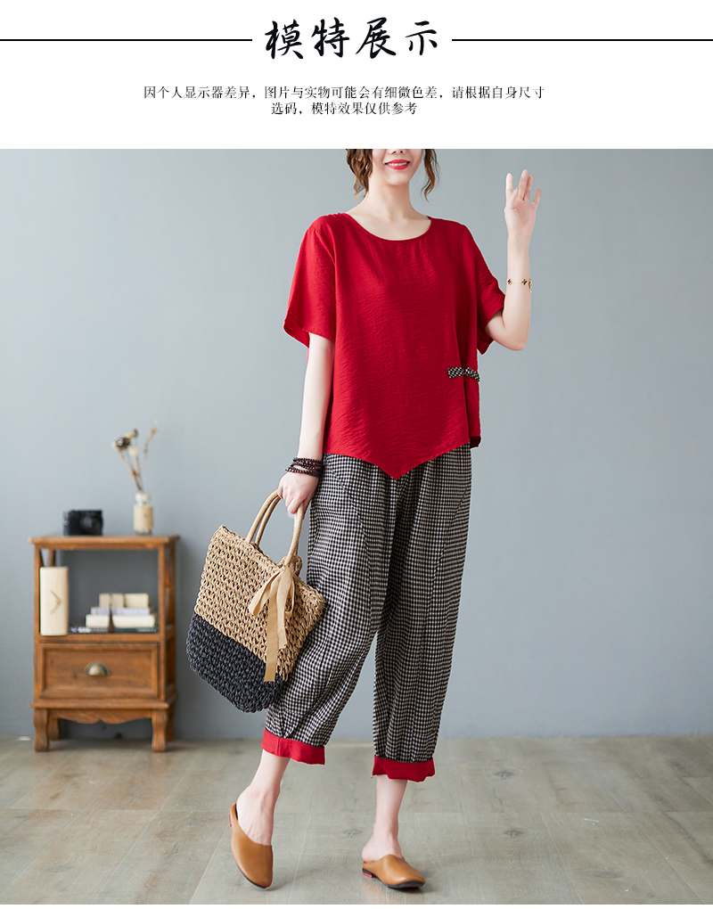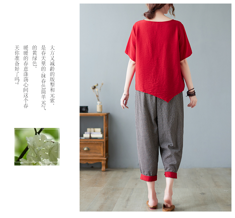 RY231# 实拍时尚阔腿裤棉麻套装夏季女2026新中式盘扣不规则上衣两件套女