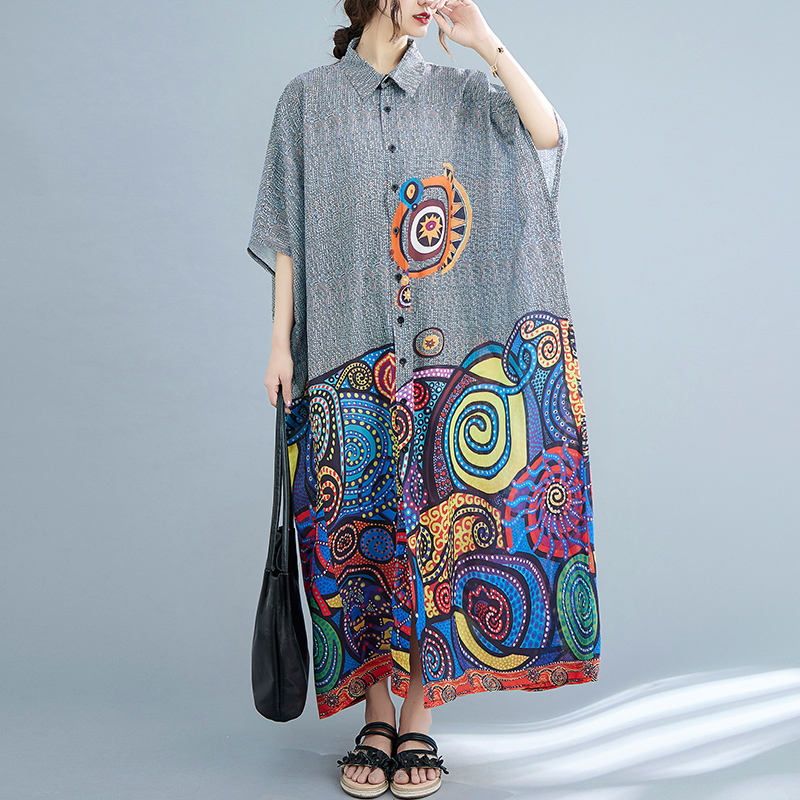 RY235# 实拍春夏新款200斤胖MM大码女装定位花印花衬衣女装