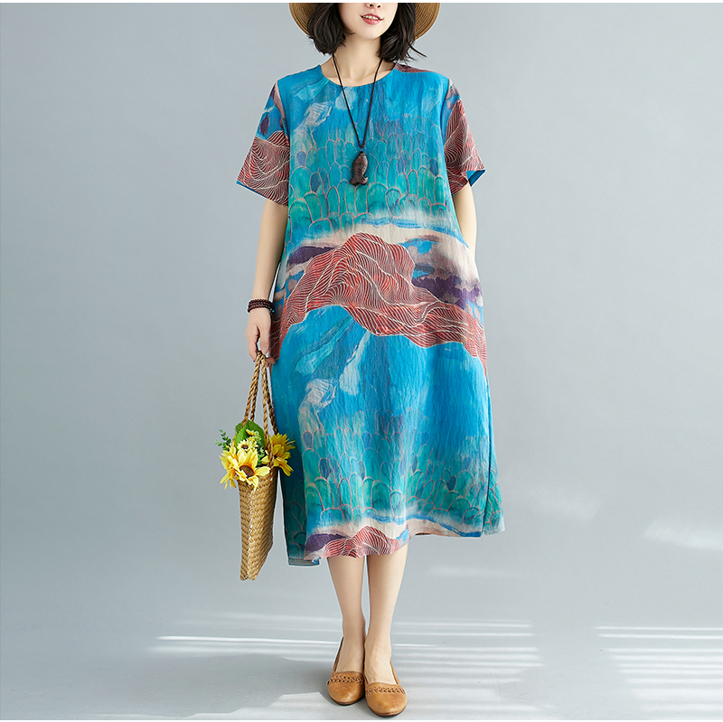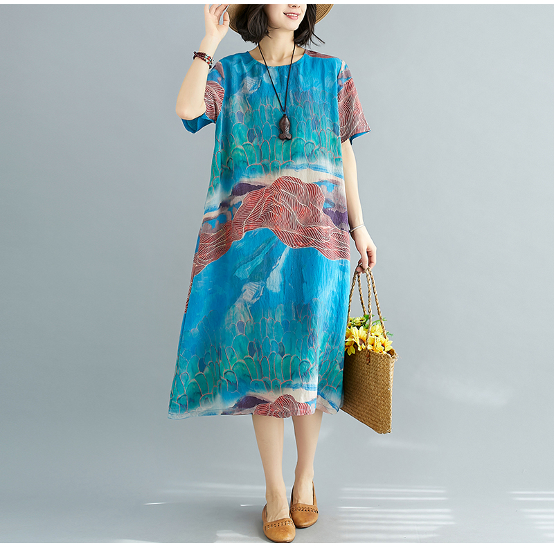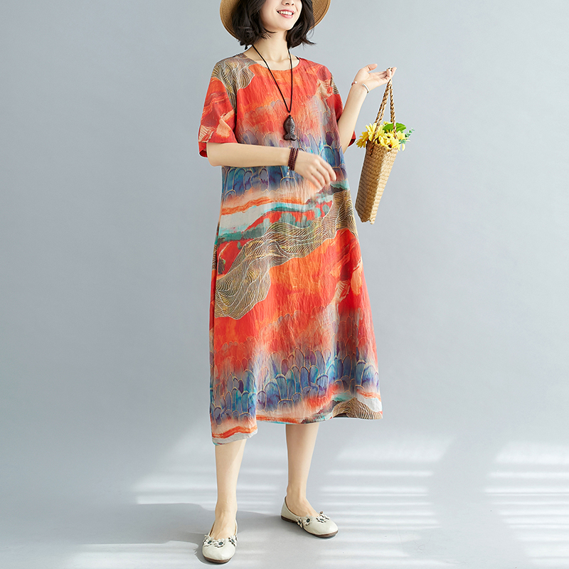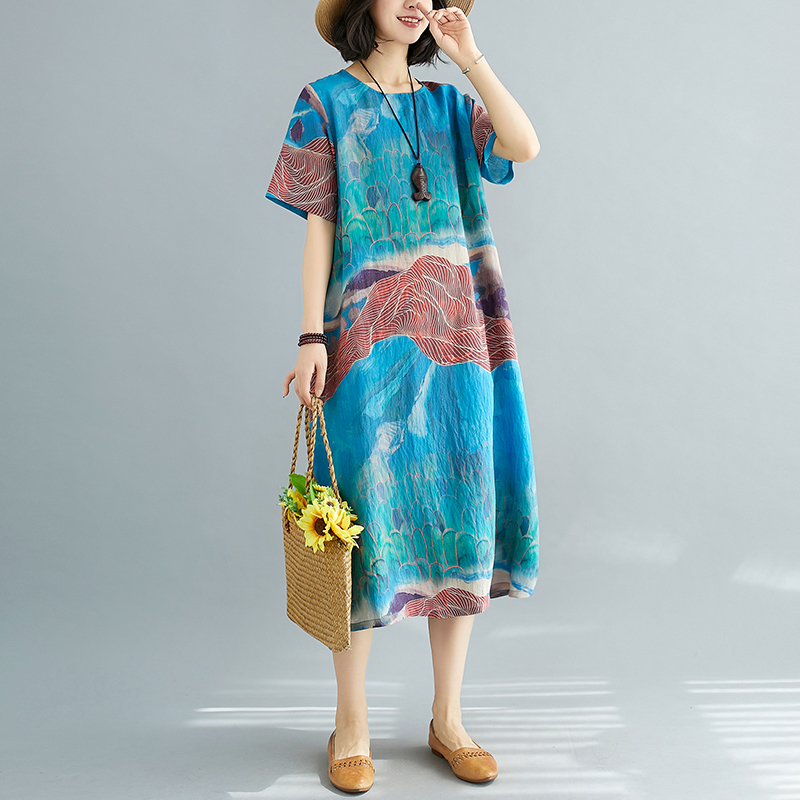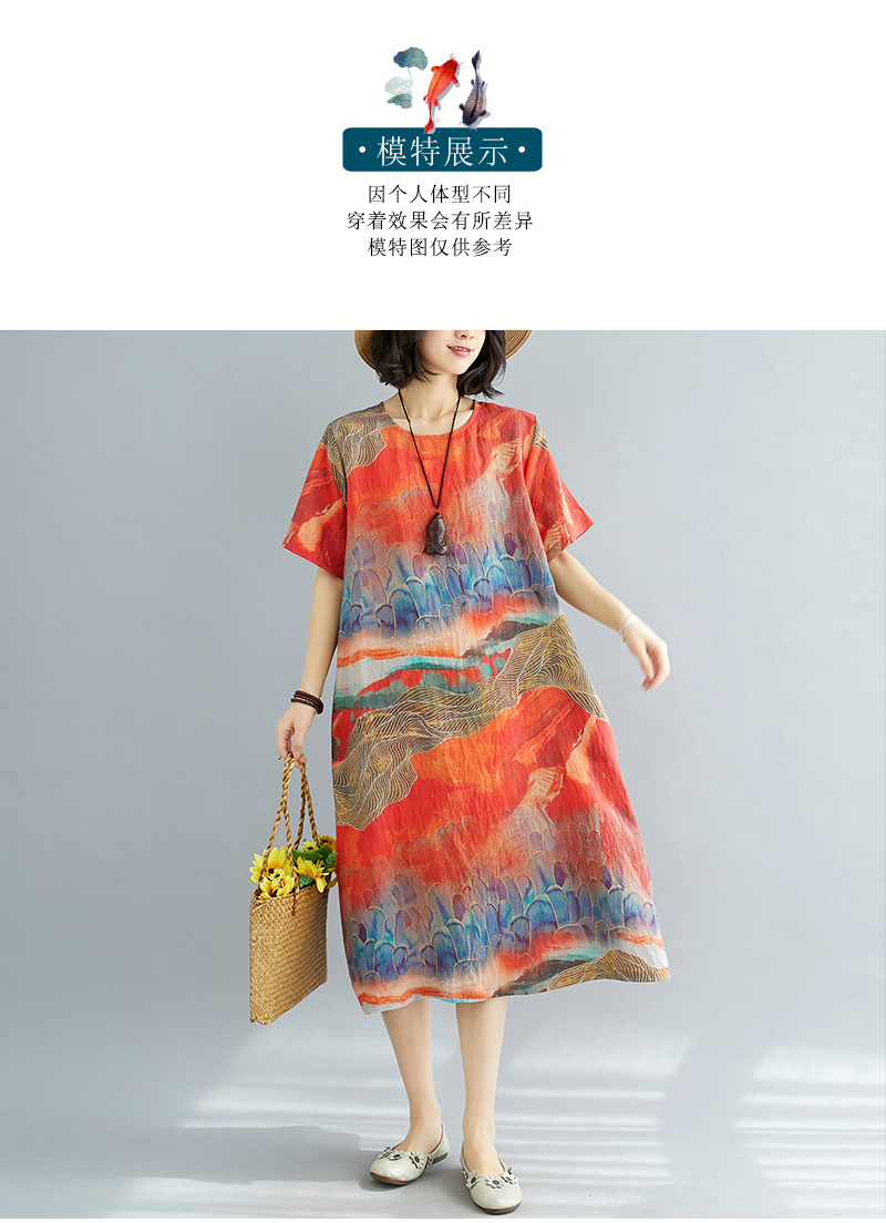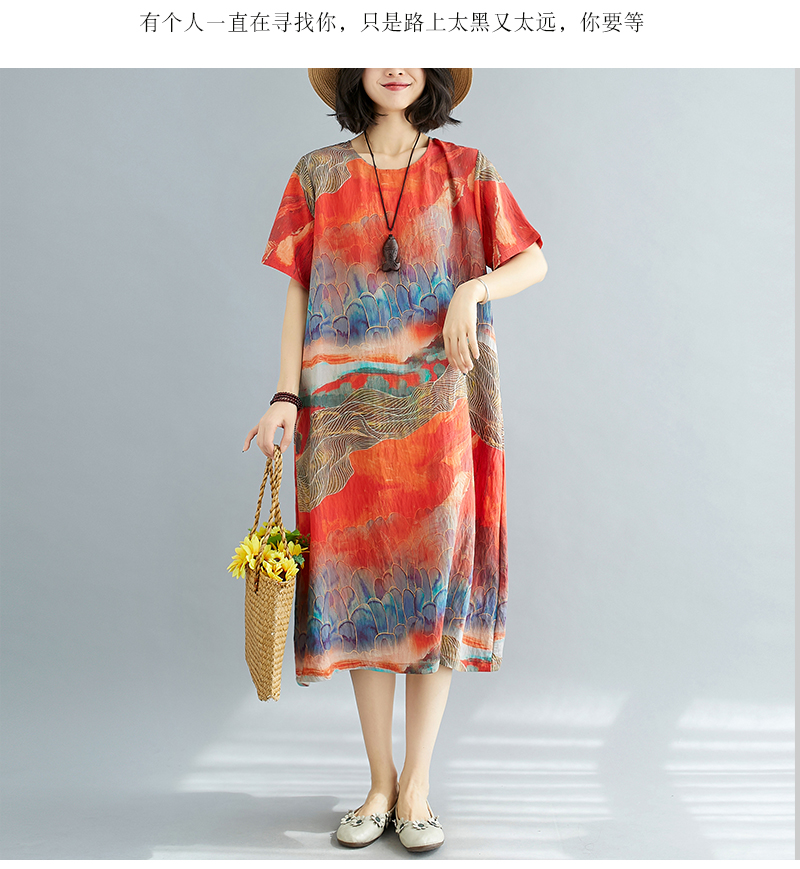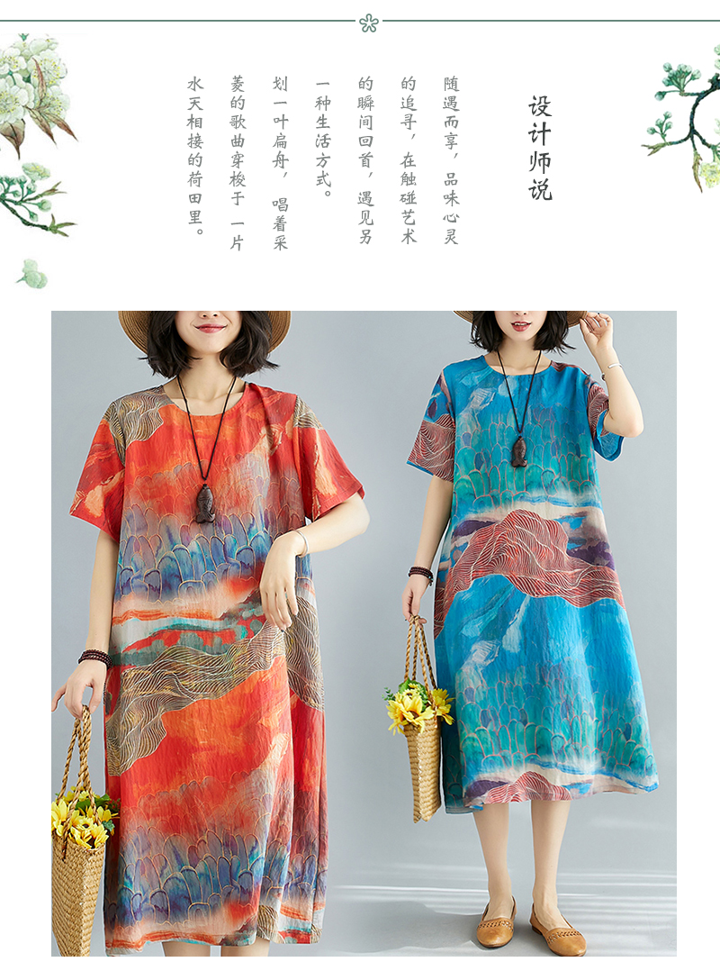 RY238# 实拍2026夏季新款文艺宽松显瘦中长款印花连衣裙女装
